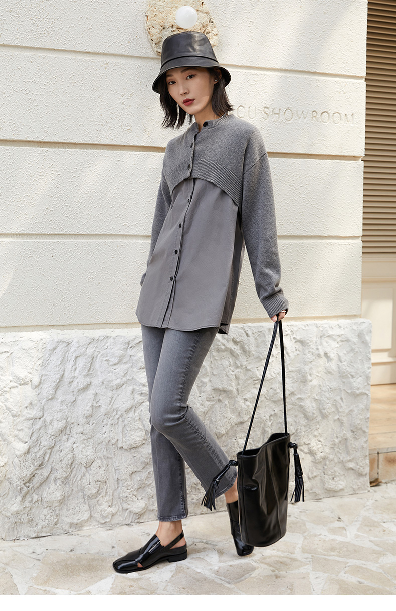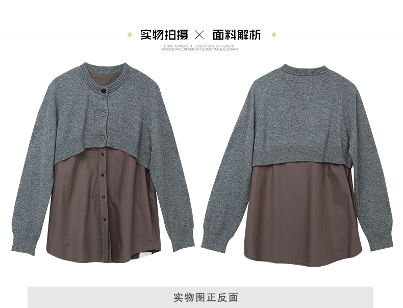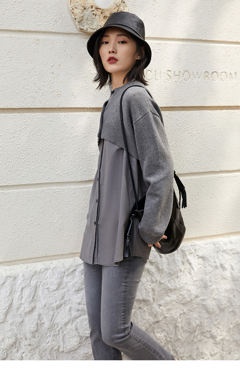 时髦精挚爱!灰色针织拼接衬衫,叠穿新风尚