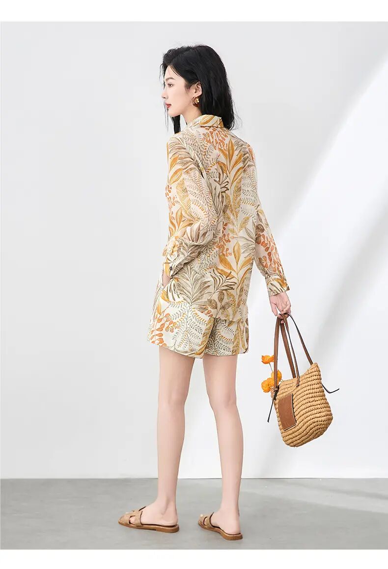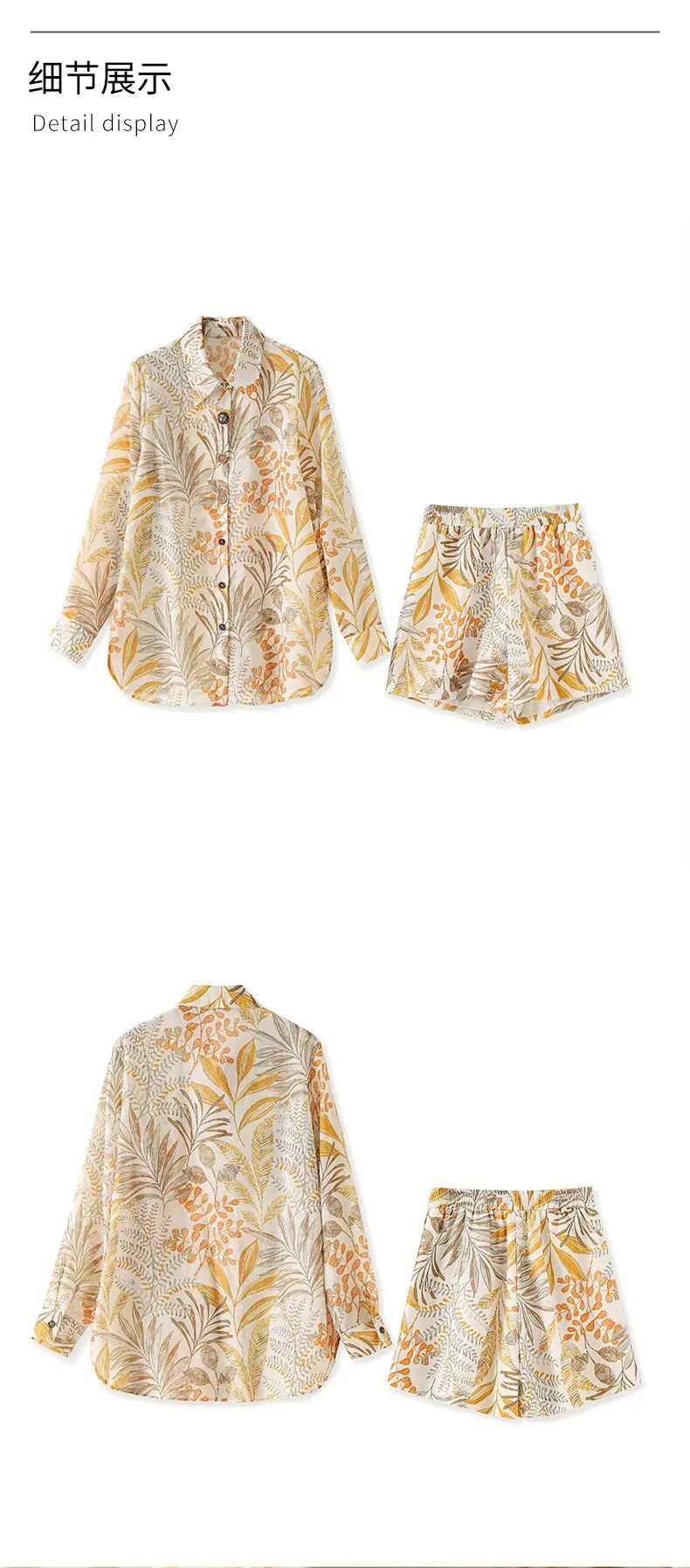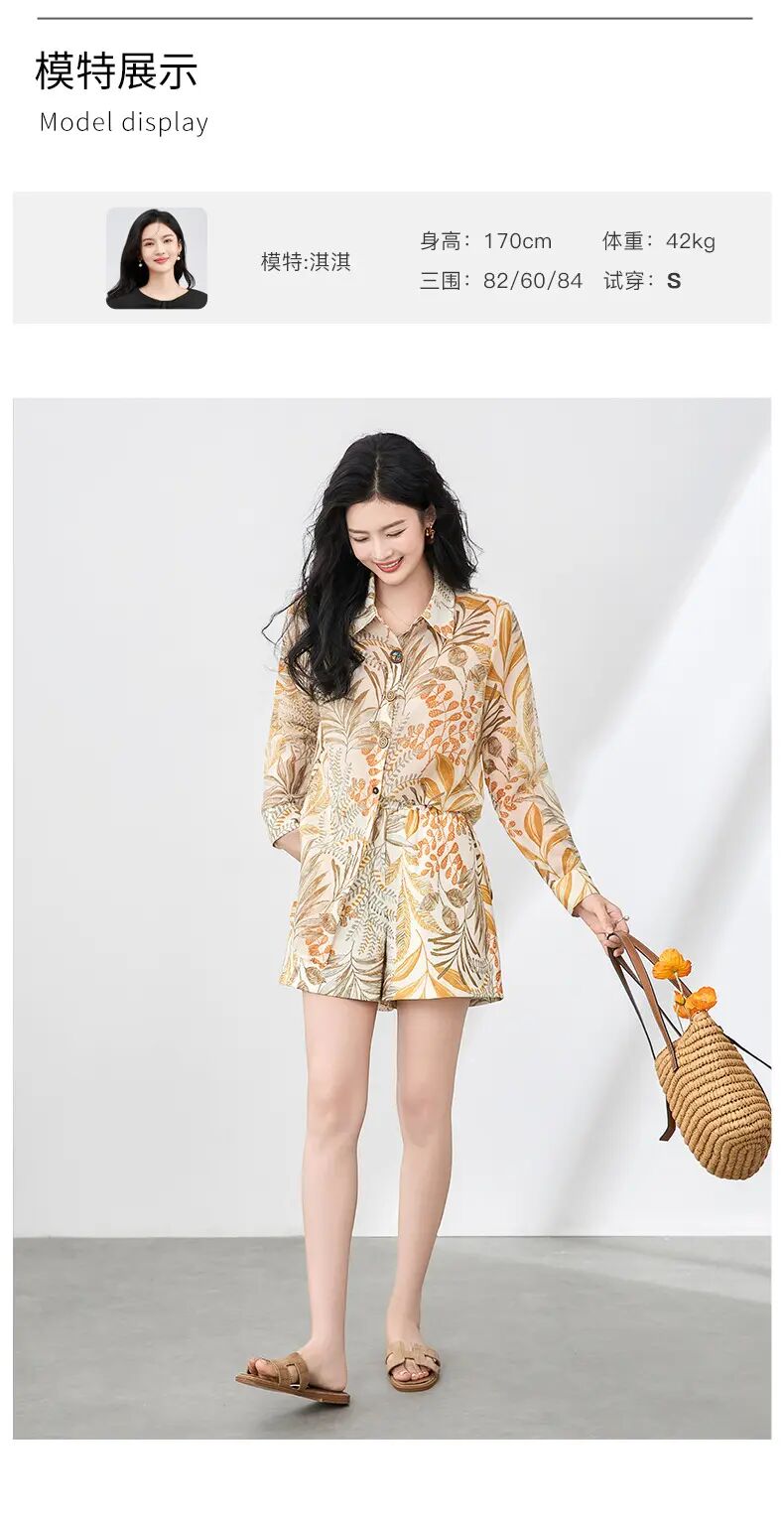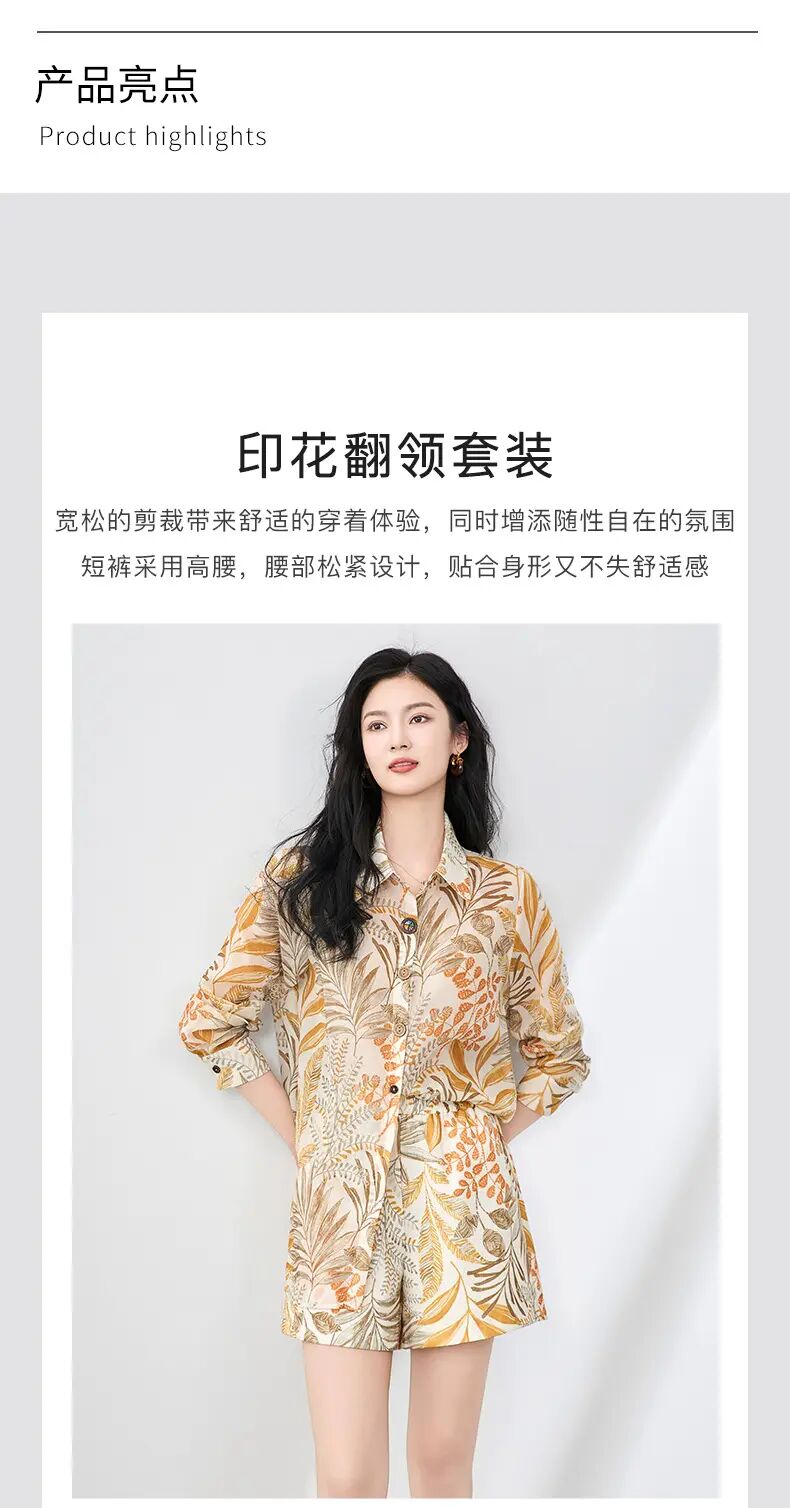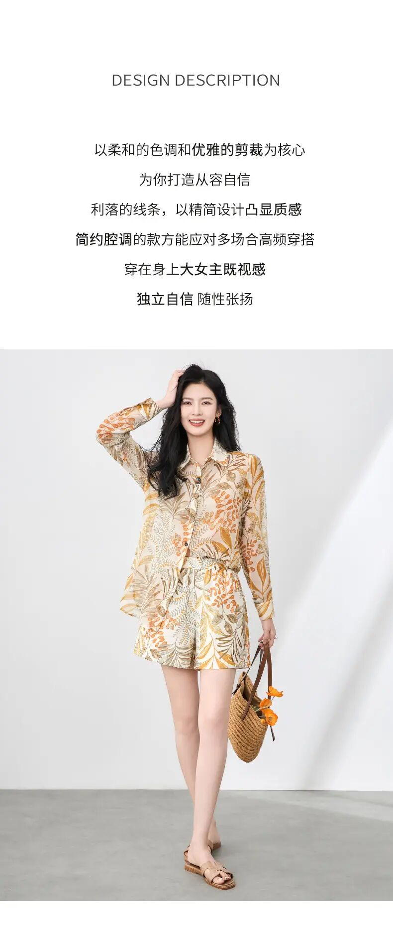 「高货wl」全新升级【铂金会员321/天猫429/差价108】(99721)洛诗琳夏季新款慵懒度假风翻领印花衬衫休闲高腰短裤两件套99721