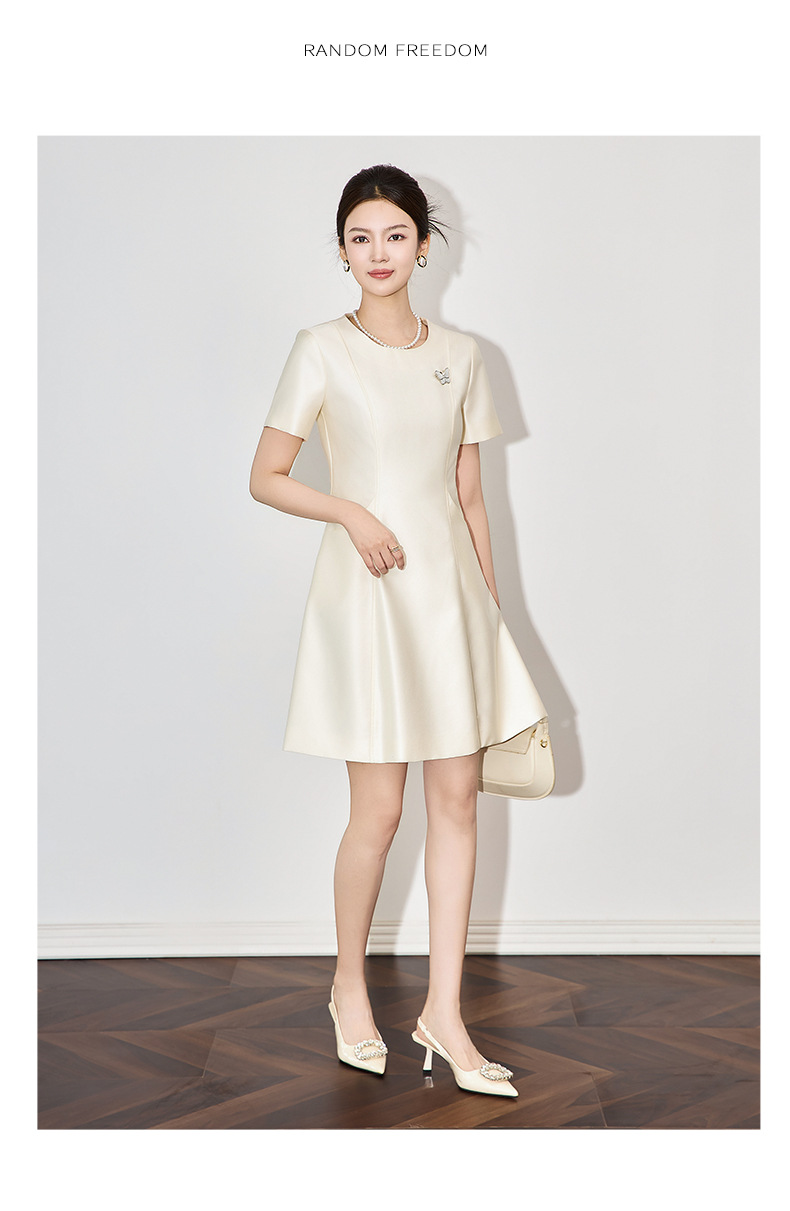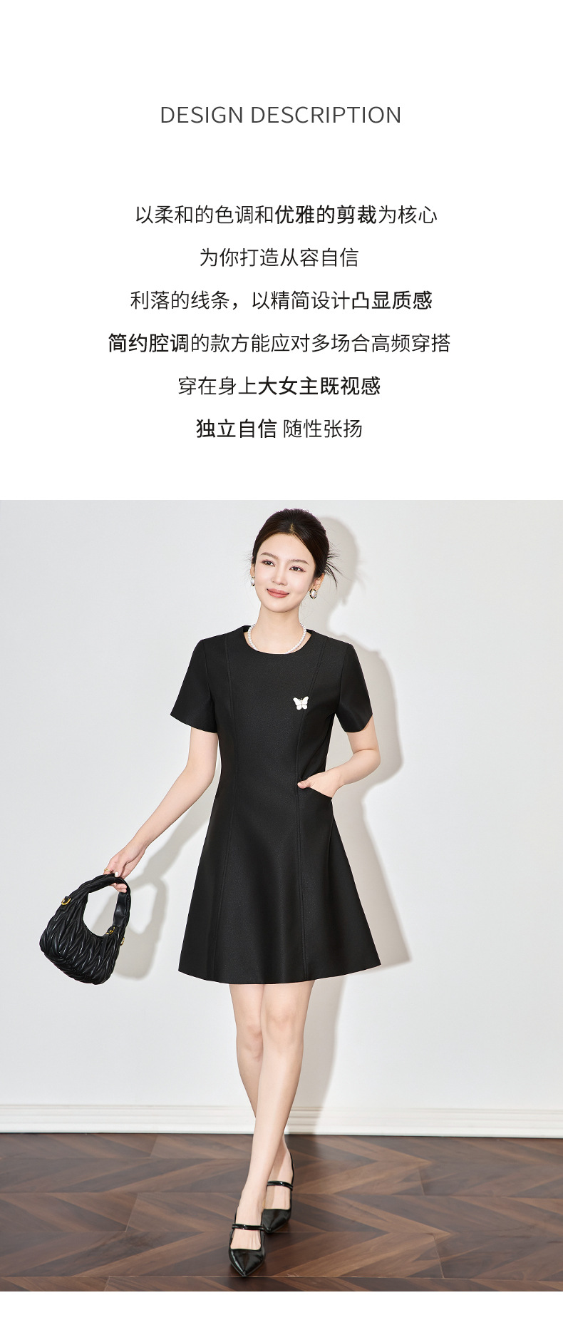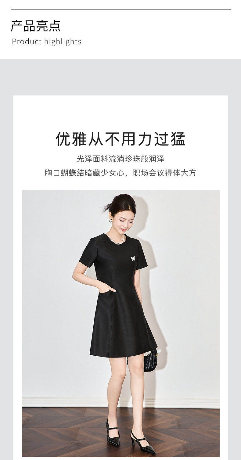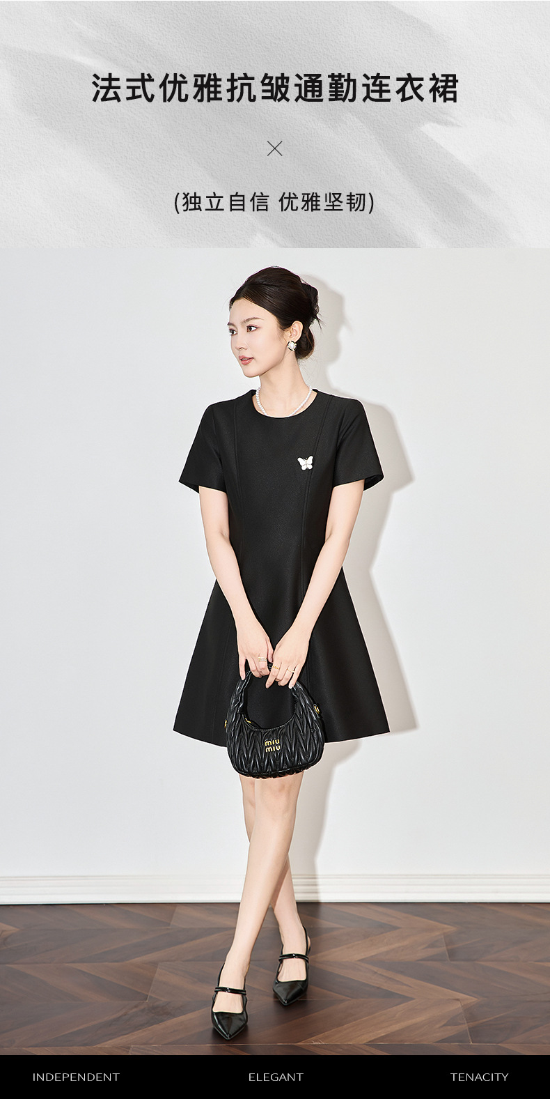 「高货wl」全新升级【铂金会员358/天猫479/差价121】(03916)洛诗琳法式气质垂感连衣裙2025夏季收腰简约通勤A字裙女