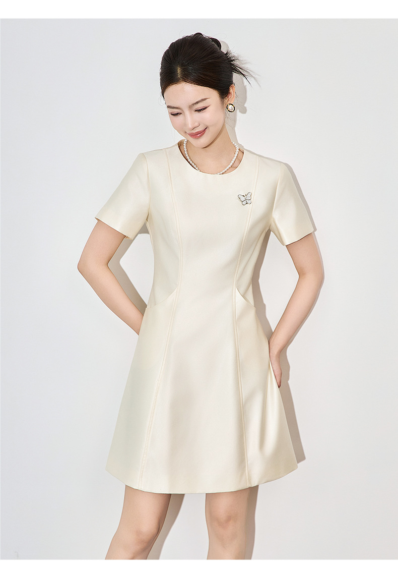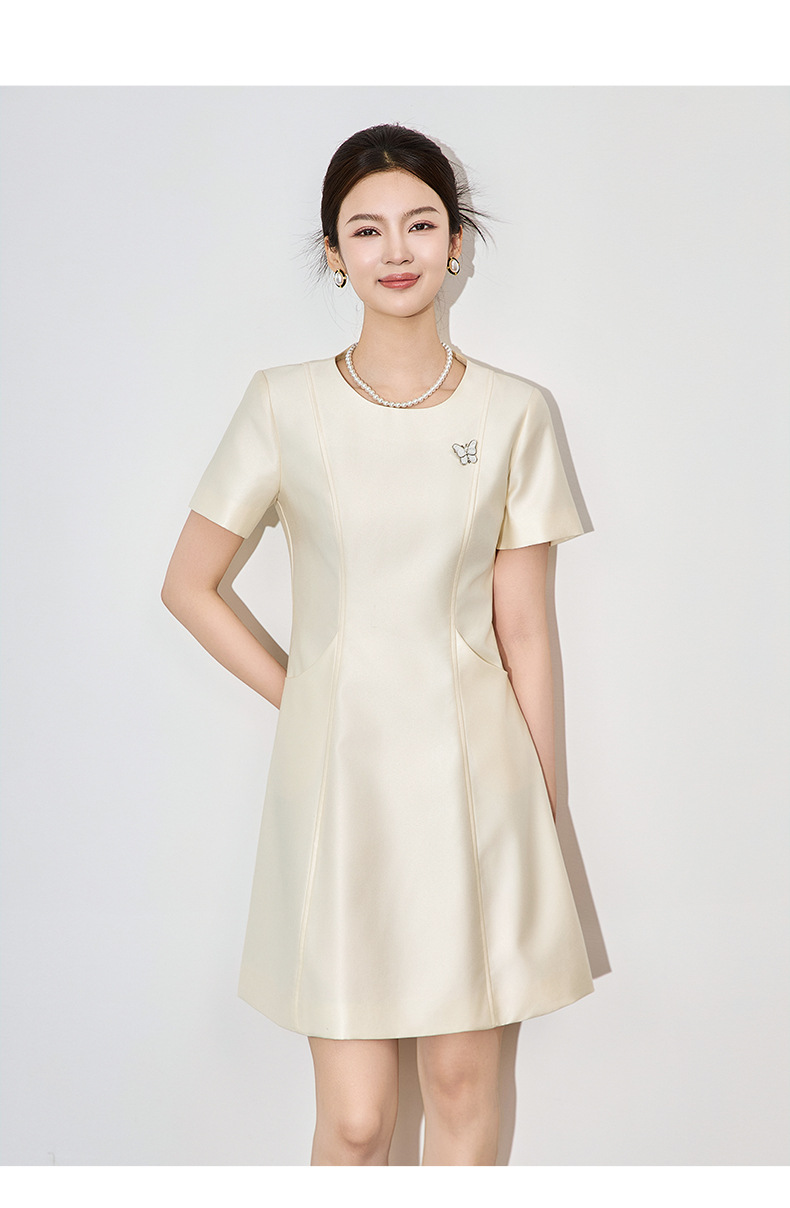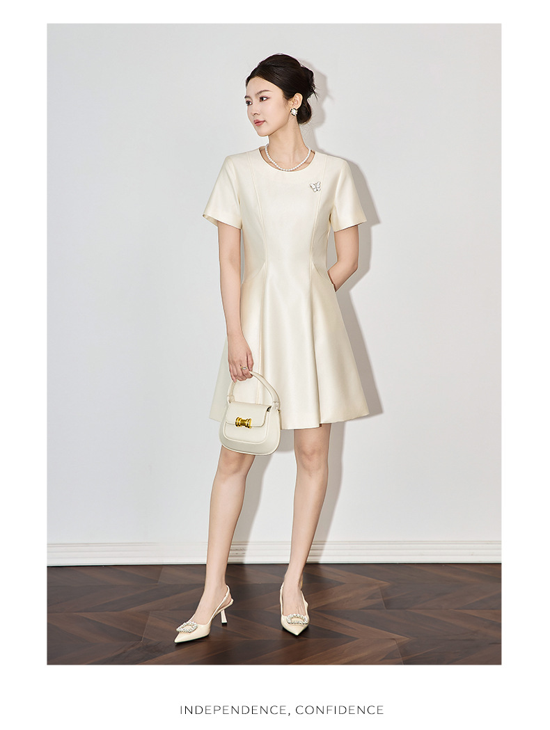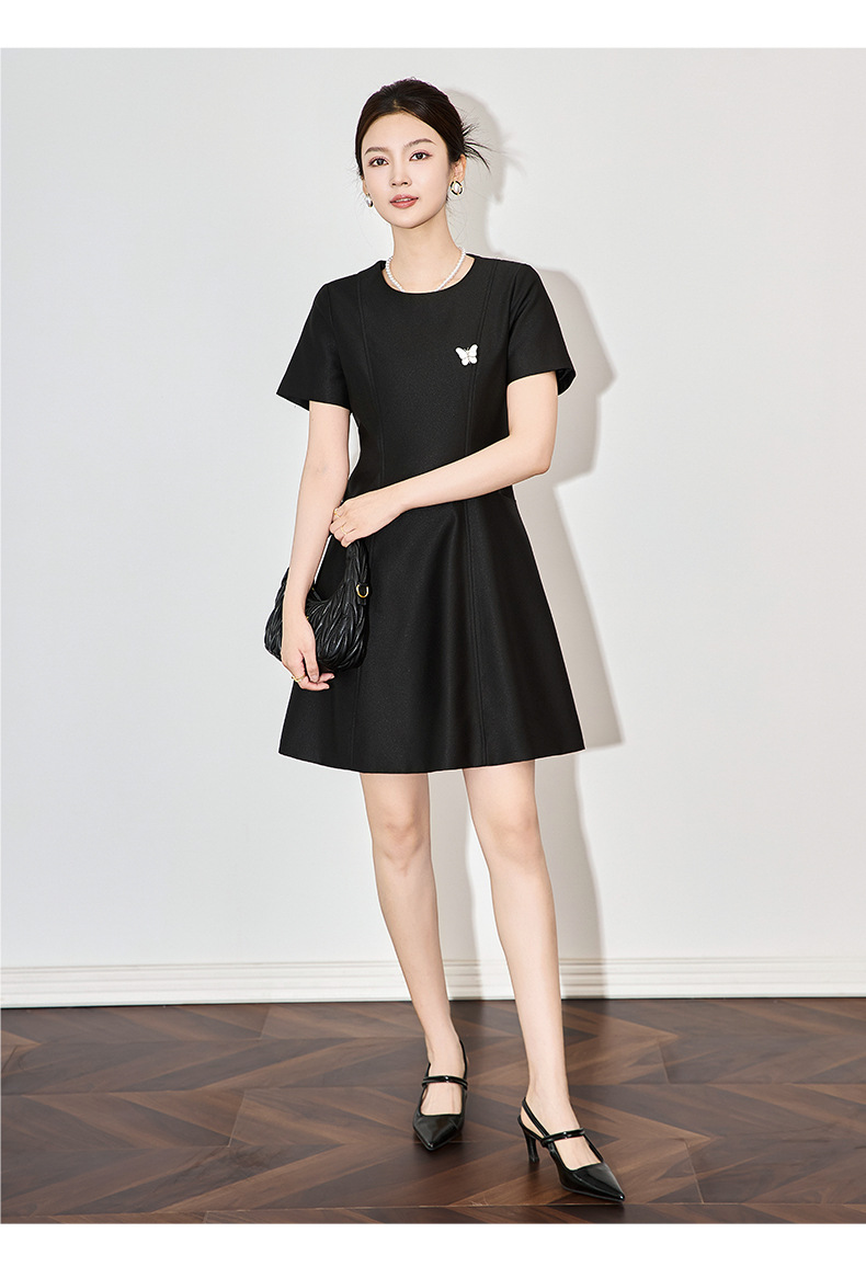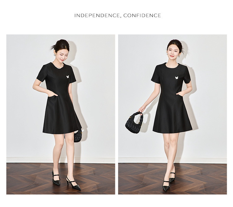 「高货wl」全新升级【铂金会员358/天猫479/差价121】(03916)洛诗琳法式气质垂感连衣裙2025夏季收腰简约通勤A字裙女