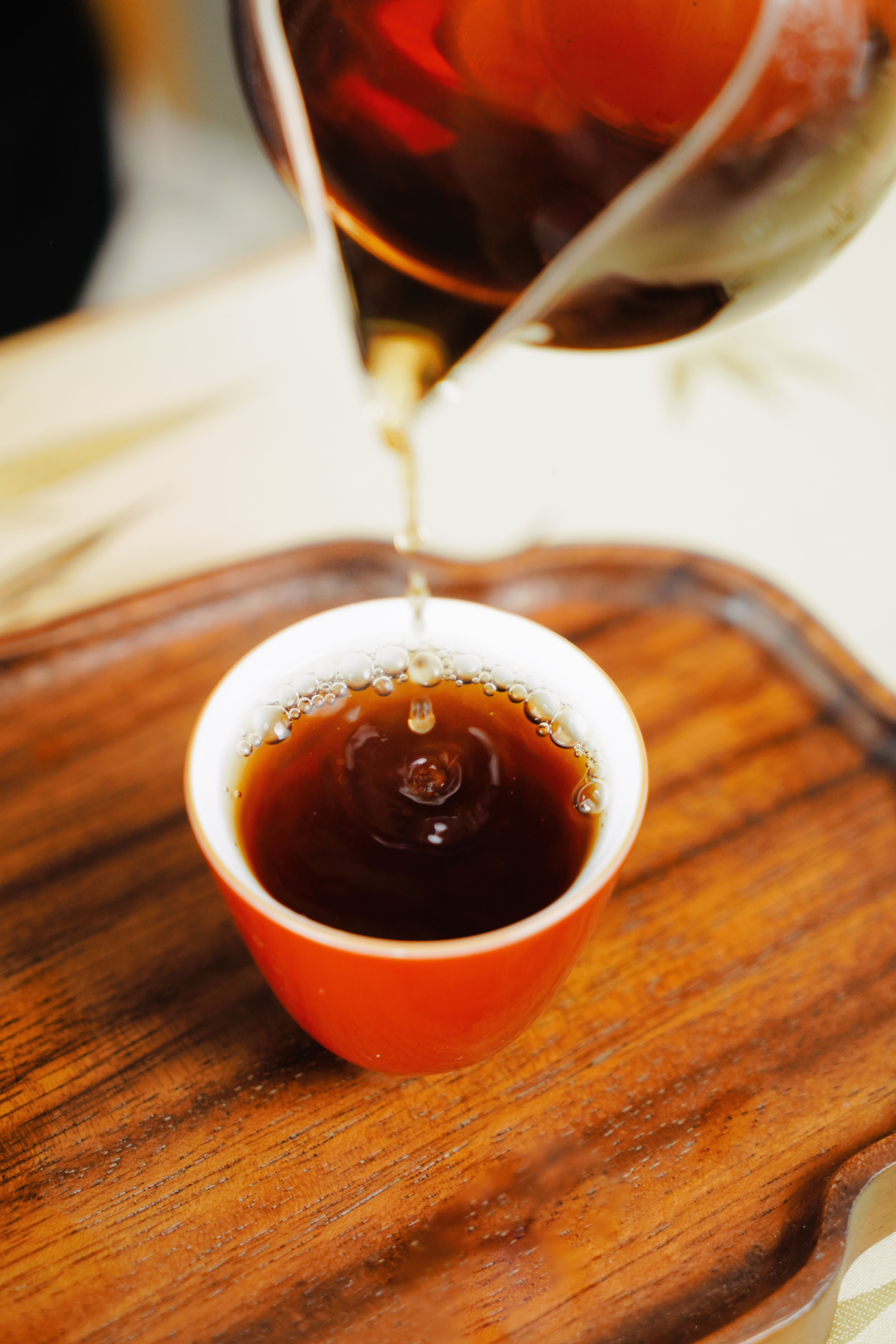 第1泡:8秒出汤,一股温暖的茶香随着茶汤从壶奔涌到公道杯中飘散开来,令人未饮先醉。浅尝,香在汤里,在公道杯中,在茶室里。