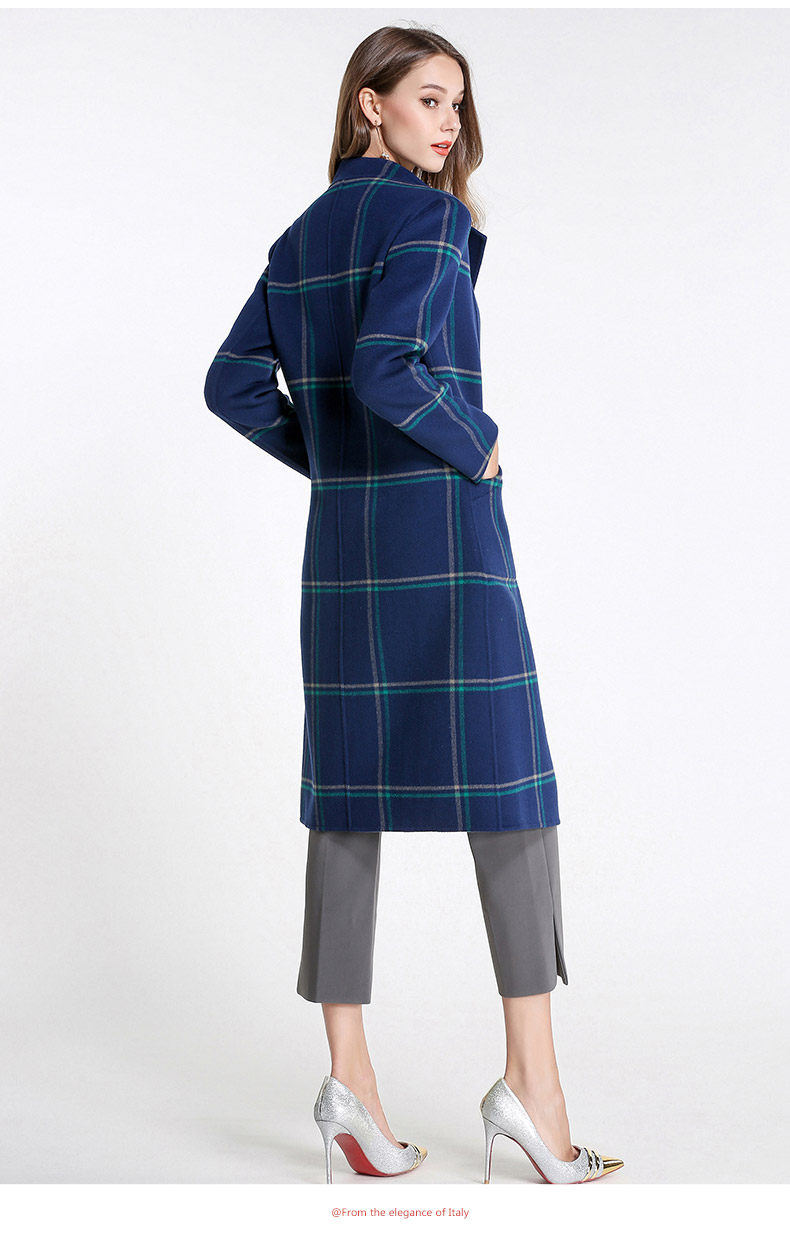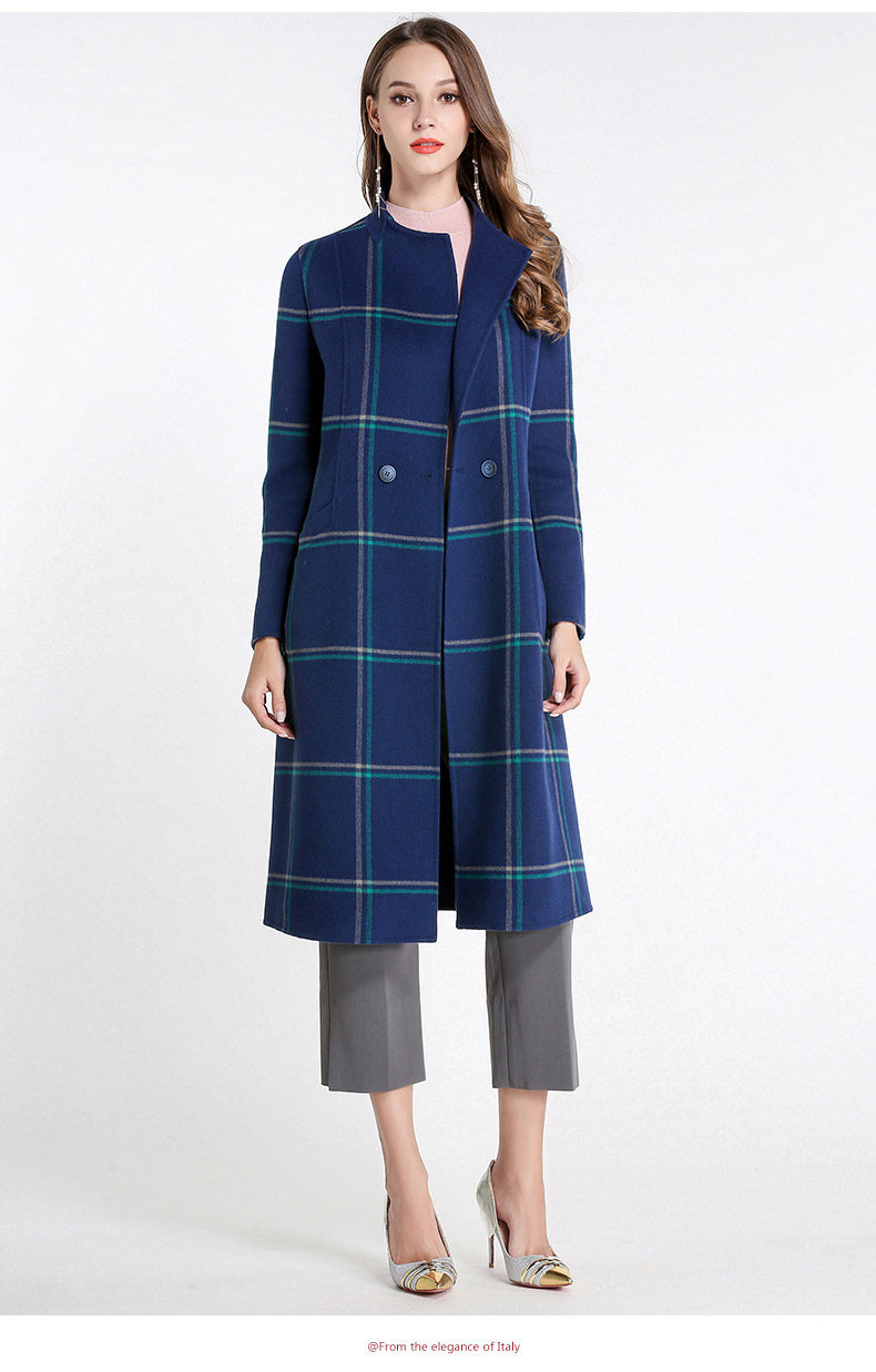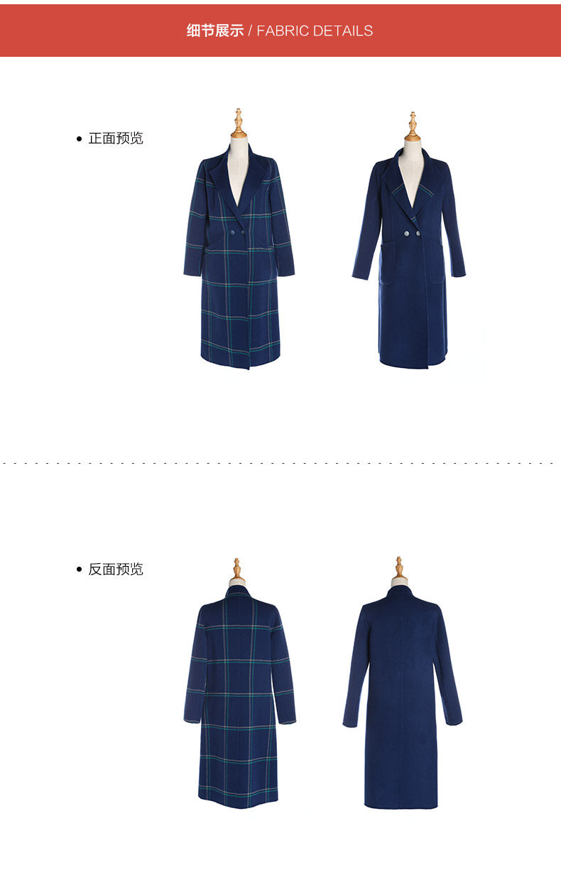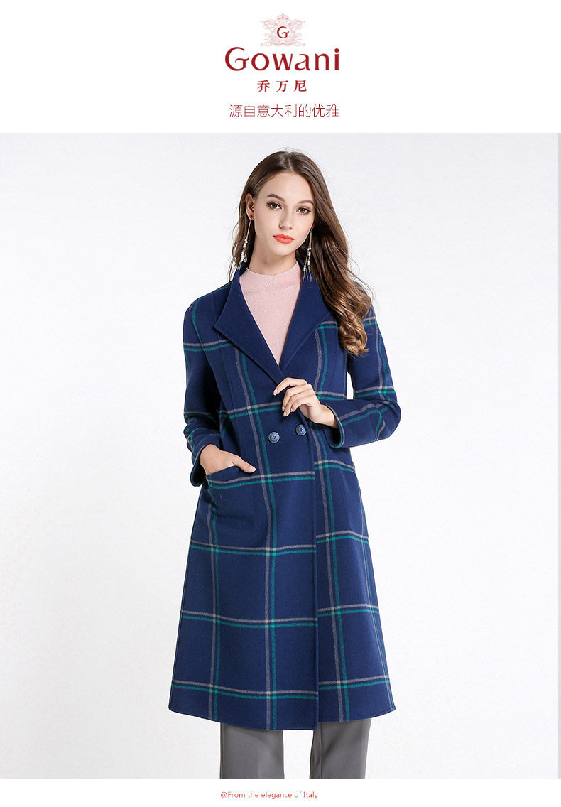 【羊绒】乔万尼冬季格子羊毛呢外套直筒两面穿双面羊绒大衣女长款EB4A025