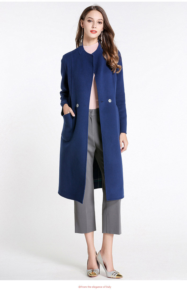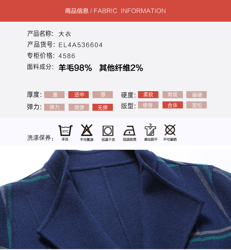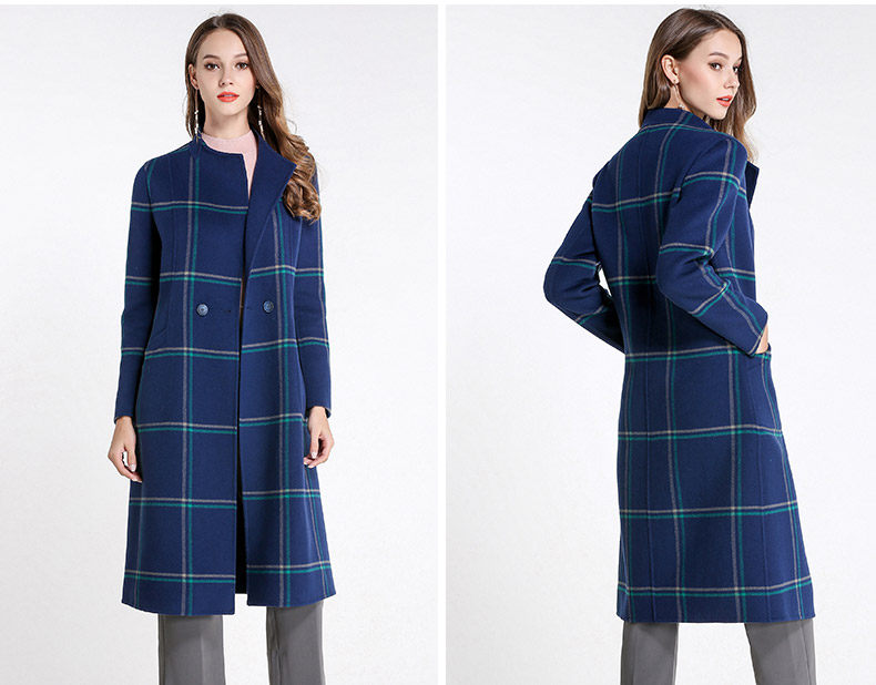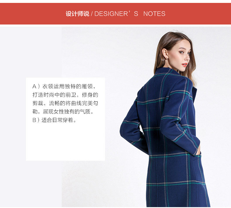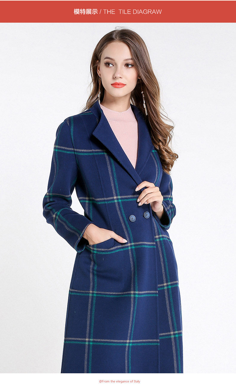 【羊绒】乔万尼冬季格子羊毛呢外套直筒两面穿双面羊绒大衣女长款EB4A025