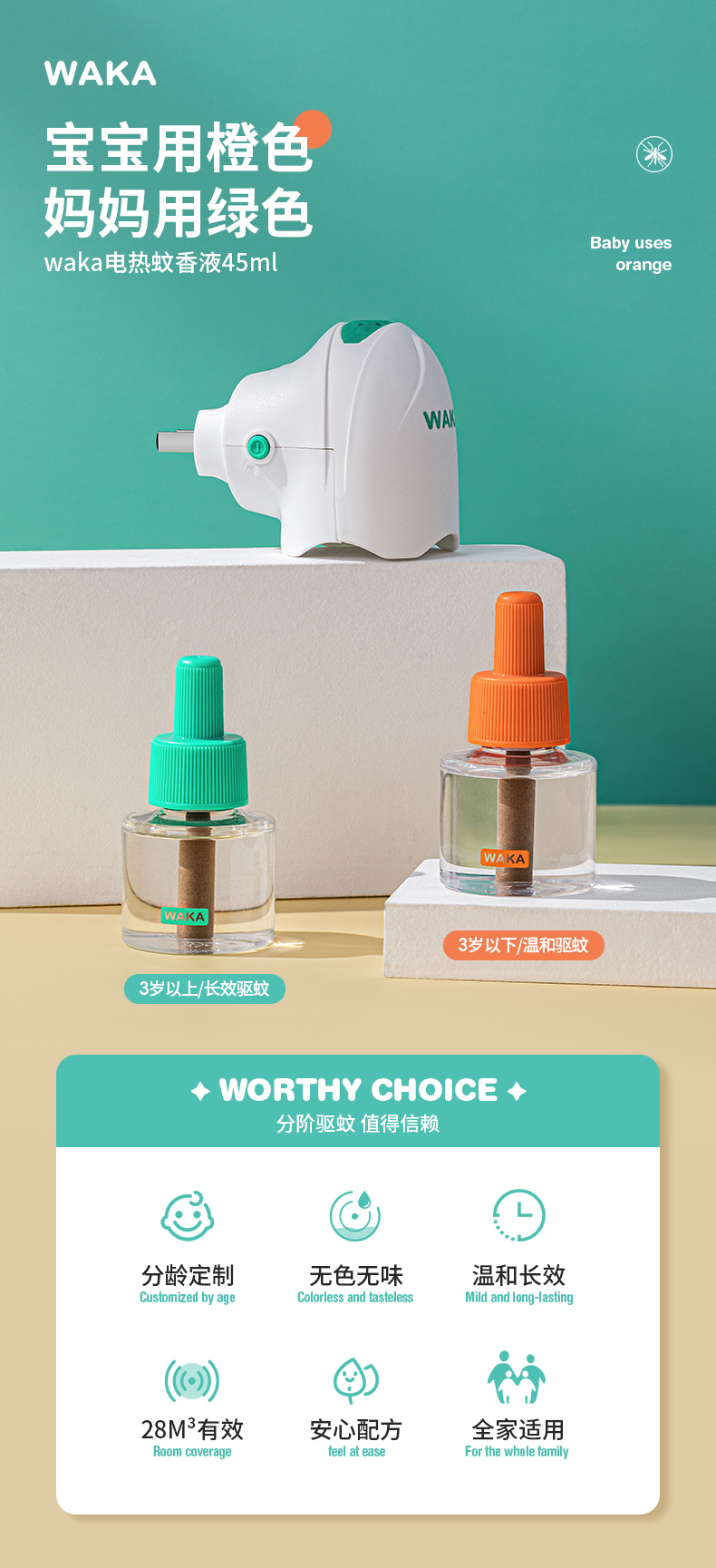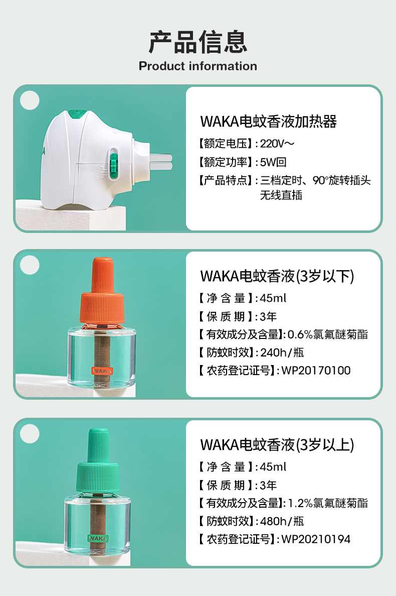 WAKA电热蚊香液家用无味婴儿孕妇电蚊香幼儿童驱蚊液灭蚊器补充液 加热器