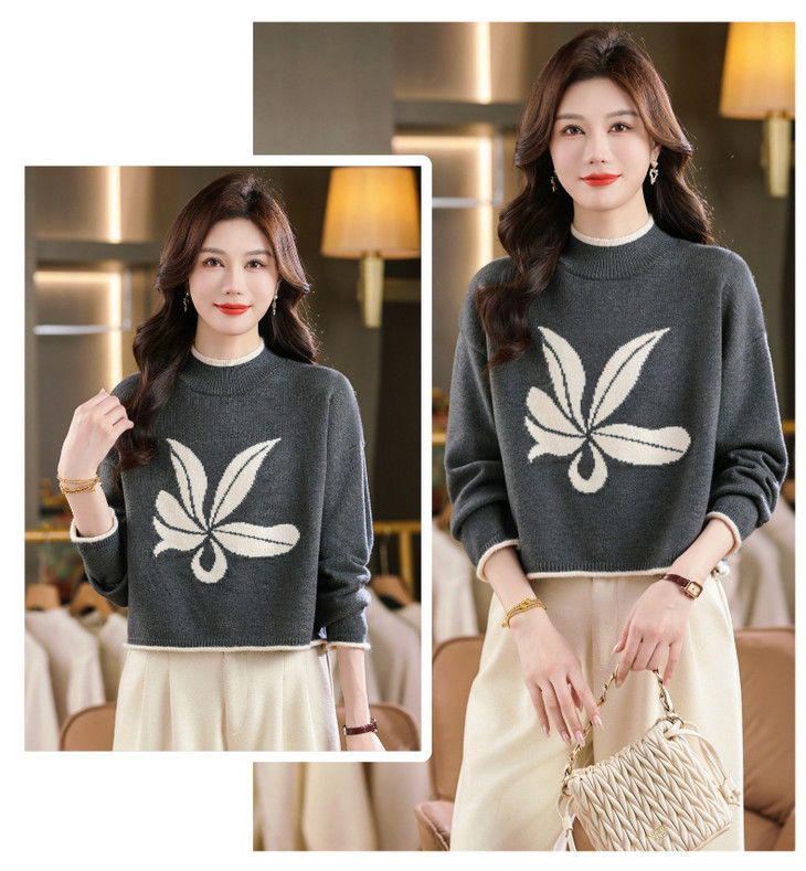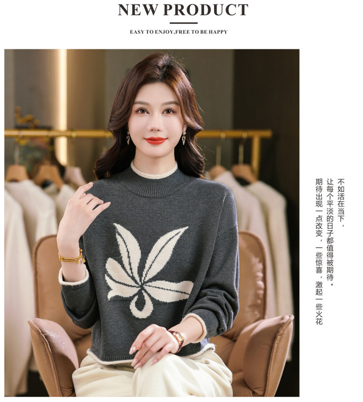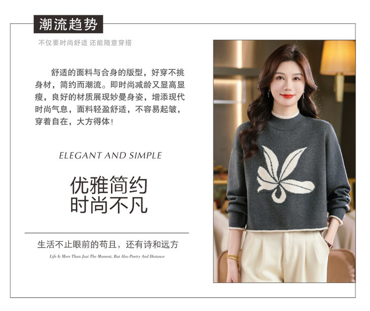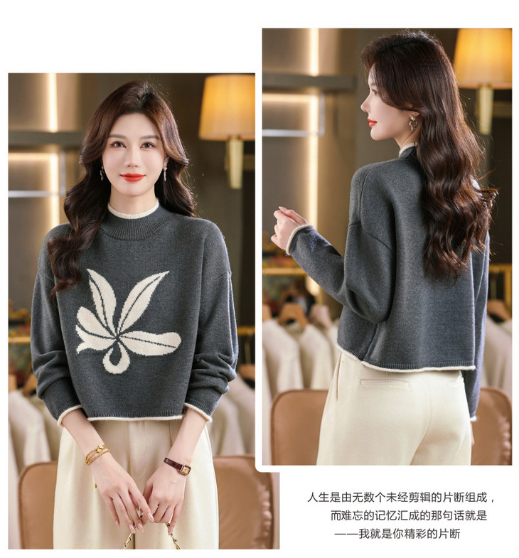 高腰短款毛衣,时尚时髦半高领打底衫CC-101-743