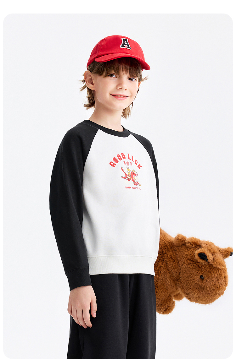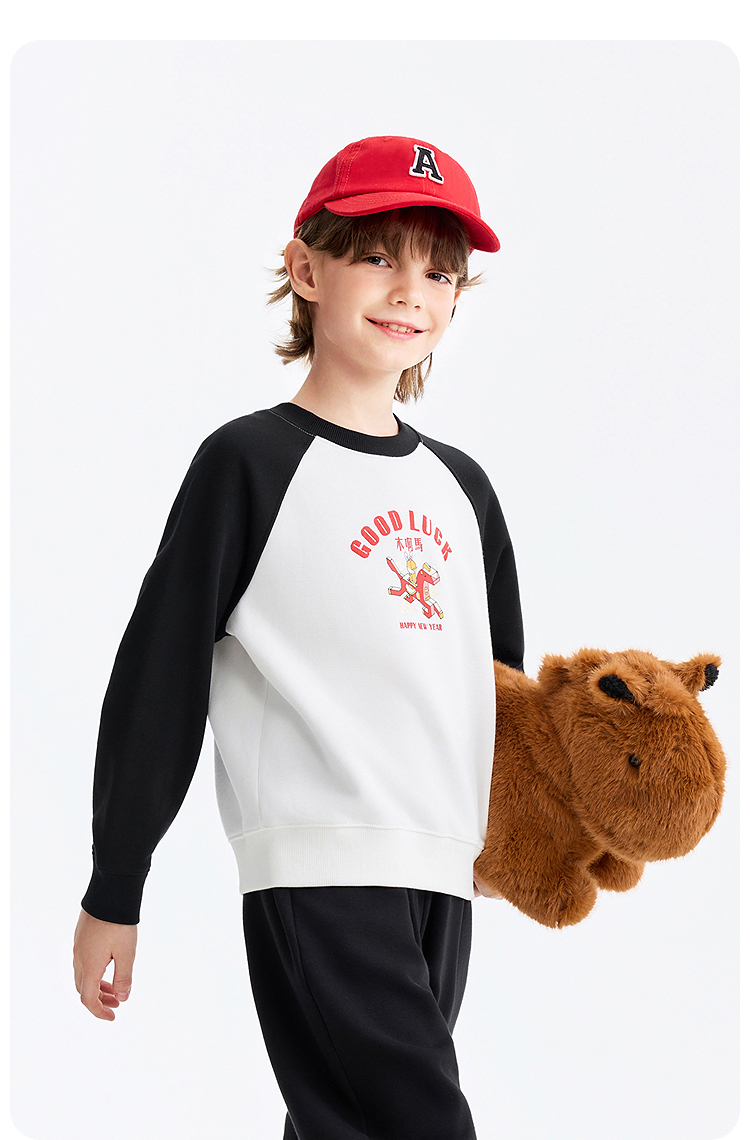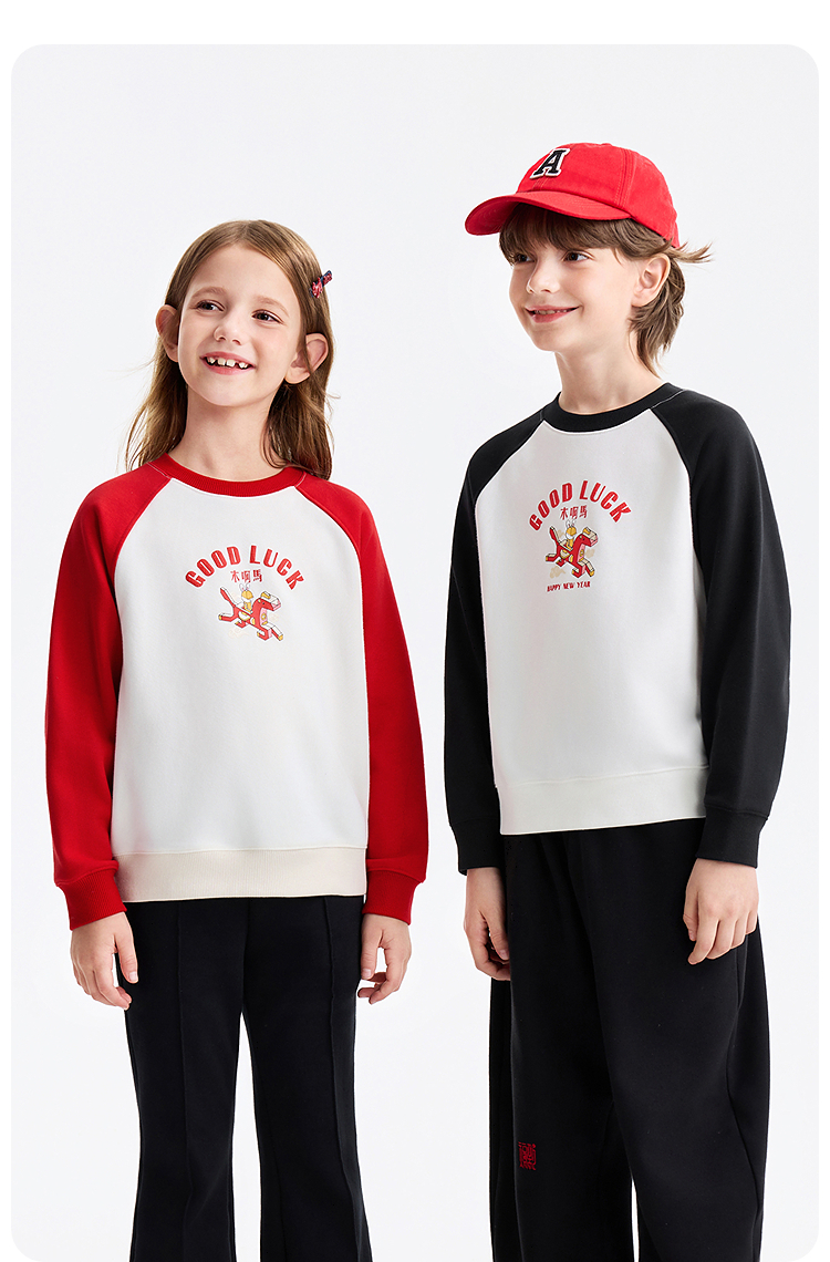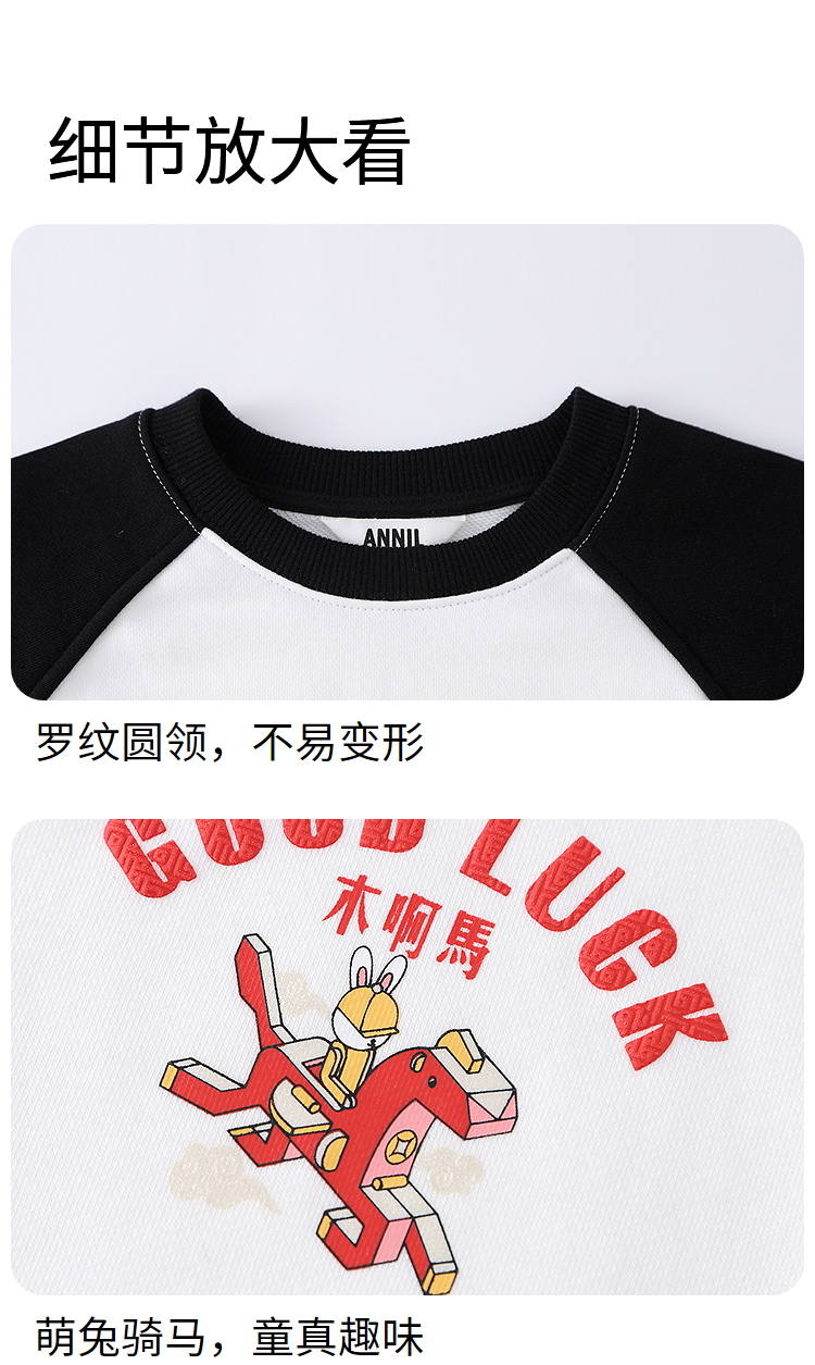 【新年波】男女童圆领长袖卫衣春季新款安奈儿童装EM611504