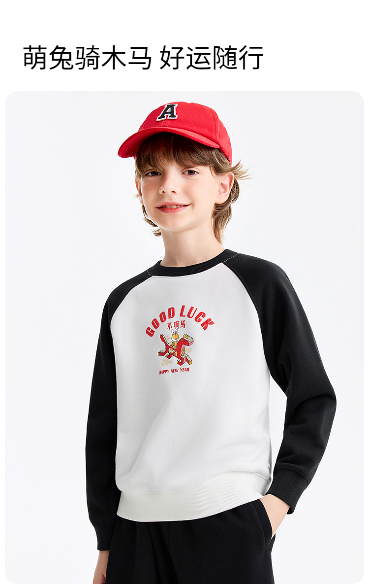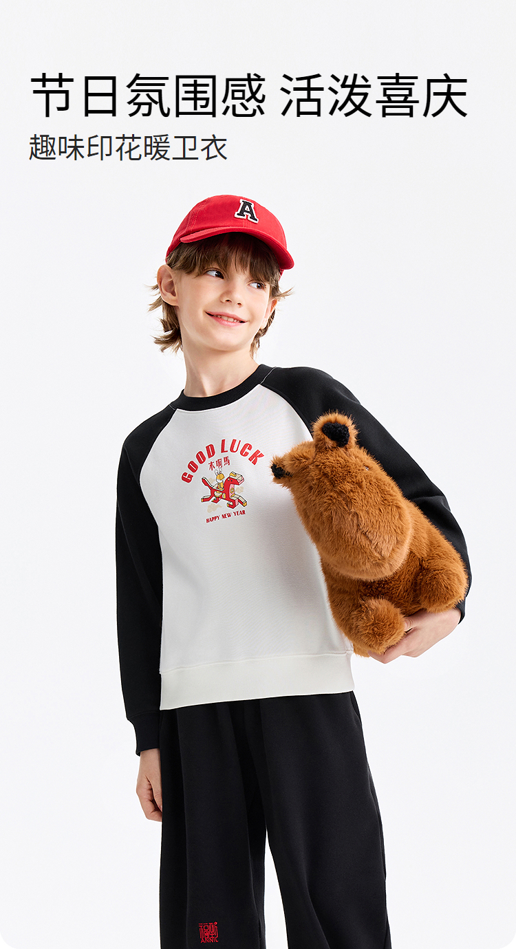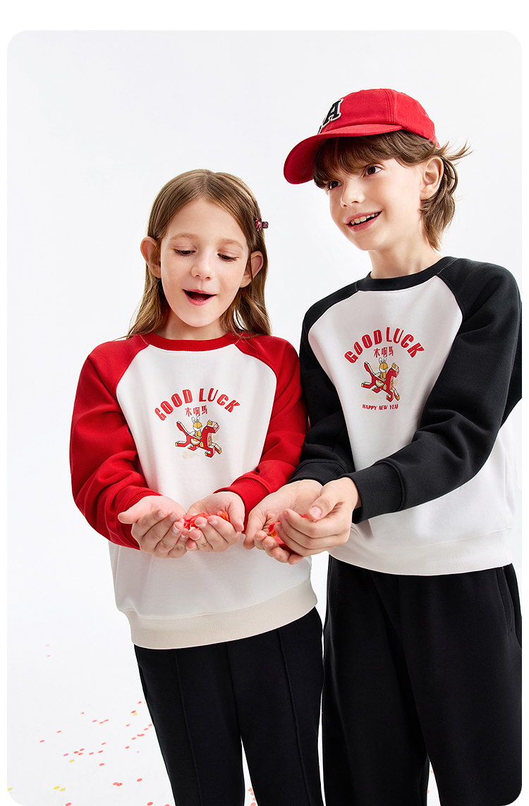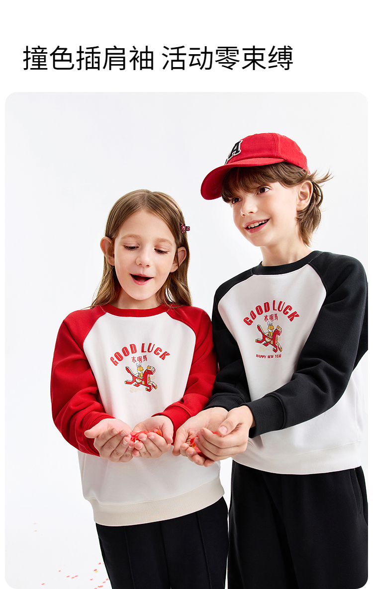 【新年波】男女童圆领长袖卫衣春季新款安奈儿童装EM611504