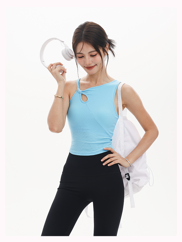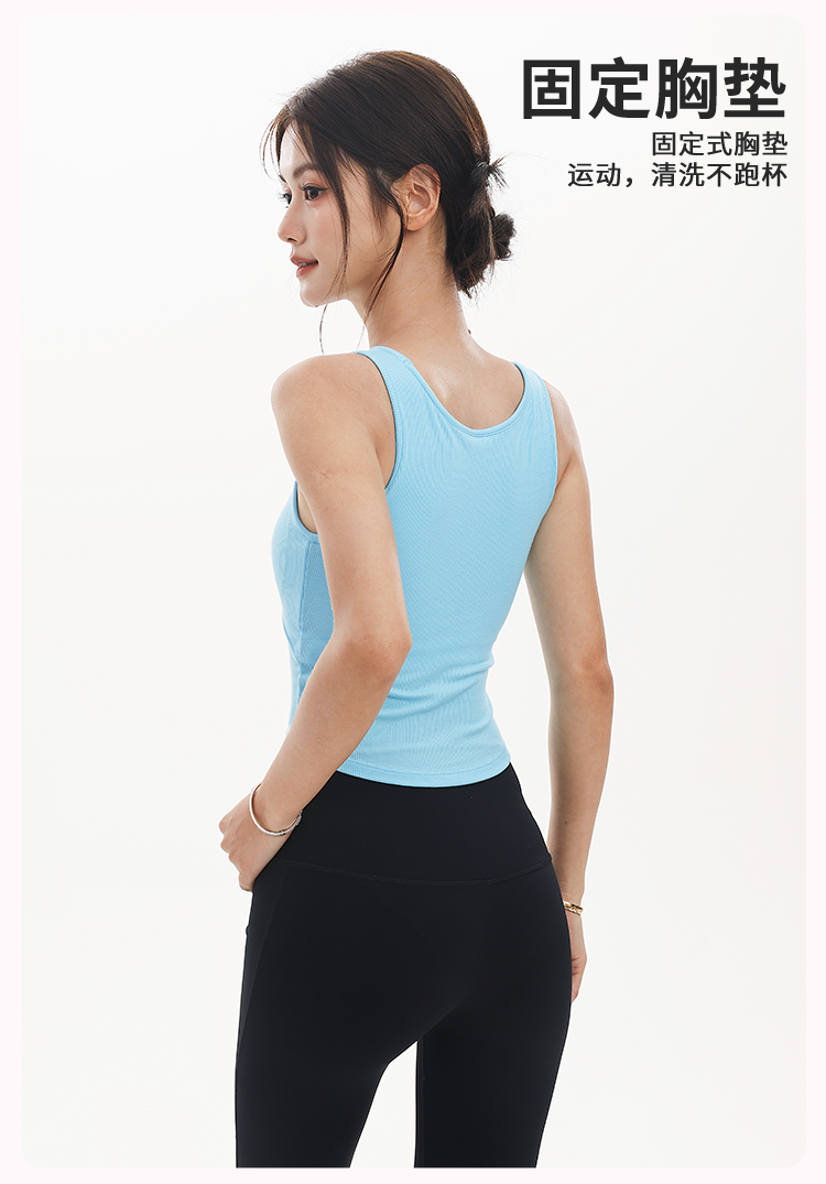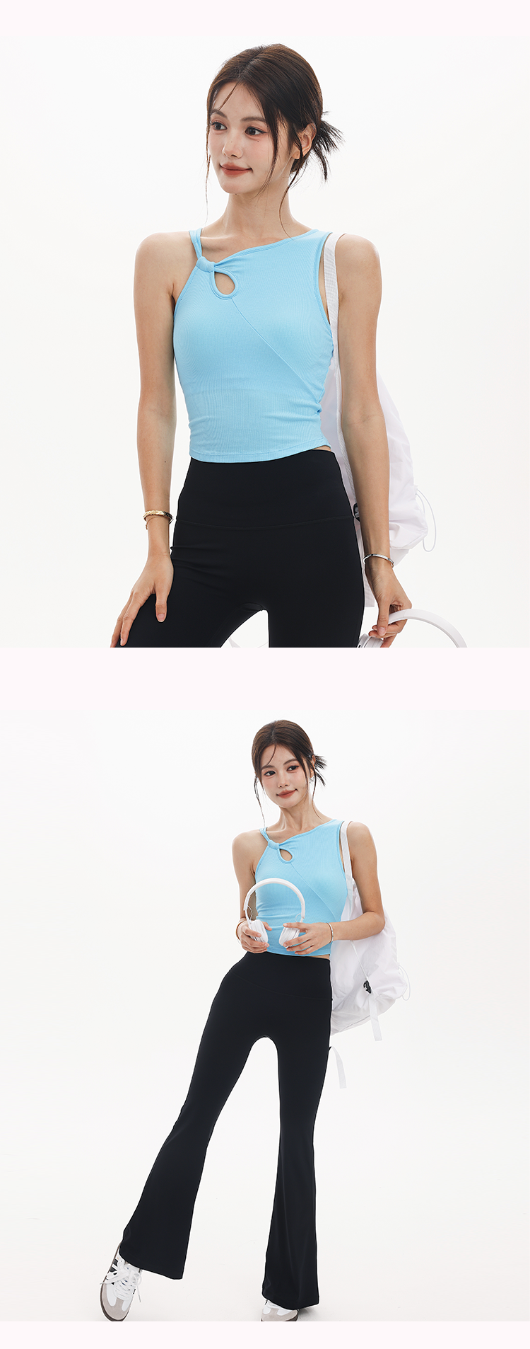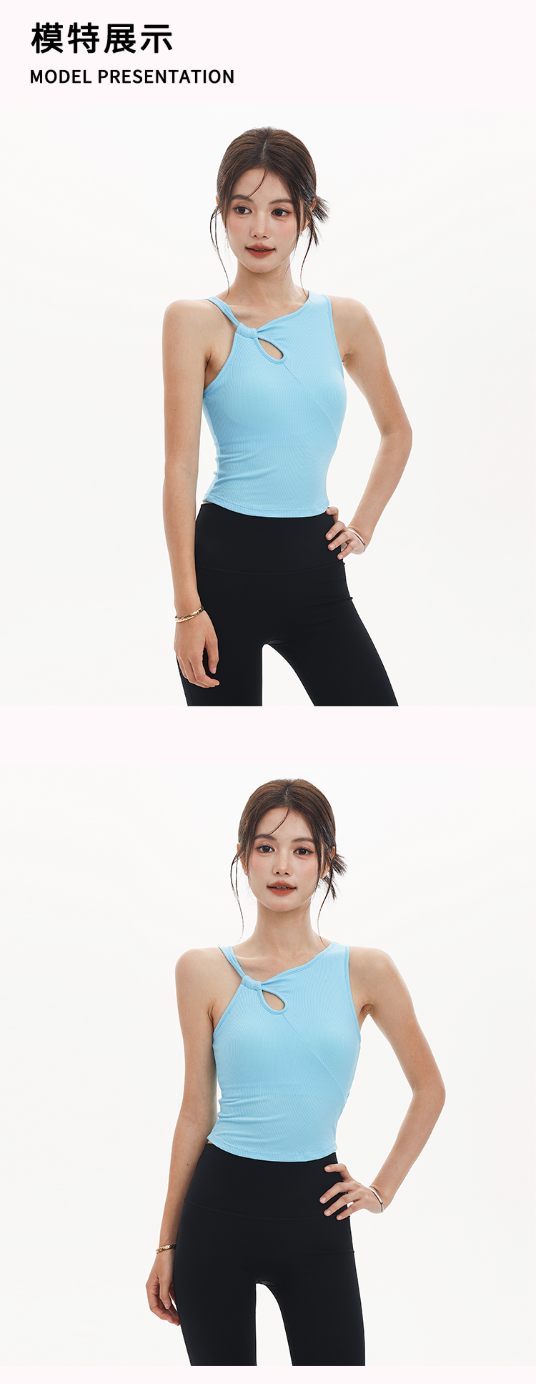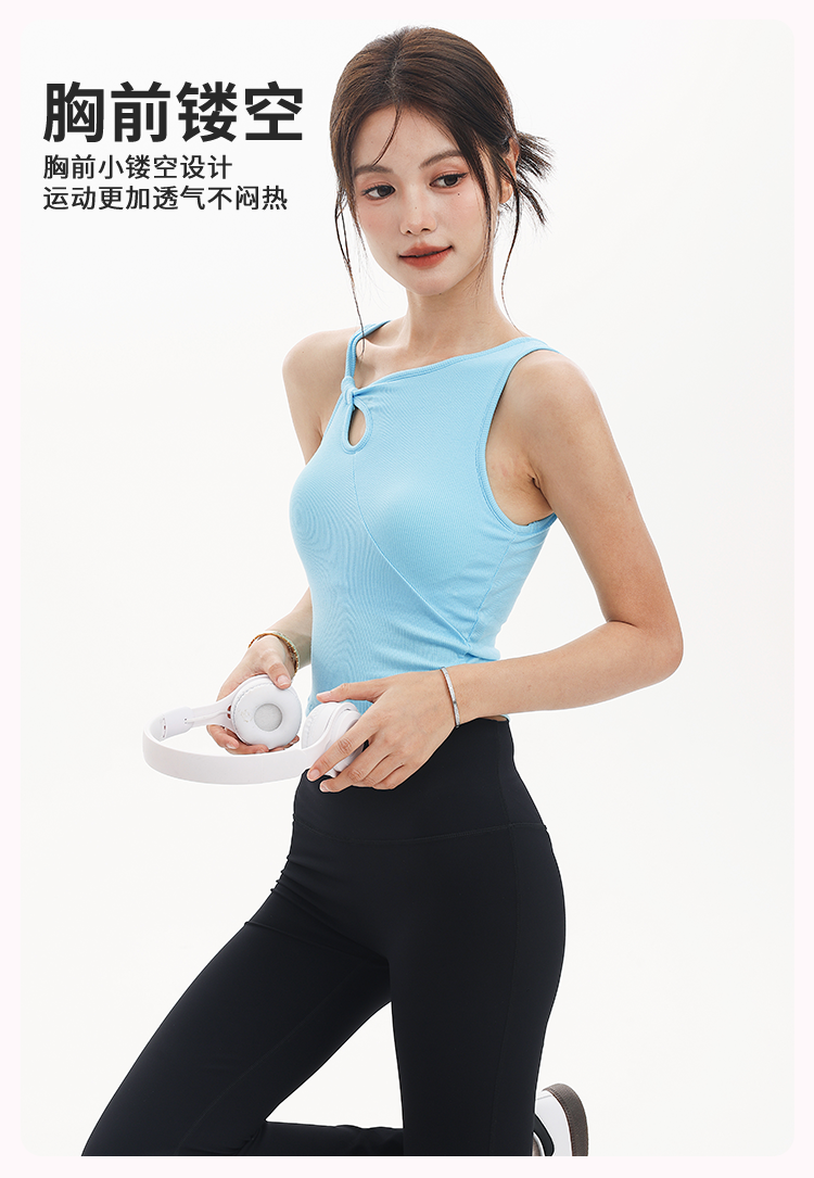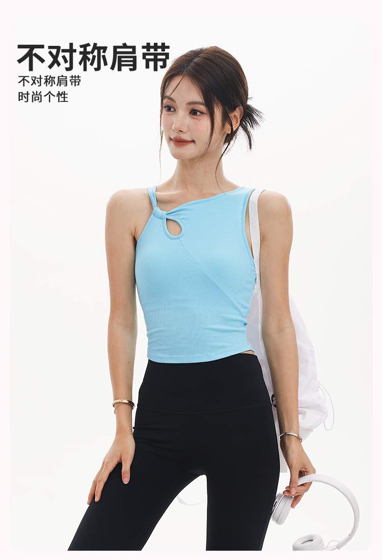 跃牌【海听系列】时尚斜肩背心瑜伽服女带胸垫健身内衣bra跑步运动文胸XC76