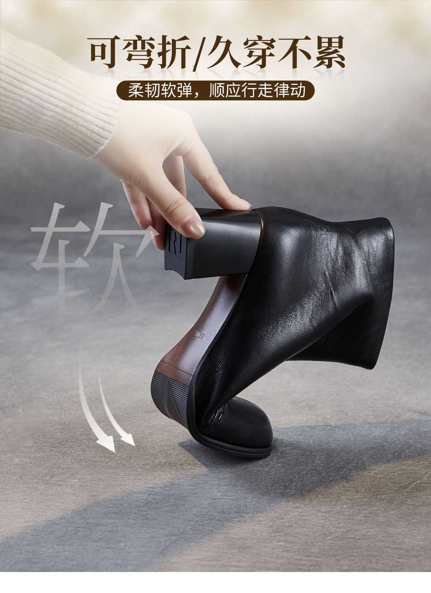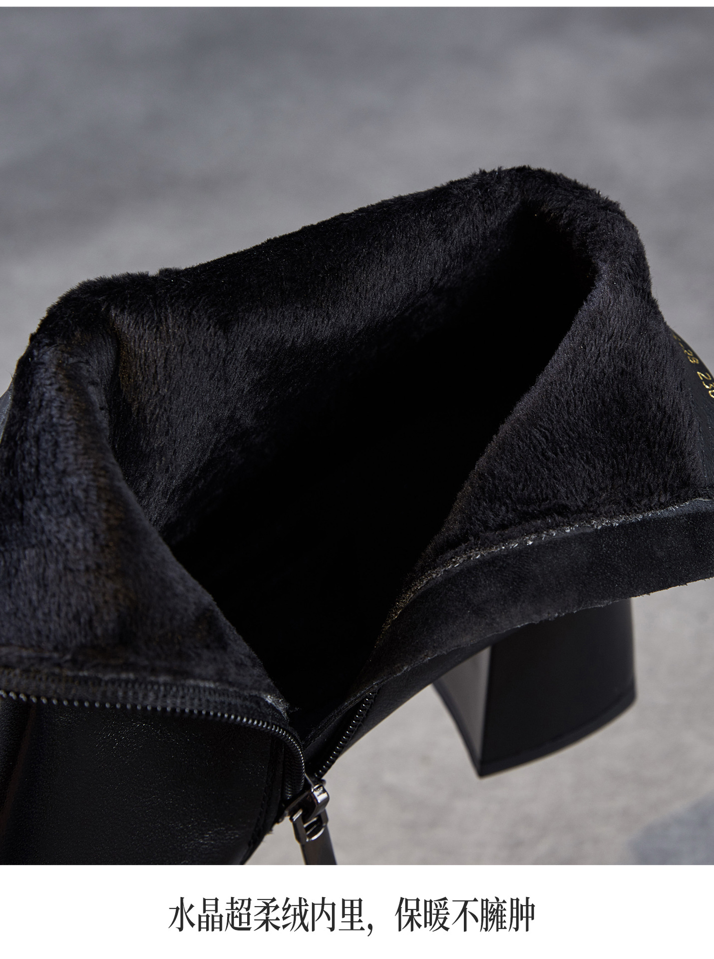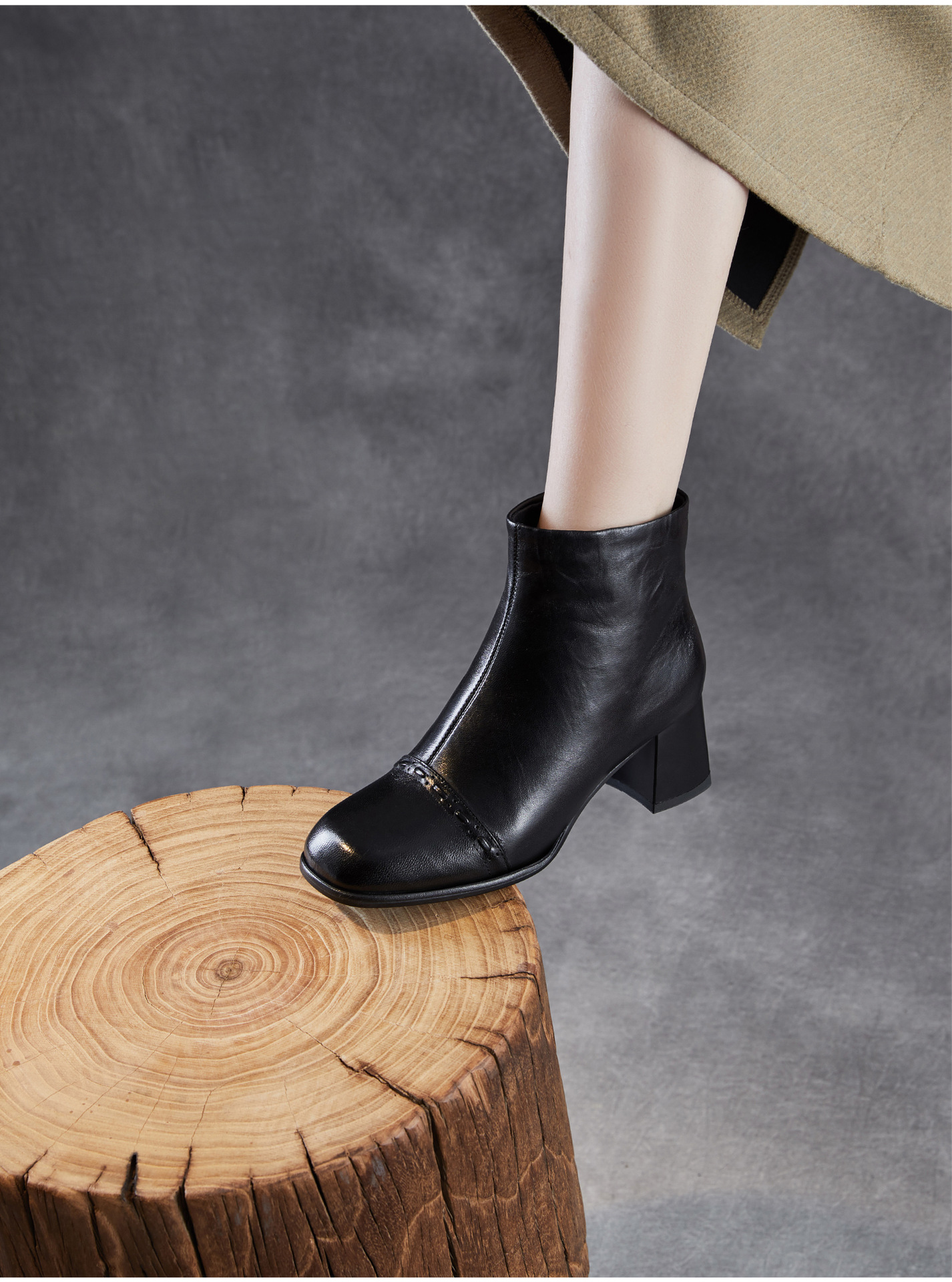 ZM 258688粗跟轻奢羊皮短靴软底真皮方头气质显瘦加绒靴
