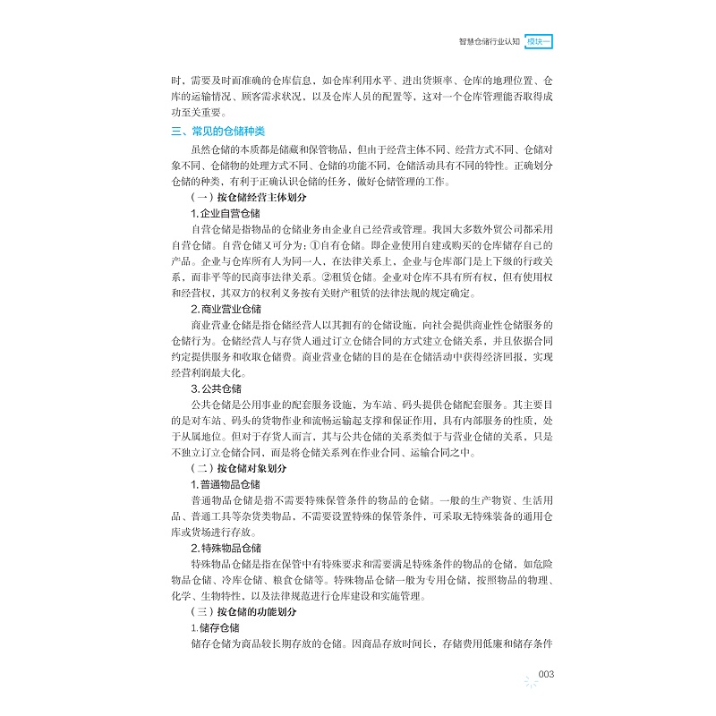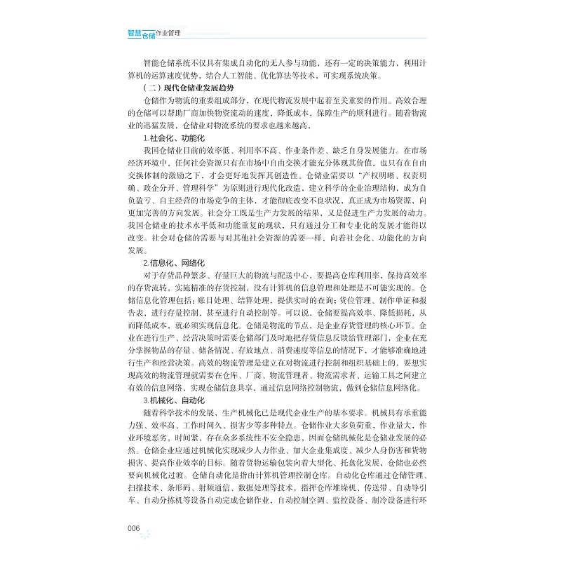 本书是以智慧仓储企业的作业流程为主线,注重结合行业发展实际,内容全面而实用。全书共八章,主要包括智慧仓储行业认知、智慧仓储装备与技术、智慧仓储规划与布局、入库作业管理、库内作业管理、出库作业管理、智慧仓储数据分析、智慧仓储的典型应用案例等内容。本书模块化设置,内容实用性强,着重突出可操作性,同时配有大量的视频、动画、案例、图片、试题等资源,力图给初学者更多的感性认识。本书可供高职院校和大专院校以及应用型本科物流管理专业的学生使用,也可作为物流企业、仓储管理部门和物流咨询机构的职工培训教材,以及其他相关行业人员、物流科研人员和教学人员的参考用书。