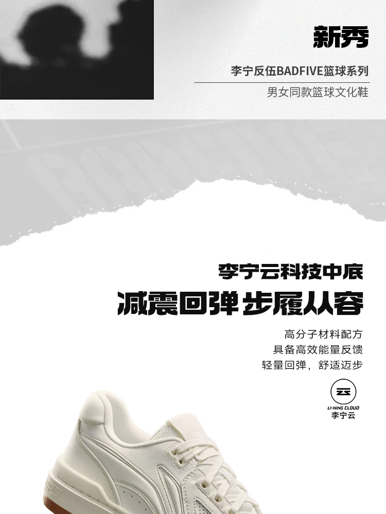 李宁反伍BADFIVE新秀男女同款减震回弹篮球文化鞋ABCV009