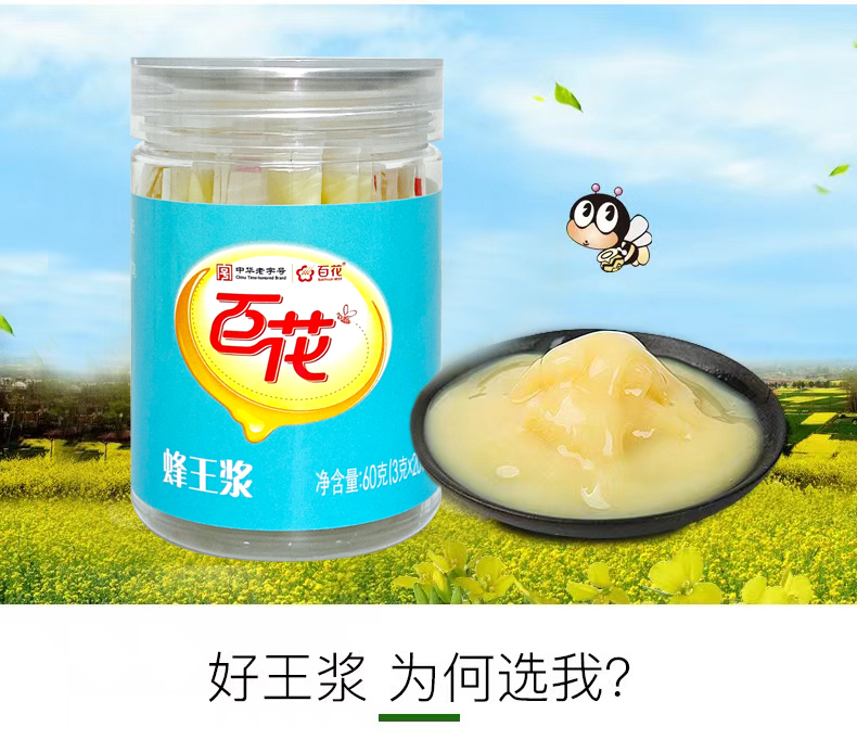 YP百花牌蜂王浆3g/袋*20袋/瓶*8瓶