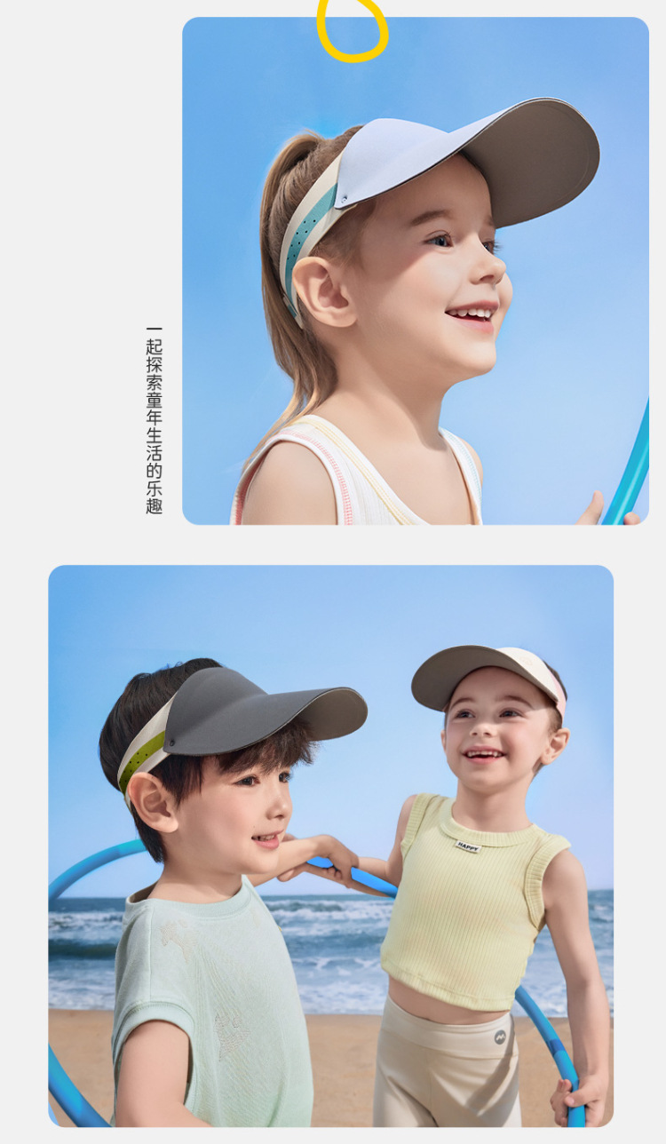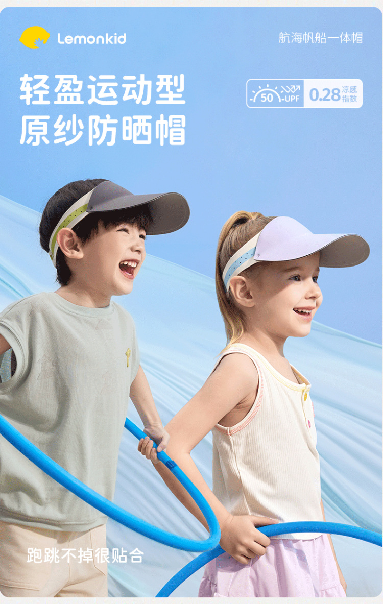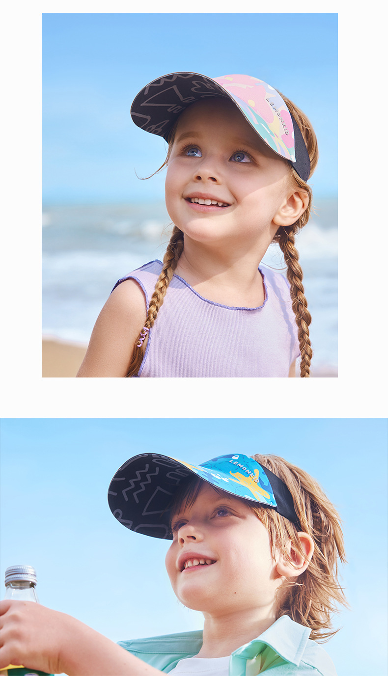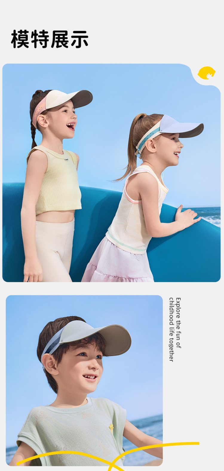 【轻盈运动型,原纱防晒帽】柠檬宝宝原纱儿童防晒帽 宝宝空顶帽棒球帽 沙滩遮阳大帽檐帽子-QQ