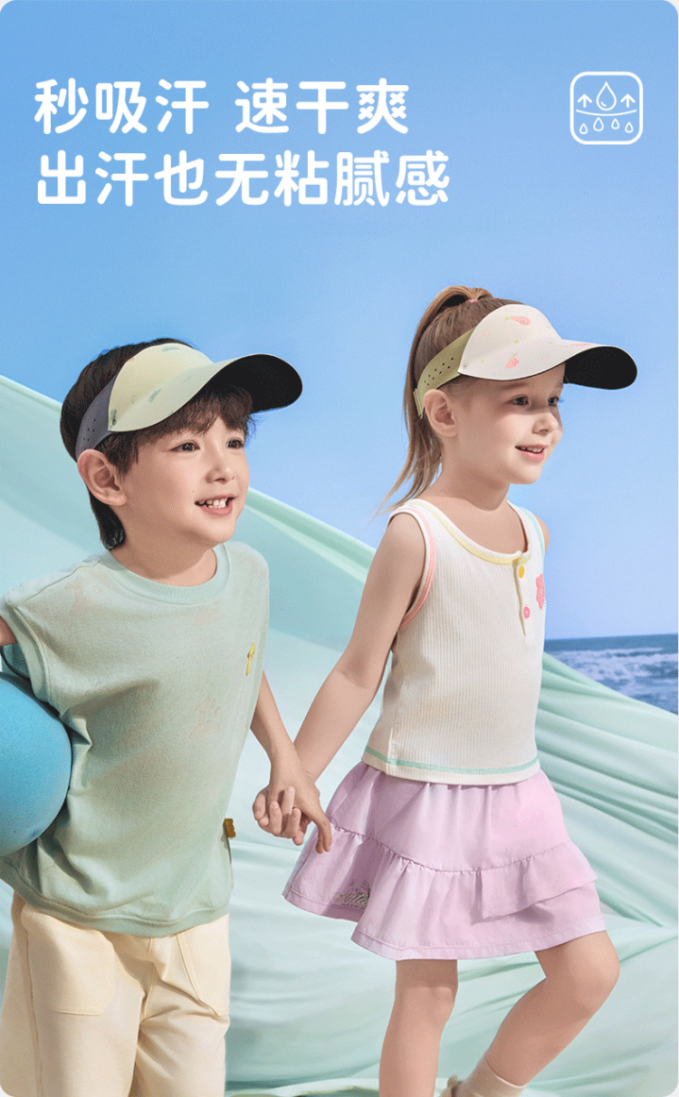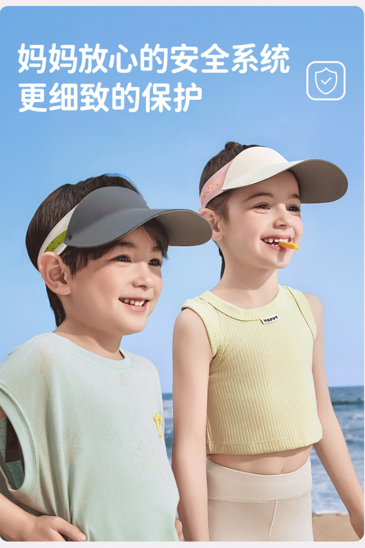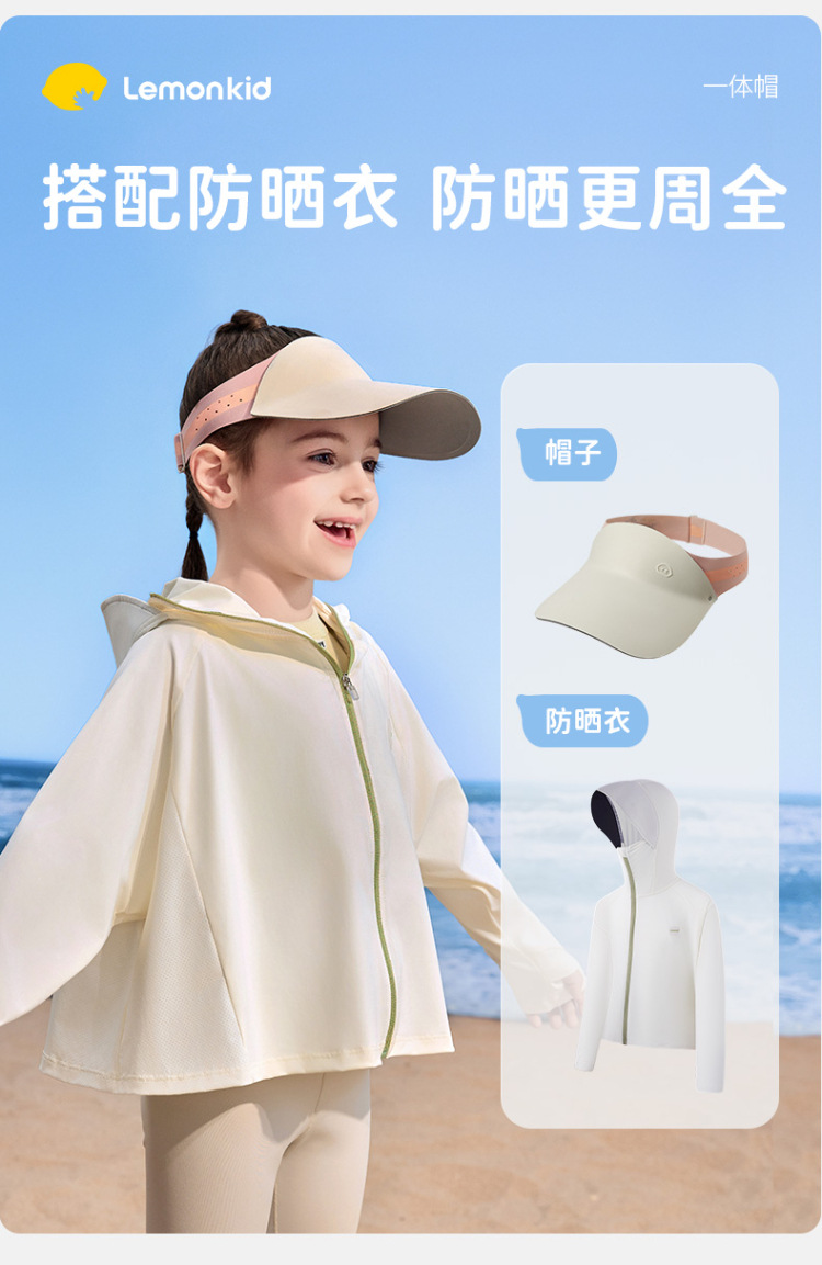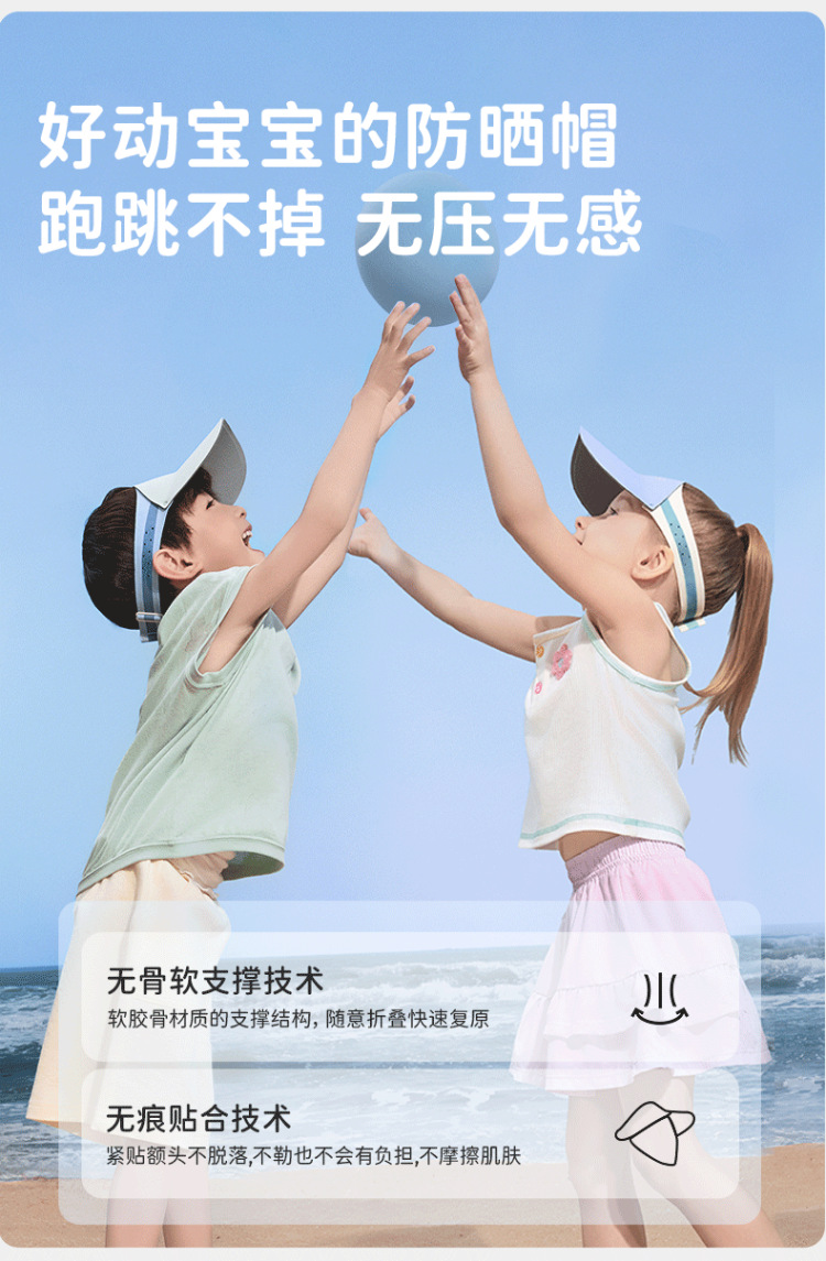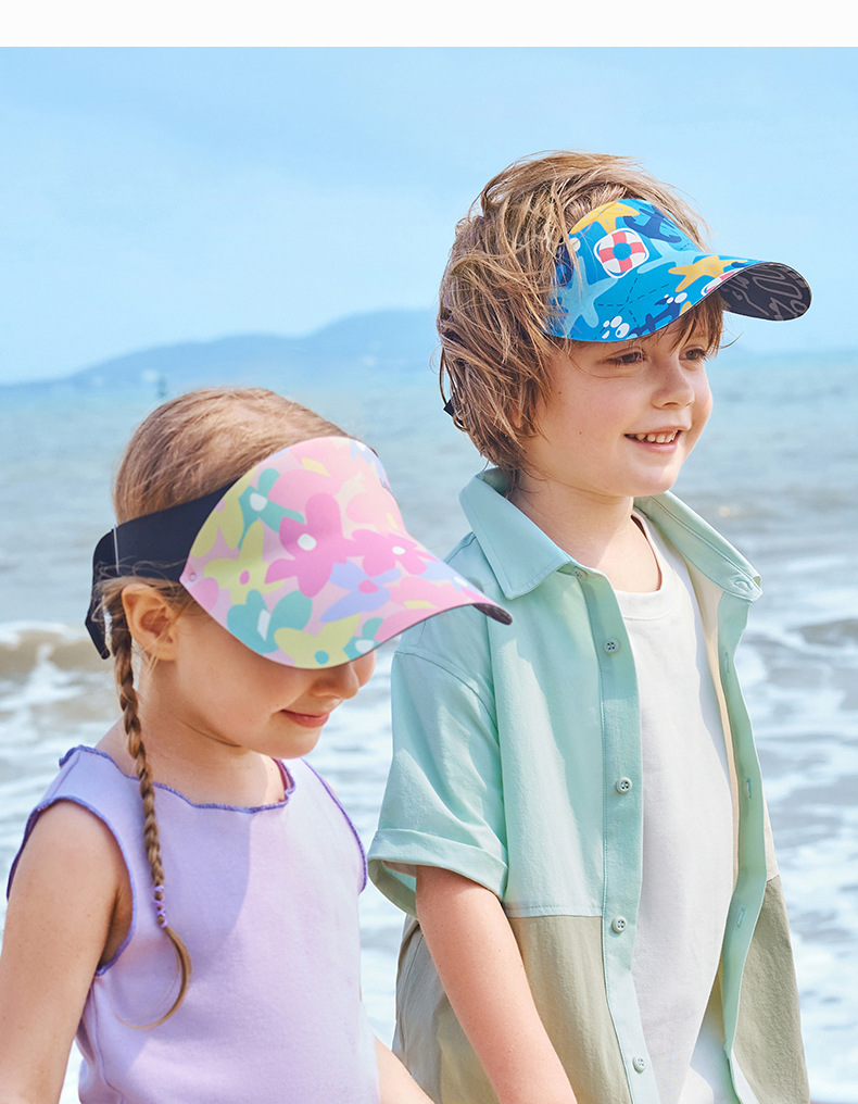 【轻盈运动型,原纱防晒帽】柠檬宝宝原纱儿童防晒帽 宝宝空顶帽棒球帽 沙滩遮阳大帽檐帽子-QQ