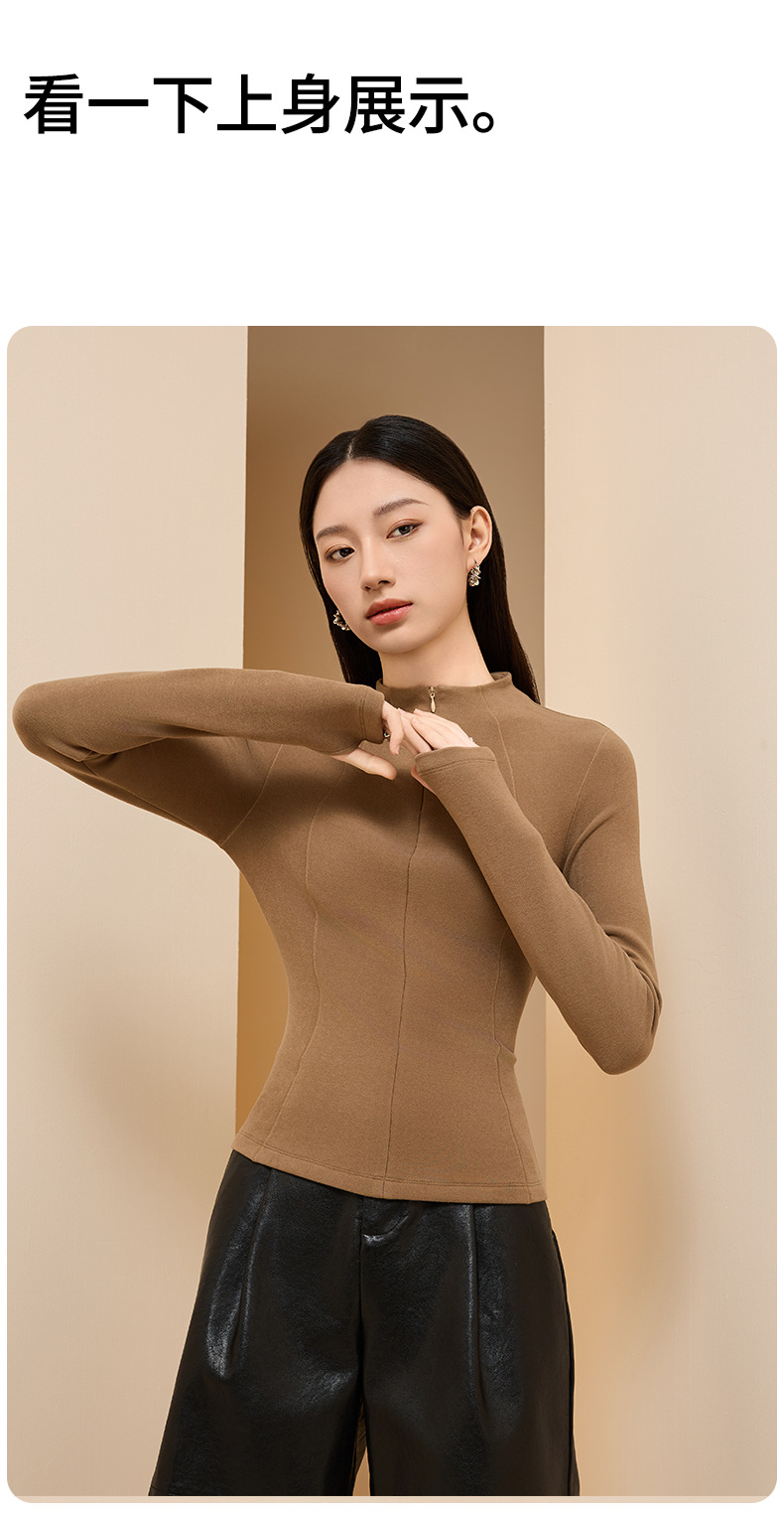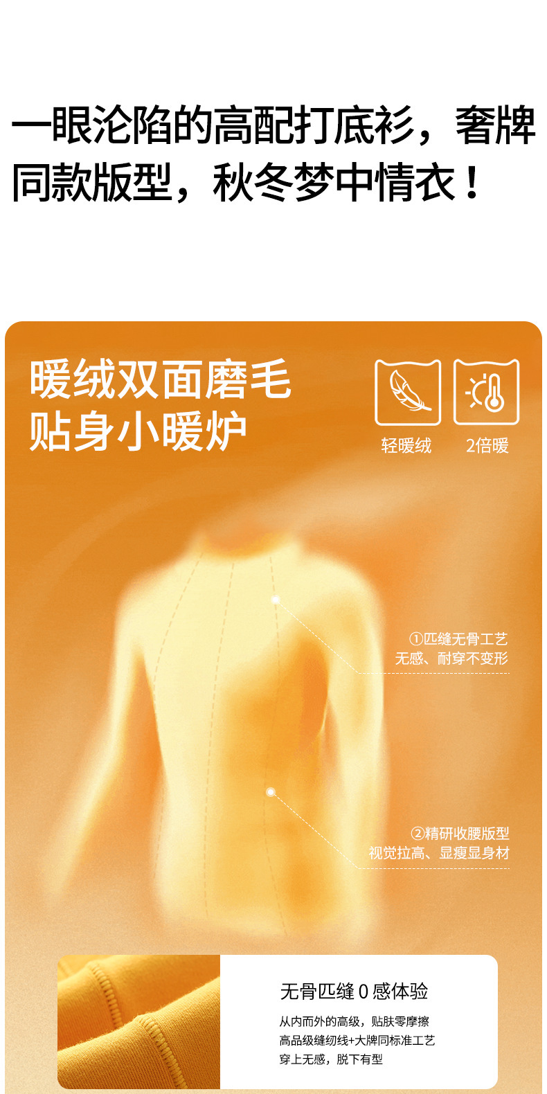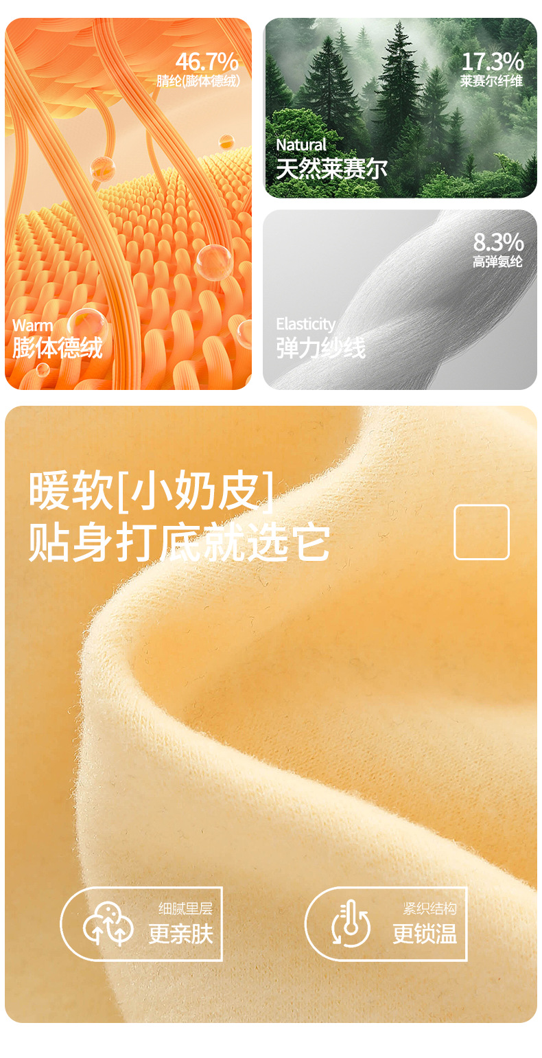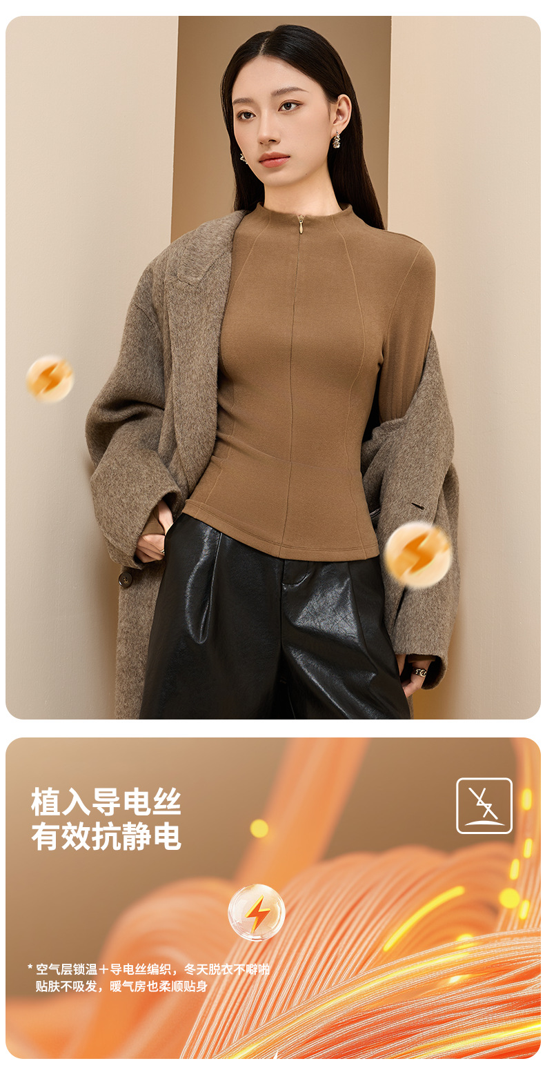 「自」全新升级【铂金会员174/天猫229/差价55】(94900)洛诗琳10A抗菌膨体德绒打底衫2025秋冬新款发热天丝保暖上衣