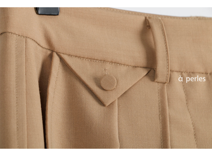 整条褶皱线条,拉直腿型,又呈现出飘逸的feel,