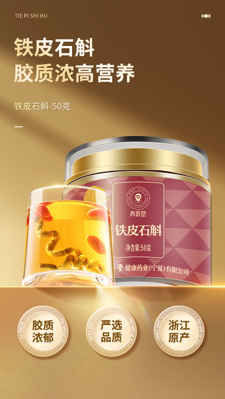 【正宗同仁堂品牌】北京同仁堂 青源堂 铁皮石斛50克/瓶 精选乐清 胶质浓郁 花前采摘SY