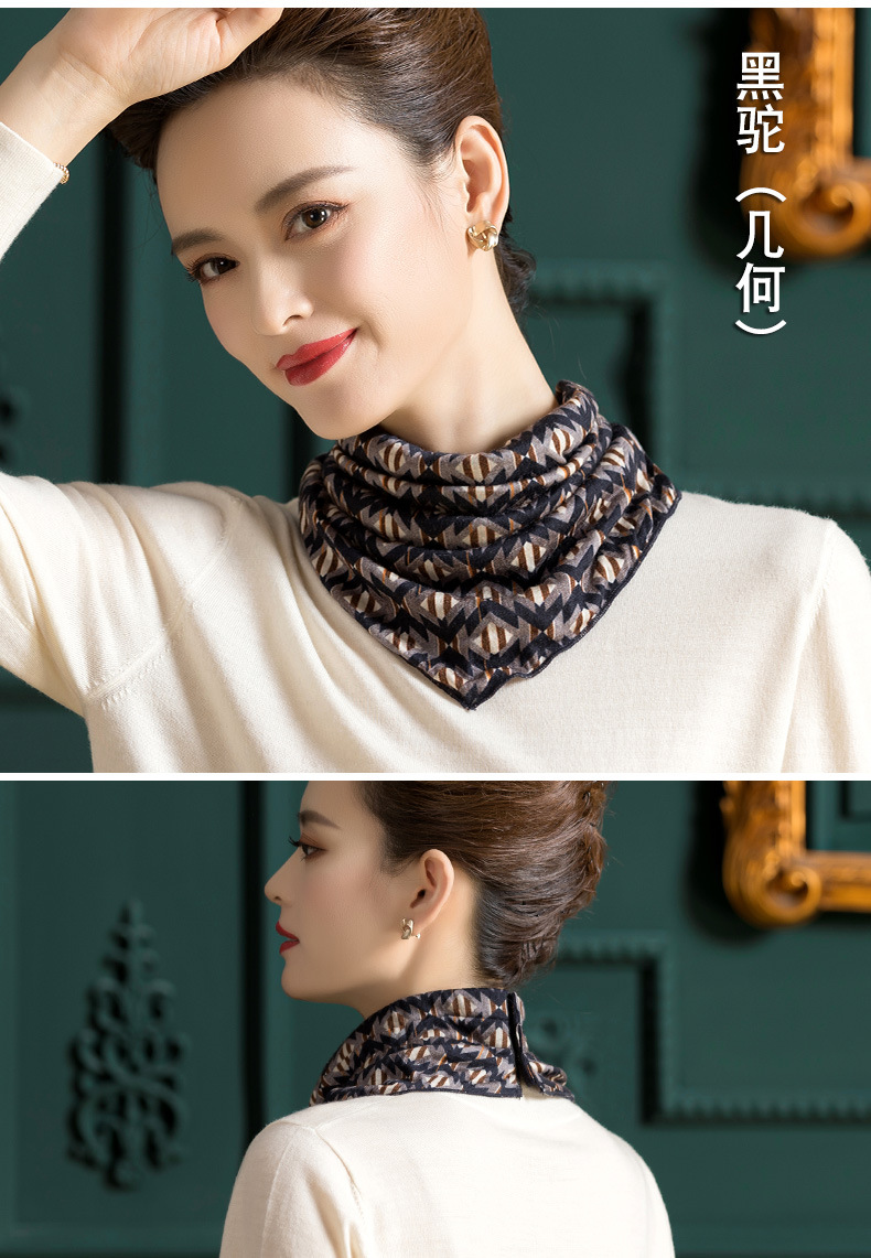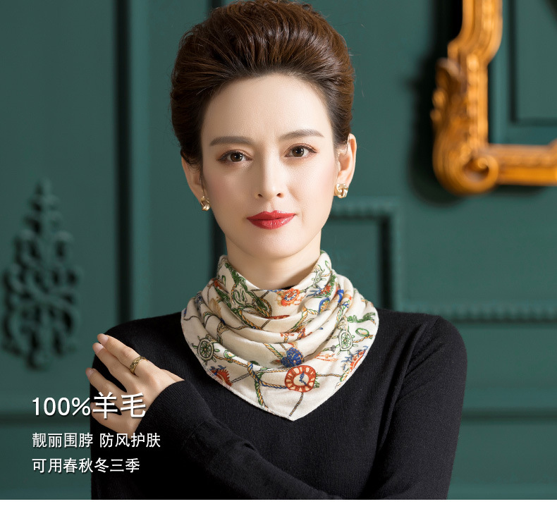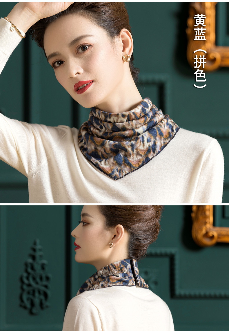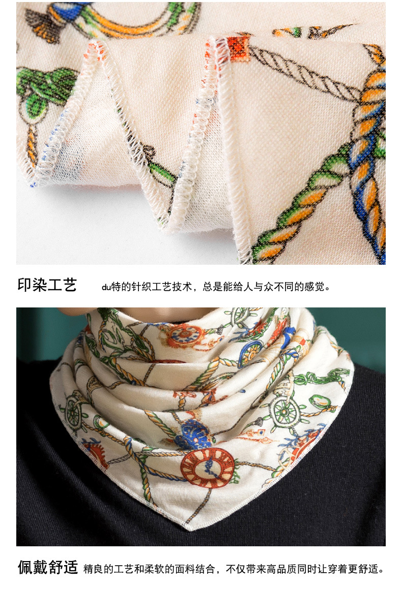 羊毛三角巾暗扣围巾,印花针织百搭套头脖套护颈围脖WY-1152