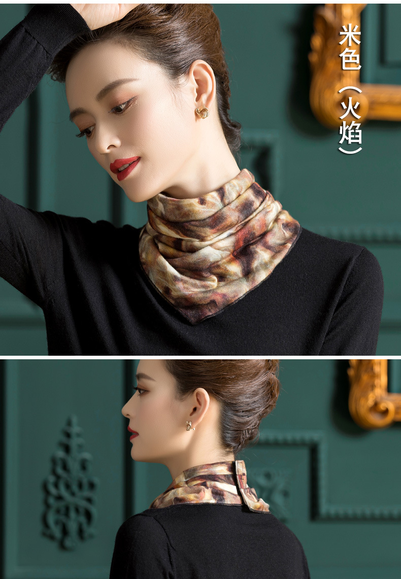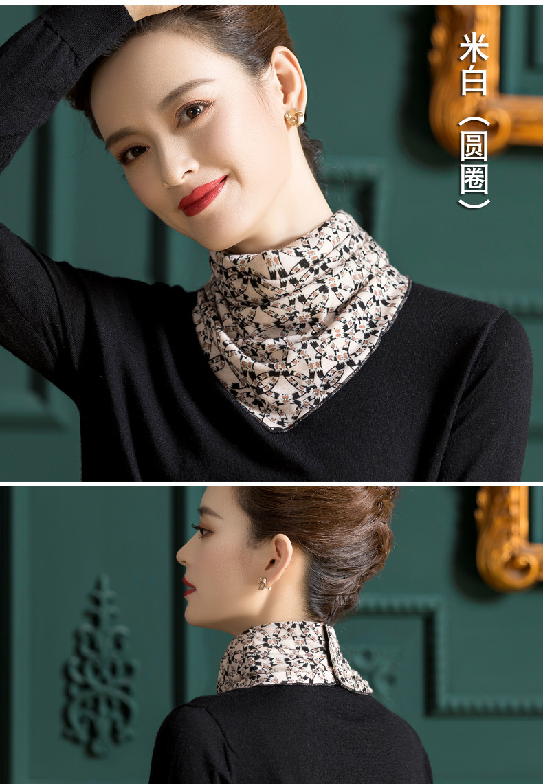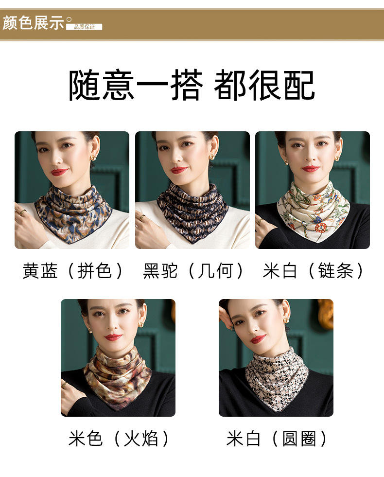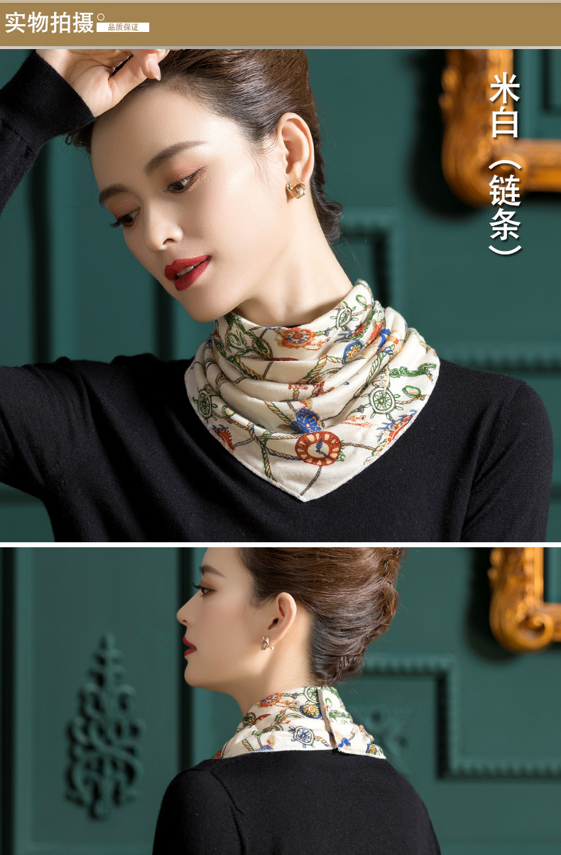 羊毛三角巾暗扣围巾,印花针织百搭套头脖套护颈围脖WY-1152