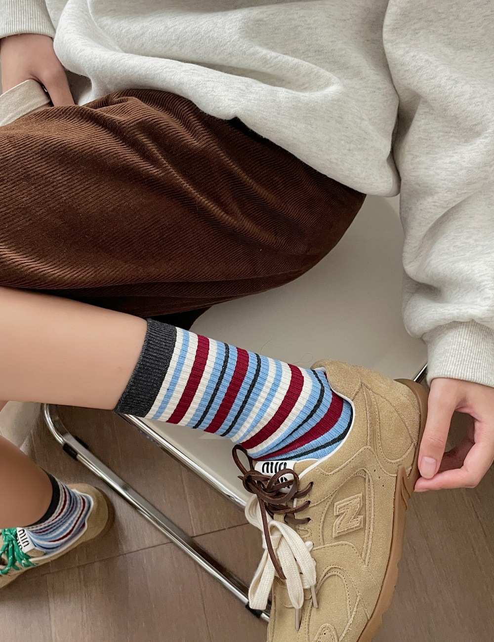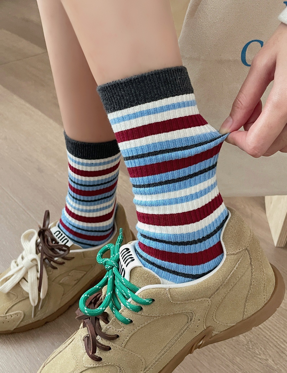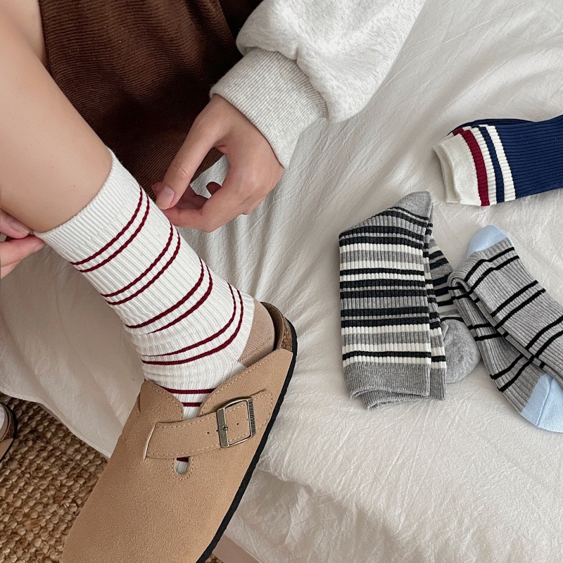 分镜头女中袜ins双针抗起球吸汗秋冬日条纹堆堆长袜(不单卖,3双起售)