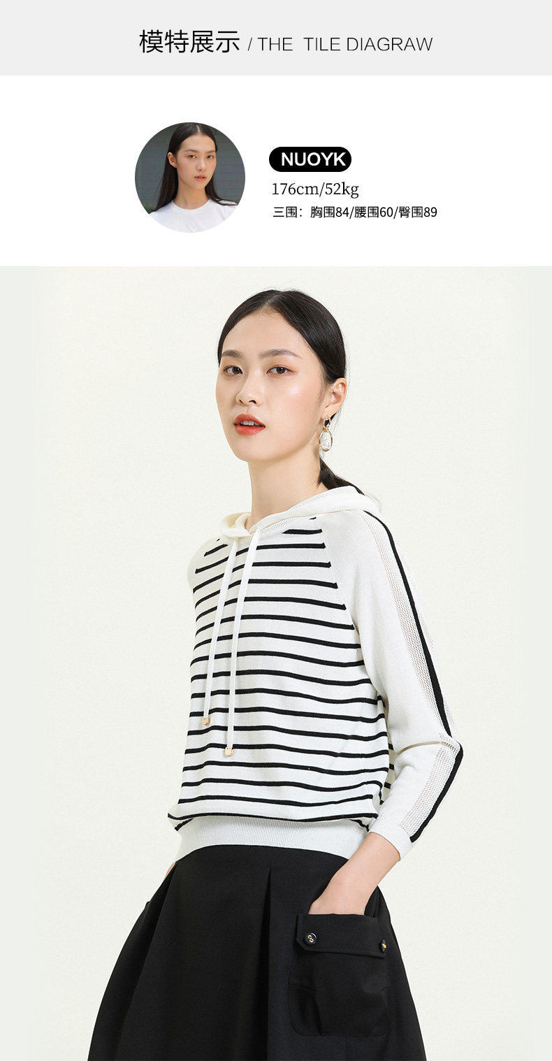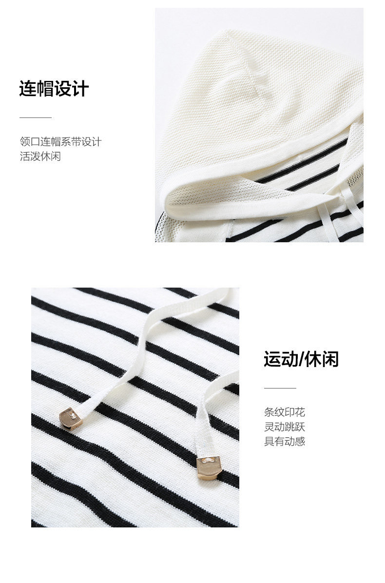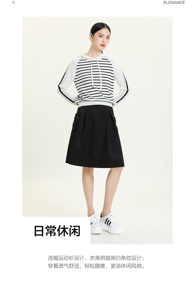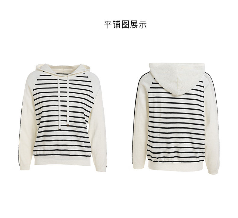 乔万尼新款连帽运动衫条纹黑白拼接设计师款羊毛长袖上衣ES3M592