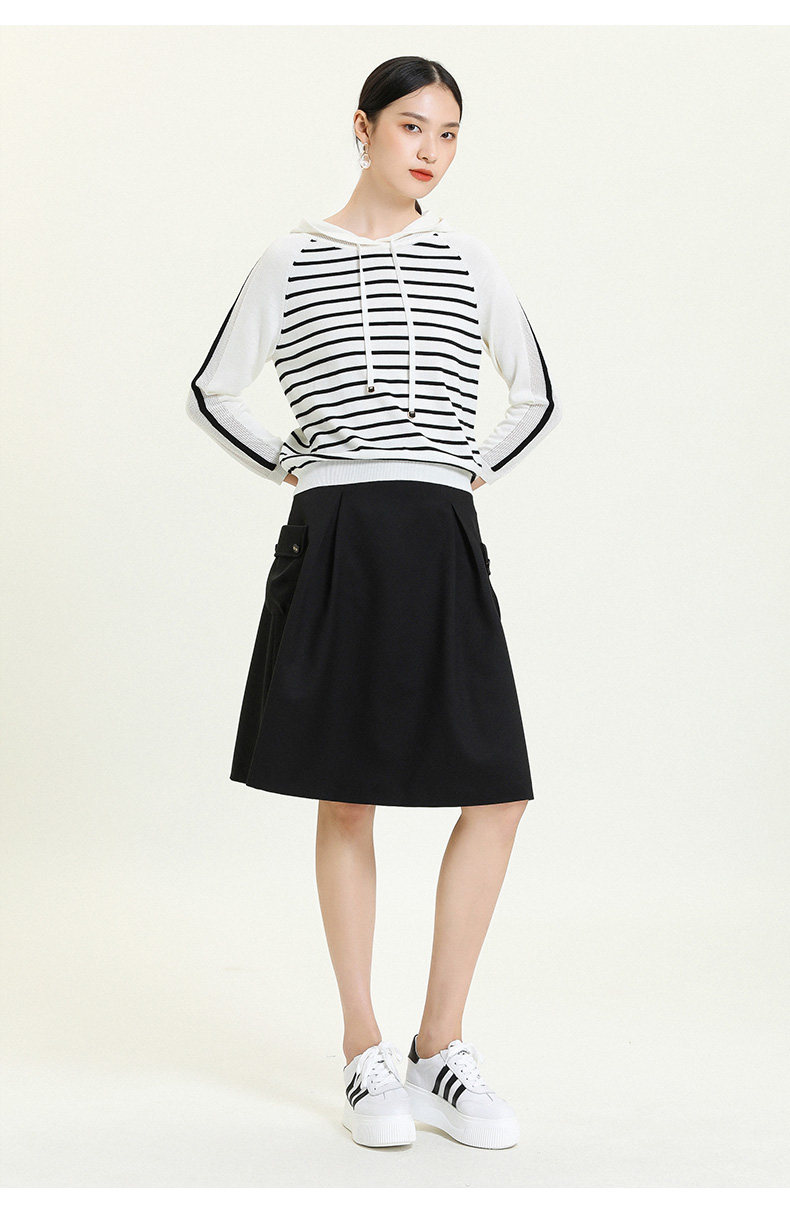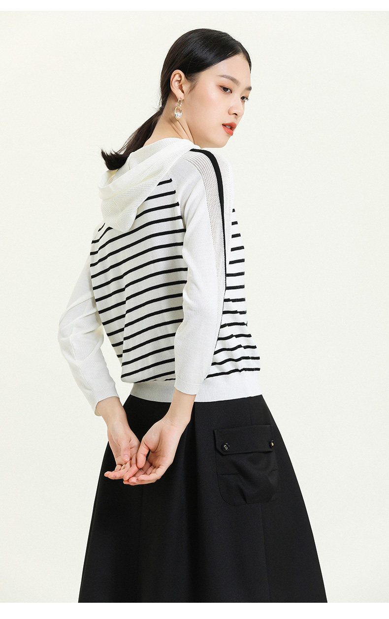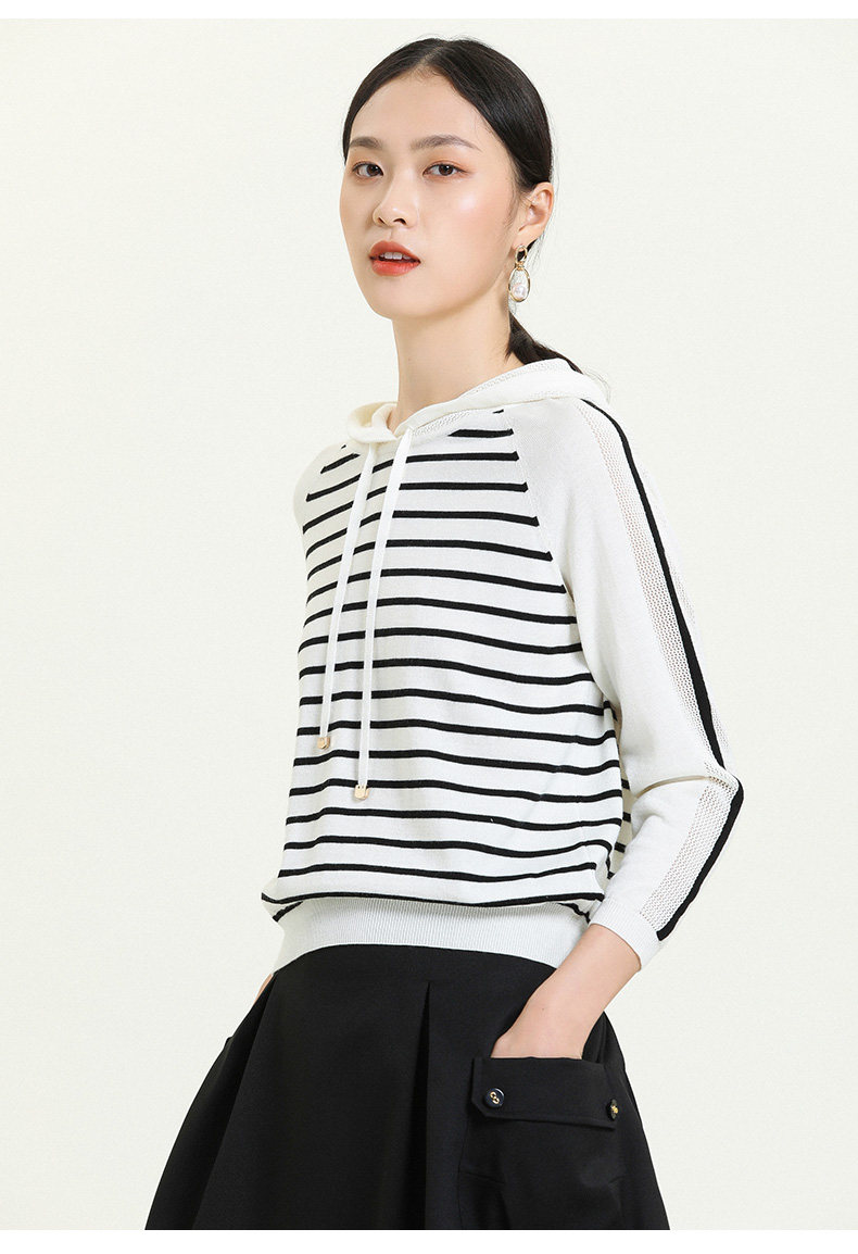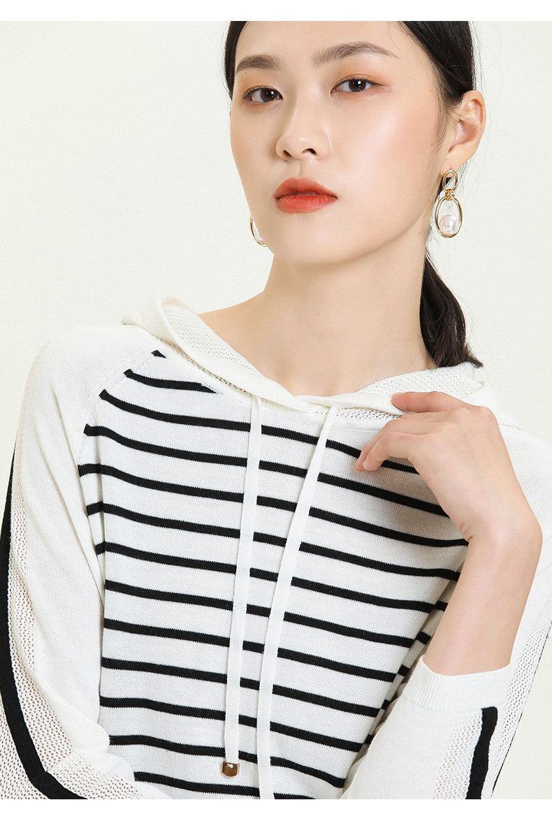 乔万尼新款连帽运动衫条纹黑白拼接设计师款羊毛长袖上衣ES3M592