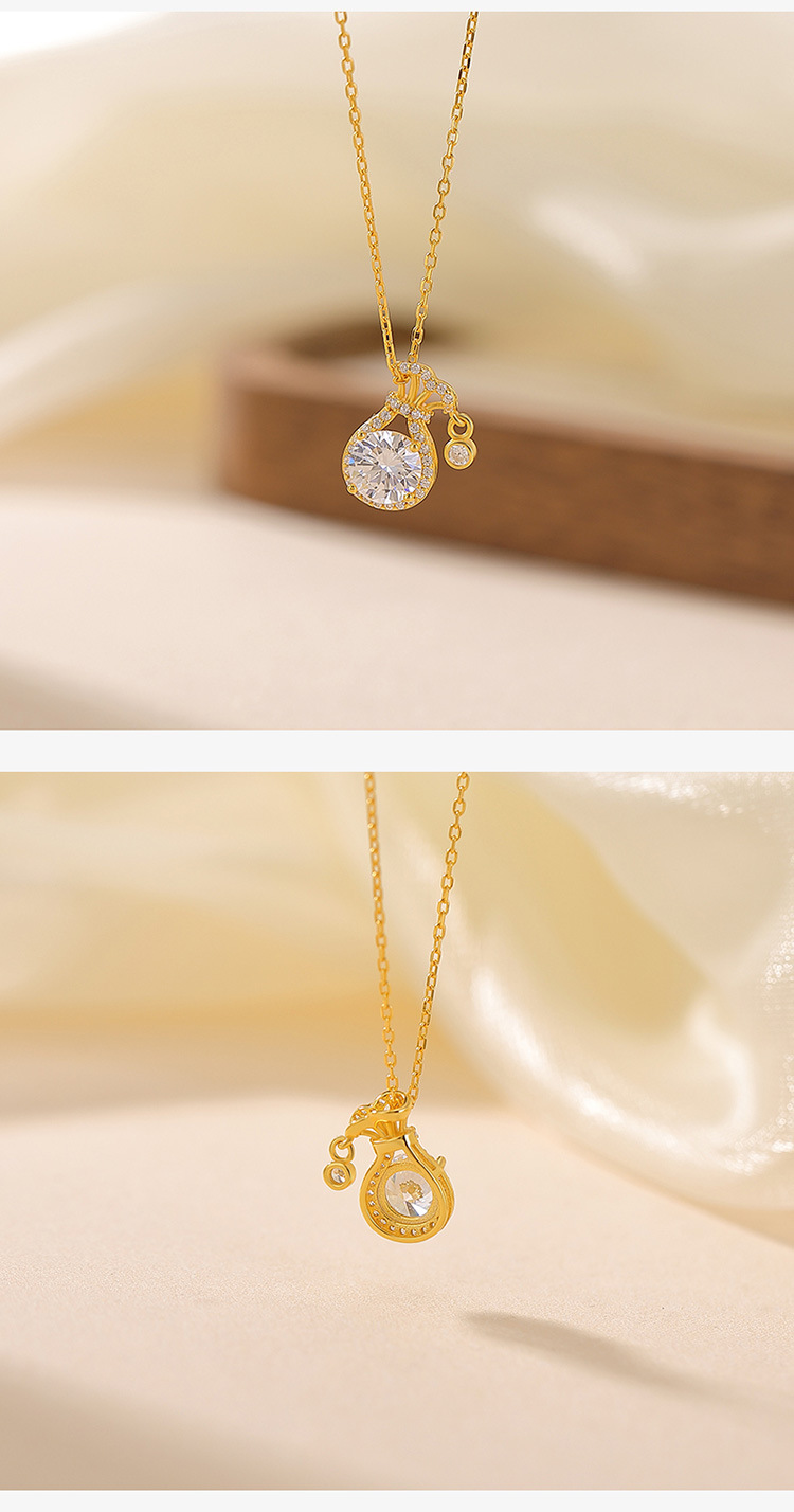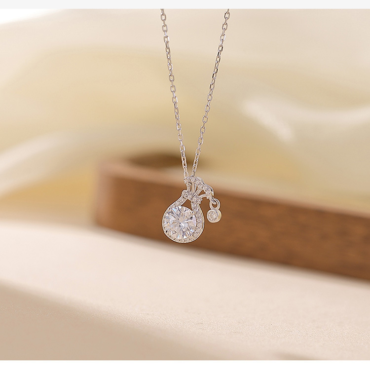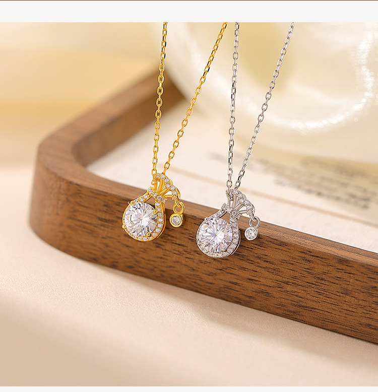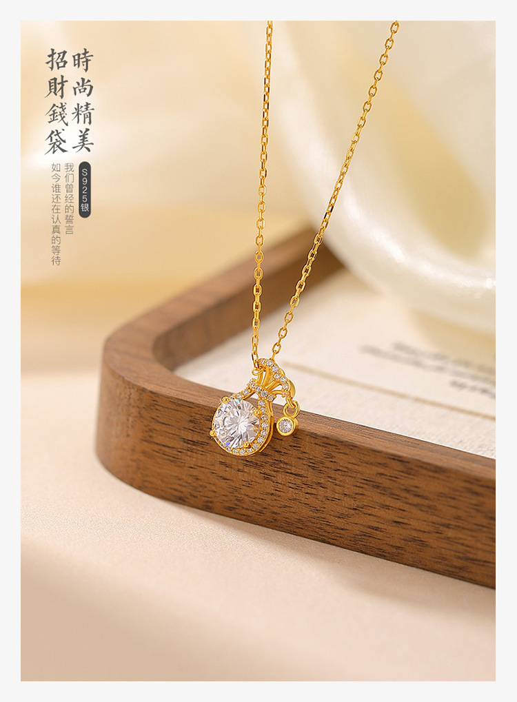 S925纯银镀金锆石小钱袋,切面轻奢高级感O链银吊坠项链套链LJX-364