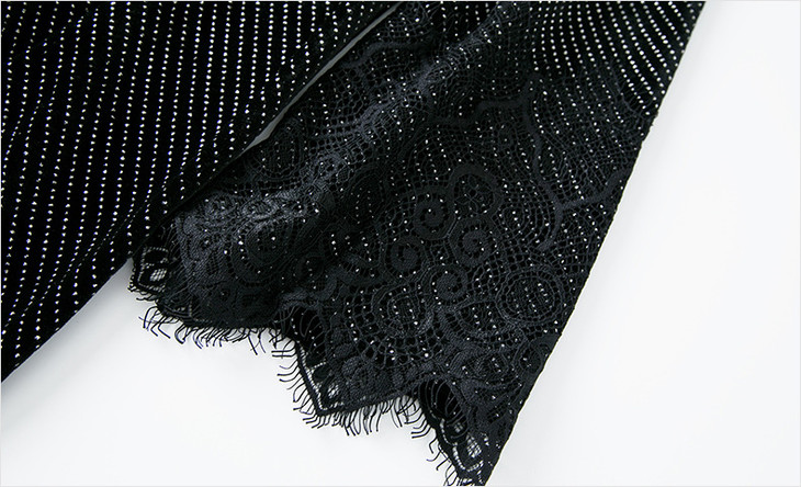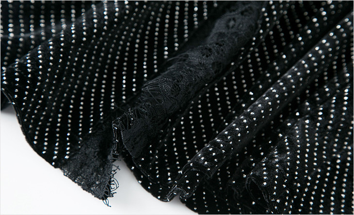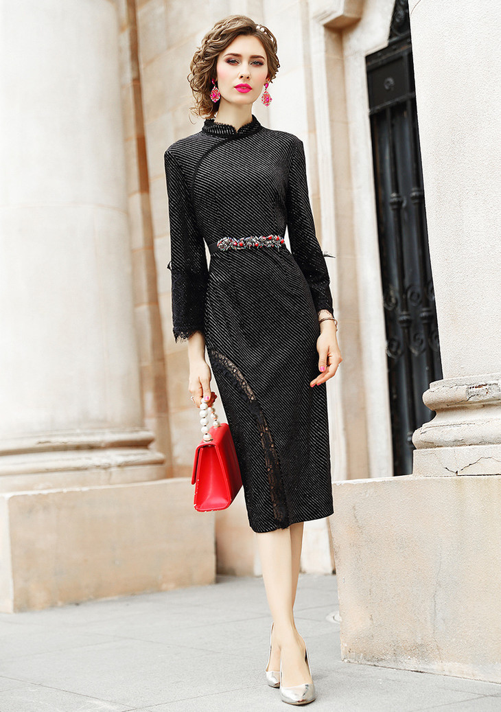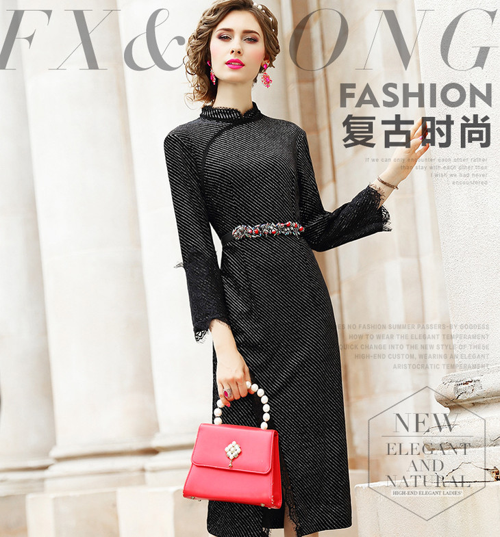 FMY-26089秋季中长款黑色蕾丝开叉丝绒裙