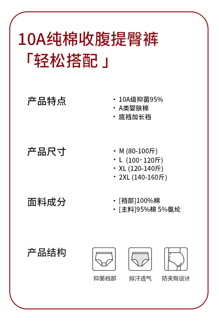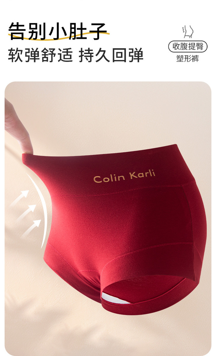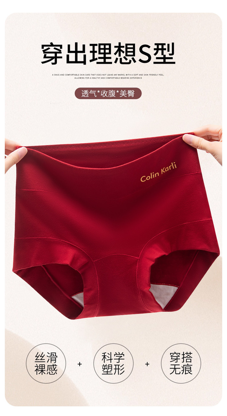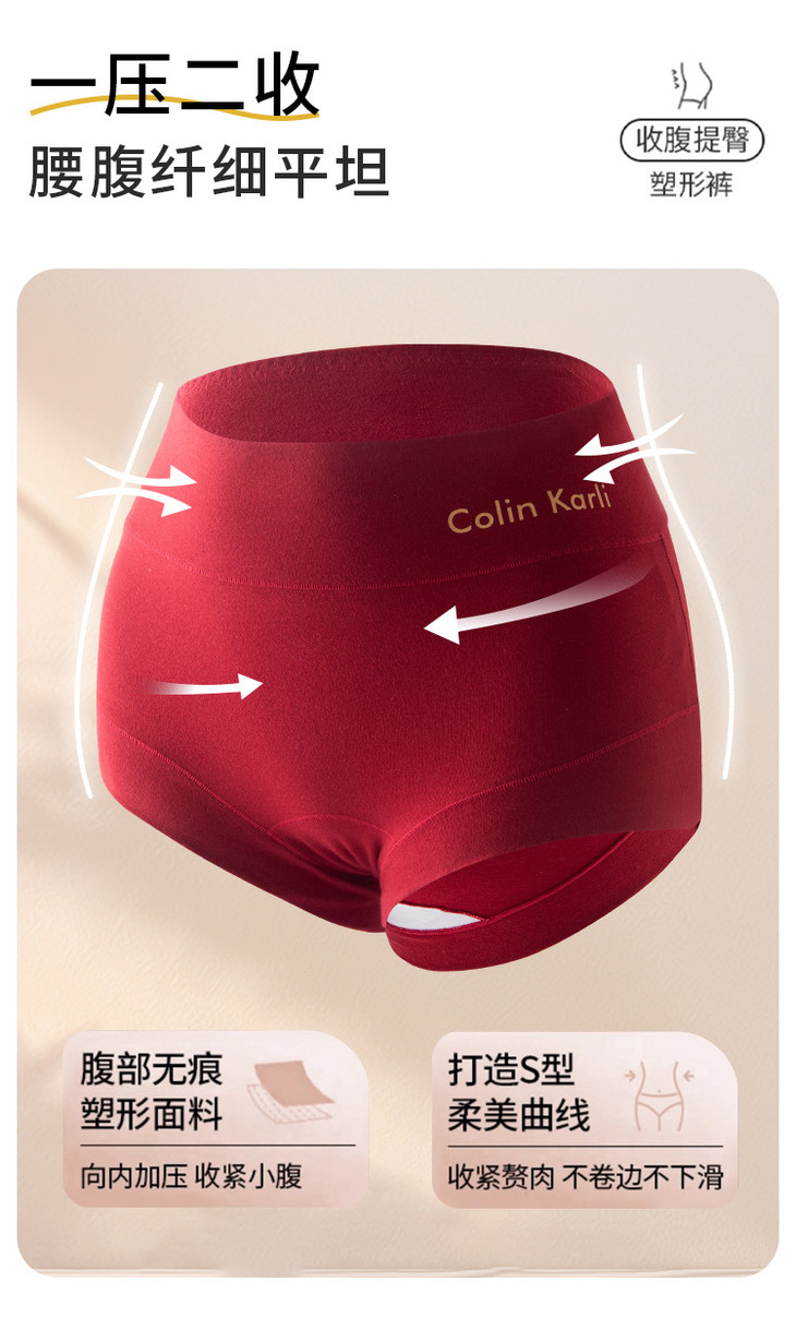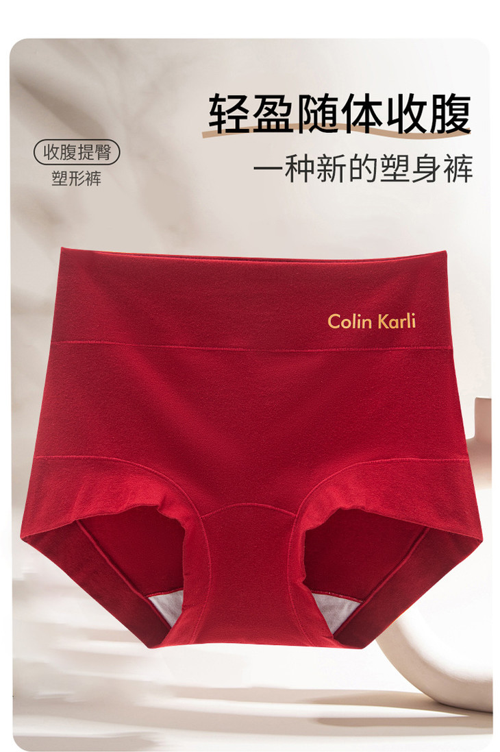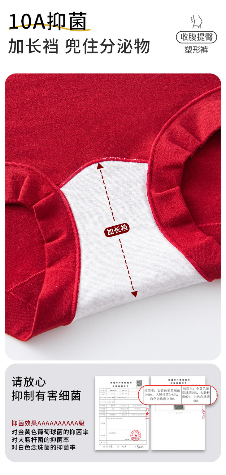 2条装棉质高腰收腹美臀本命年红内裤,10A级抑菌加长棉裆透气包臀