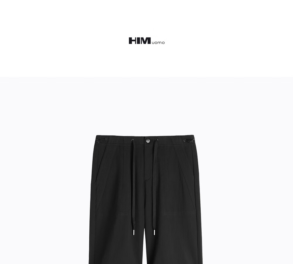 HIM漢崇【商场同款】肌理褶皱宽松直筒休闲裤男纯棉束脚工装伞兵裤