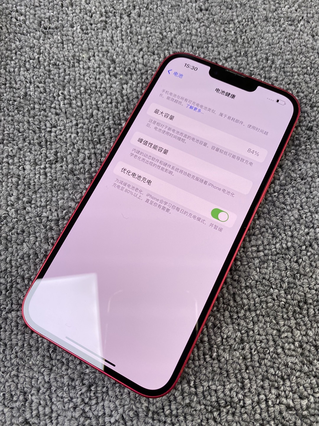 编号710257-苹果iPhone14Plus/128G/国行/红色,5G手机,9.5新,原装机器,原机电池84%,特价2999元!质检工程师已深度检测通过,店保180天,请放心购买! 🔥爽快下单送手机大礼包(快充套装+壳膜套装+100元旧机回收加价券+30元充电宝优惠券+30元耳机优惠券+30元风扇优惠券+30元剃须刀优惠券)