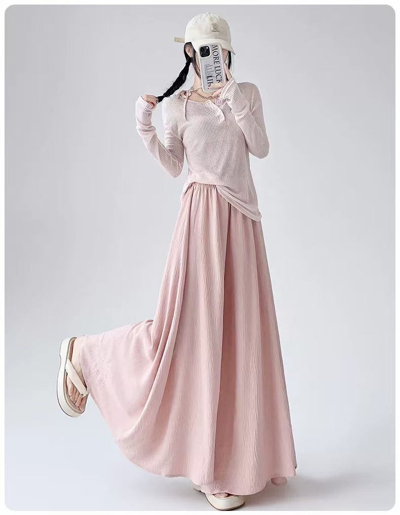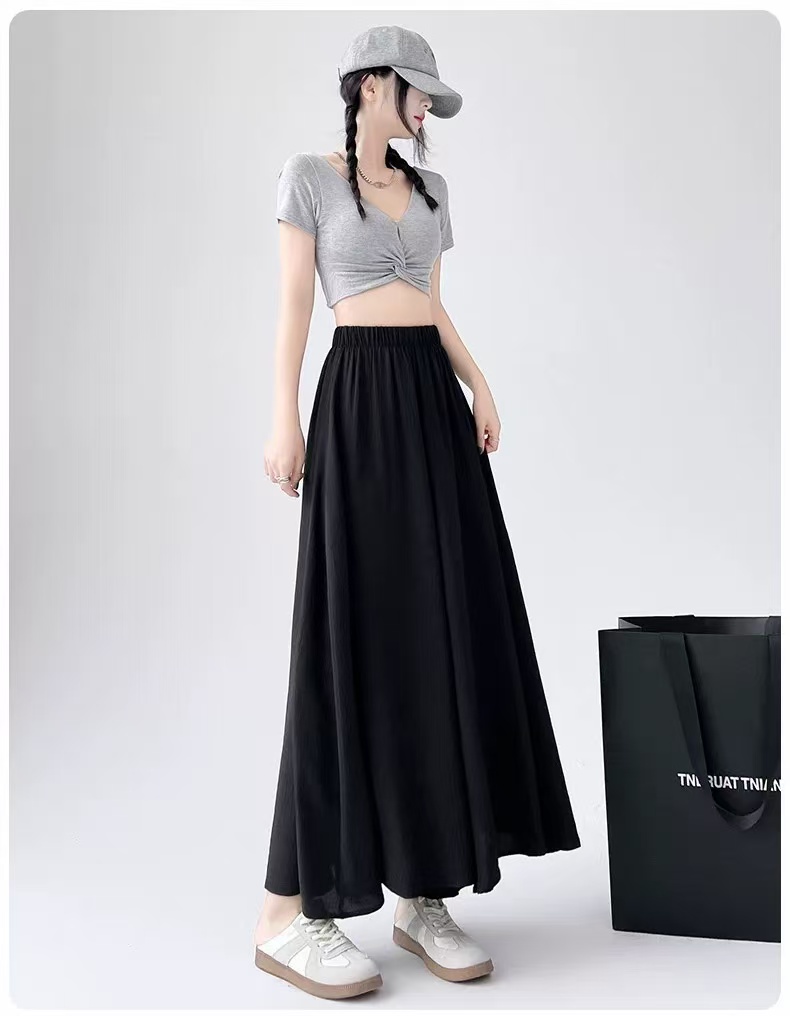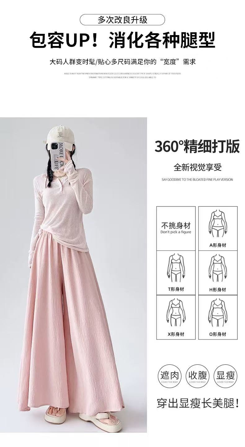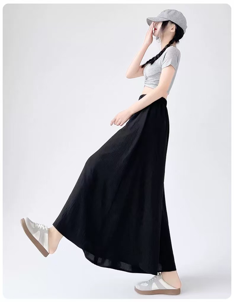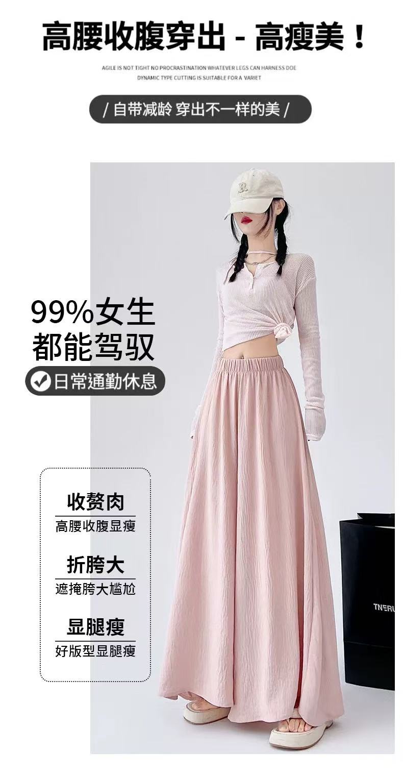 {休闲裤2025}6515棉麻风宽松显瘦半身裙裤大宽腿阔腿裤-喜出