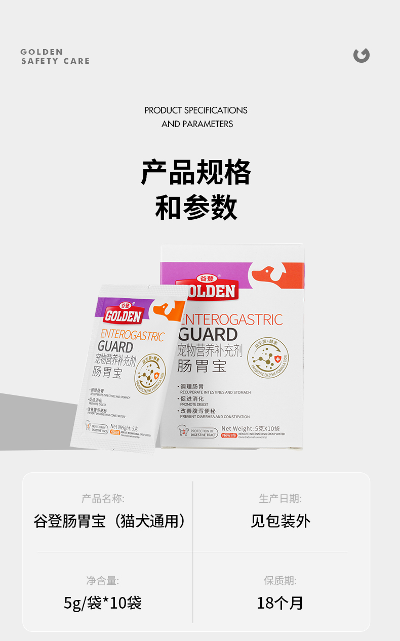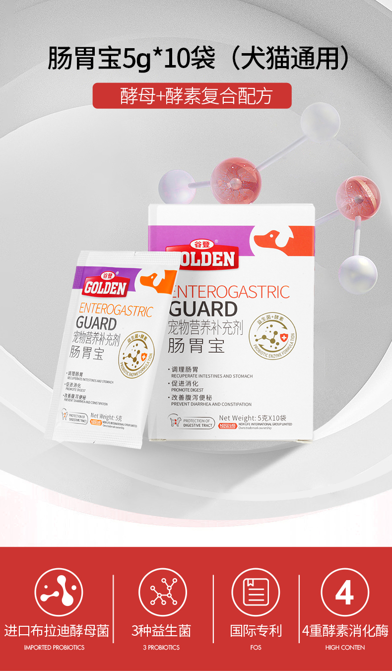 【双12专属秒杀】谷登肠胃宝益生菌酵素配方5g*10袋 (犬猫通用)