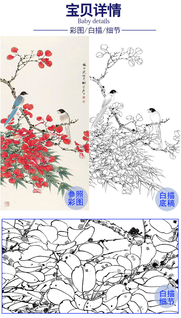 田世光工笔竖幅花鸟白描底稿-SG56