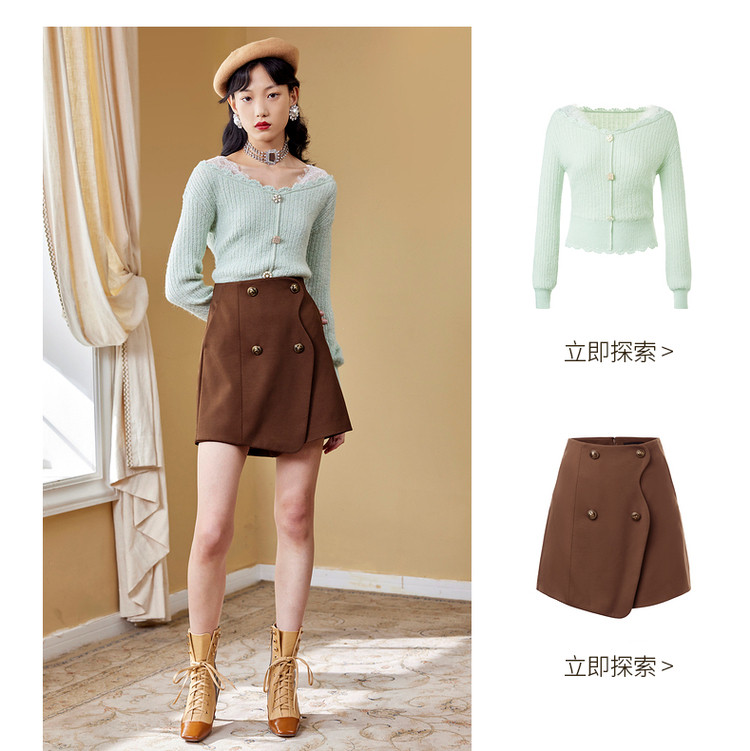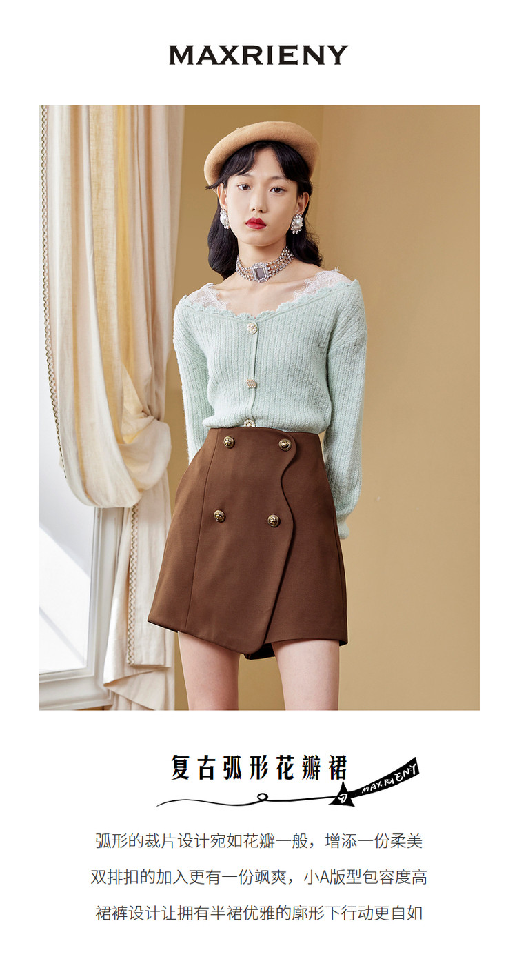MAXRIENY复古弧形花瓣高腰A字裙秋季半身裙MC87PA536H90