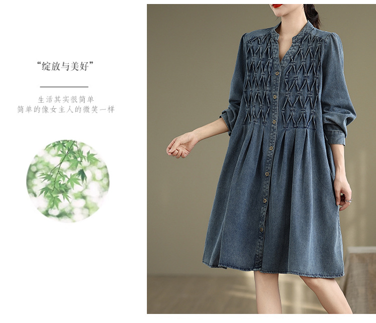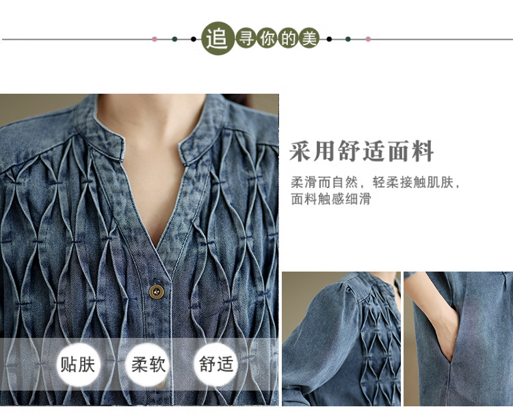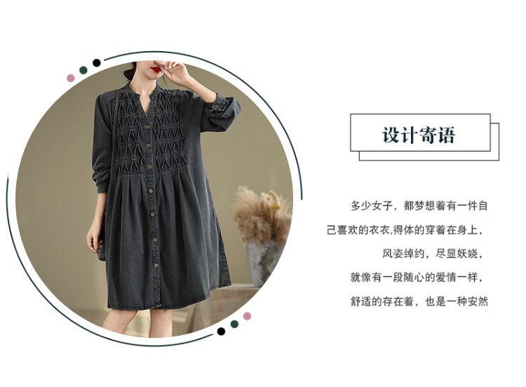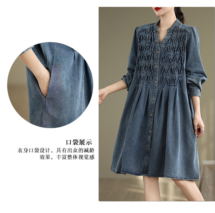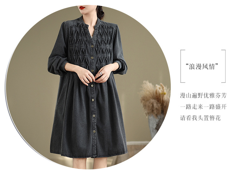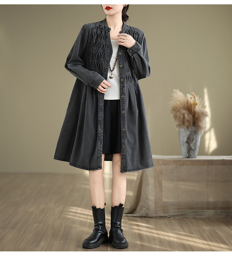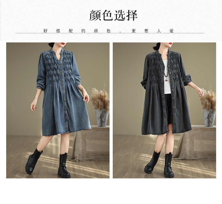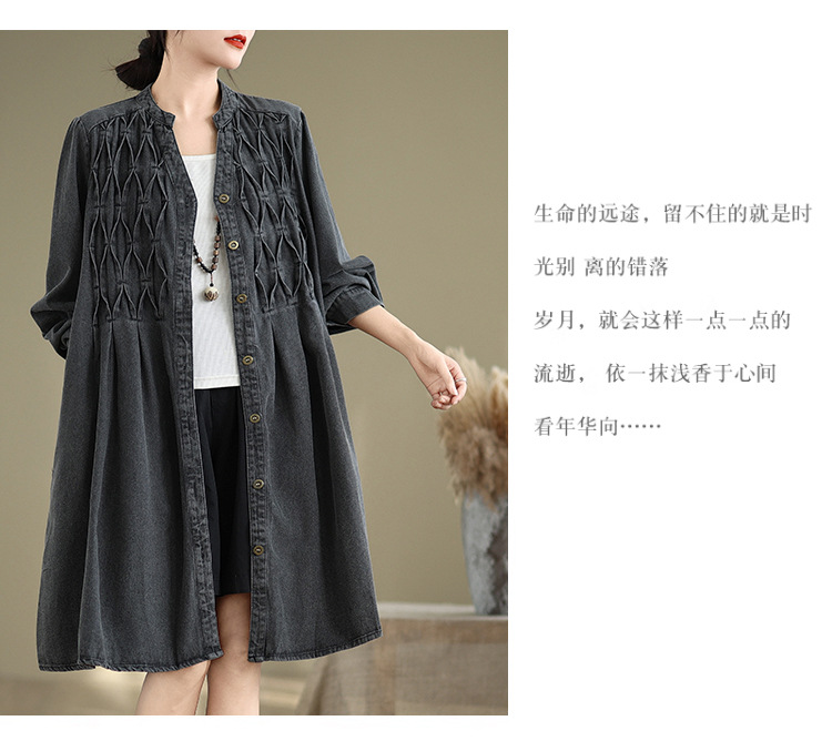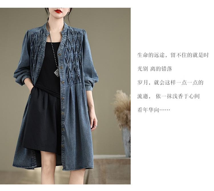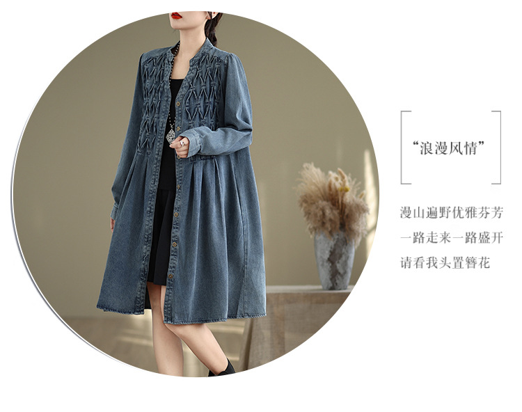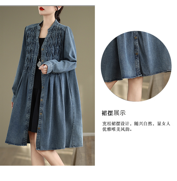 A9755#秋款宽松显瘦重工艺V领单排扣中长款牛仔风衣外套