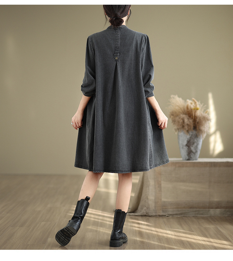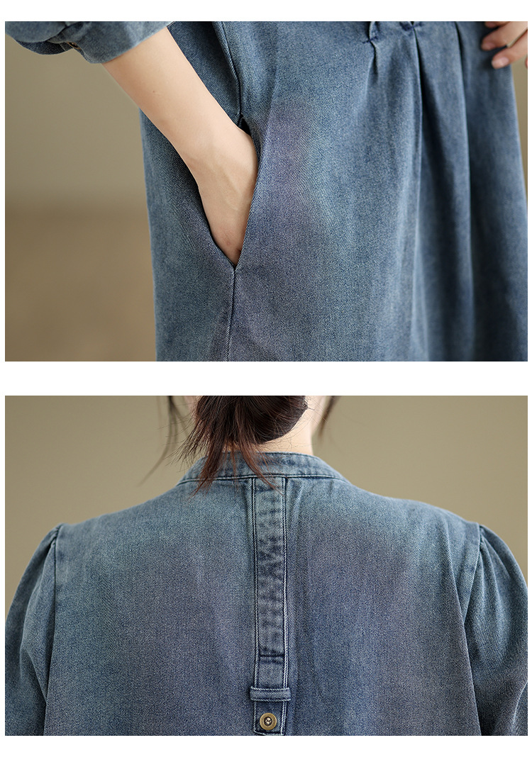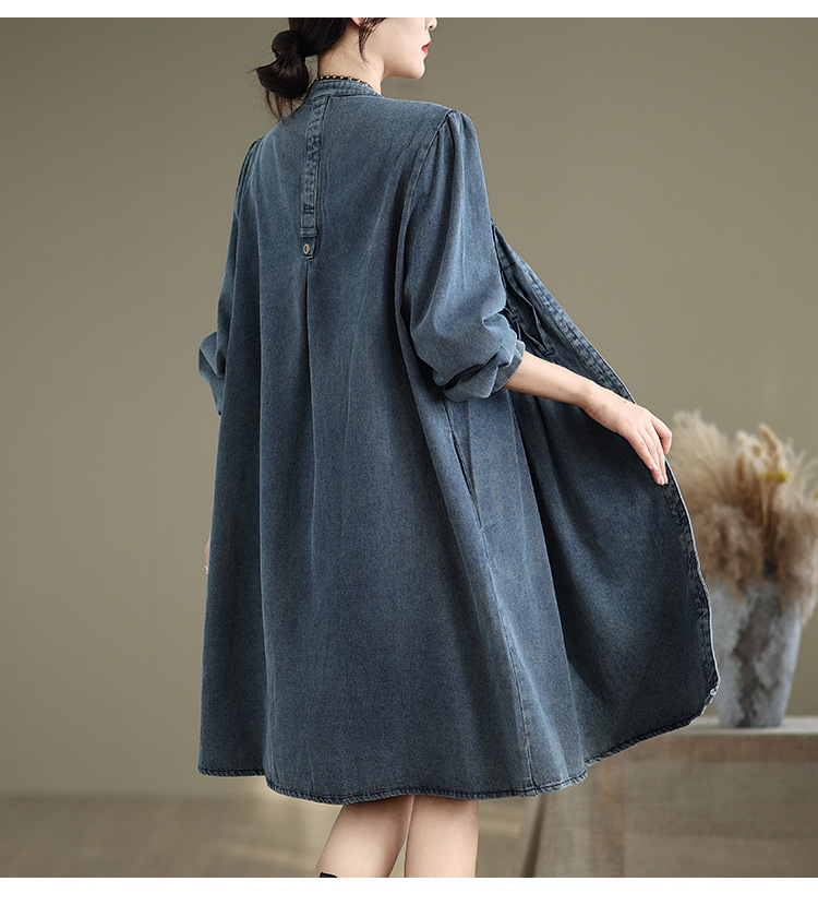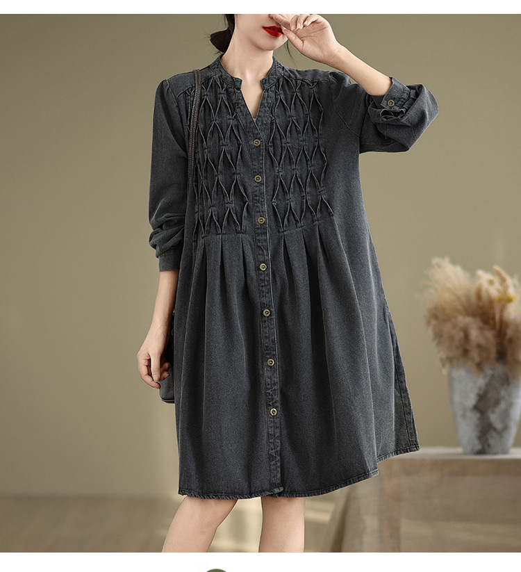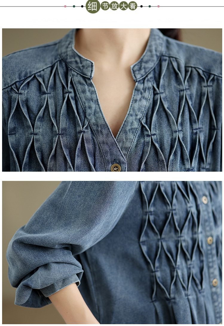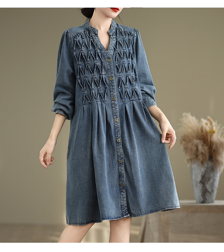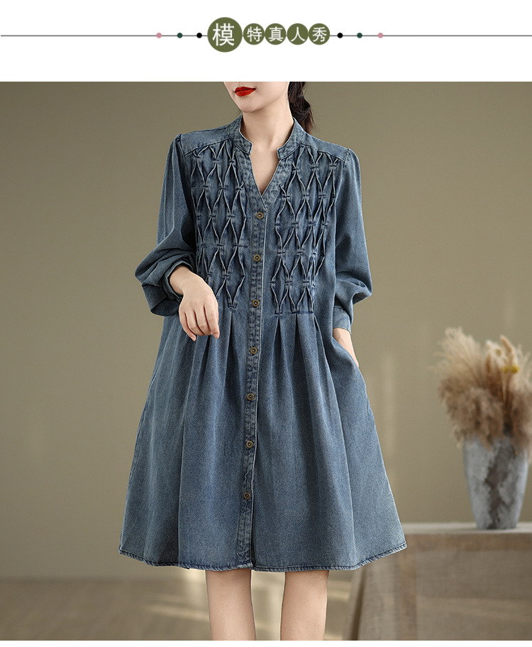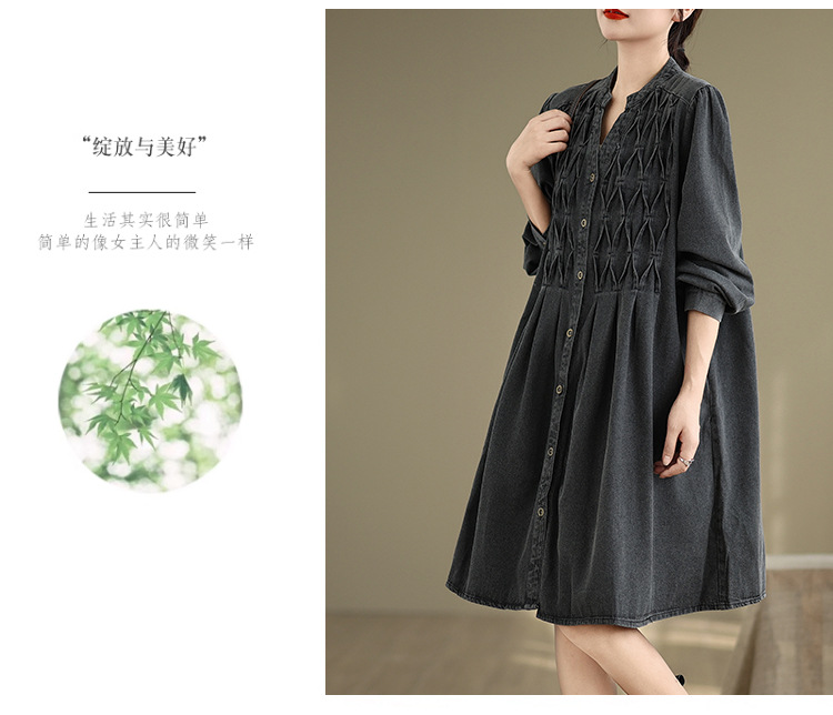 A9755#秋款宽松显瘦重工艺V领单排扣中长款牛仔风衣外套