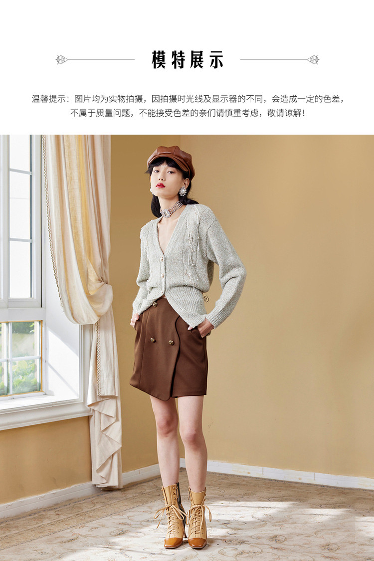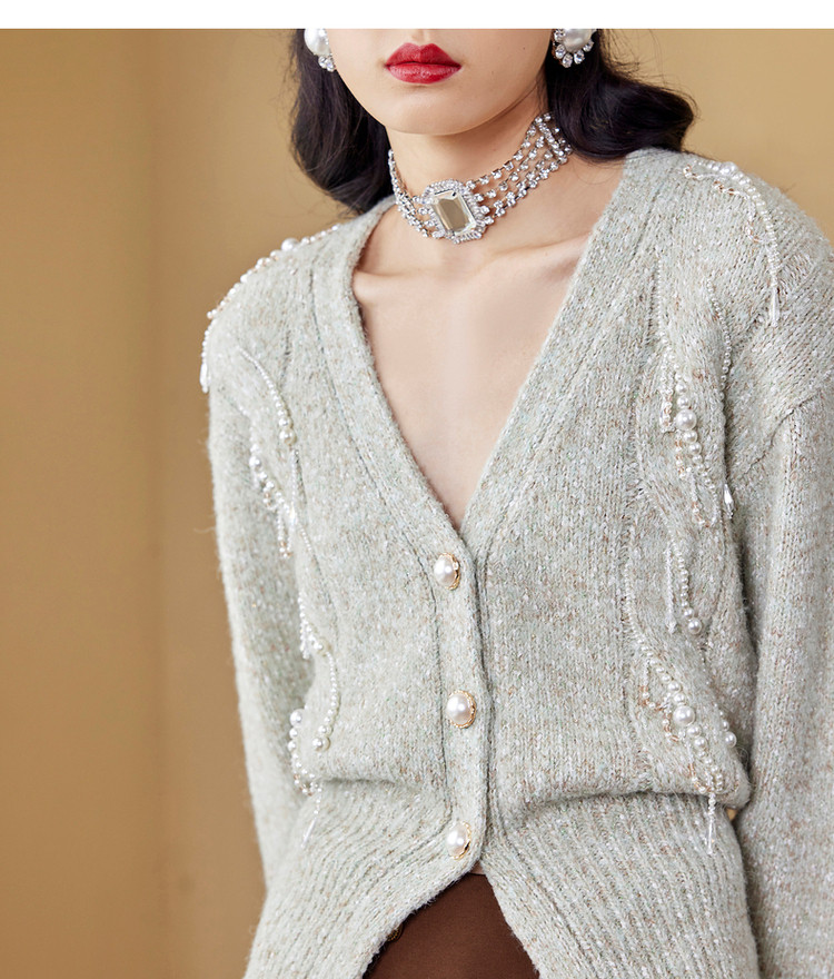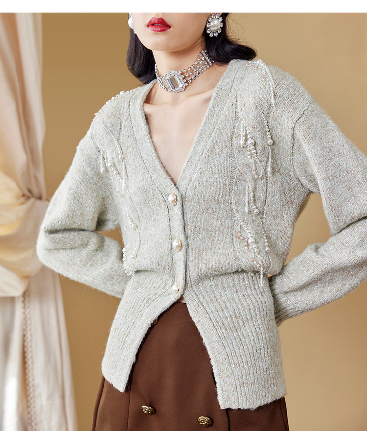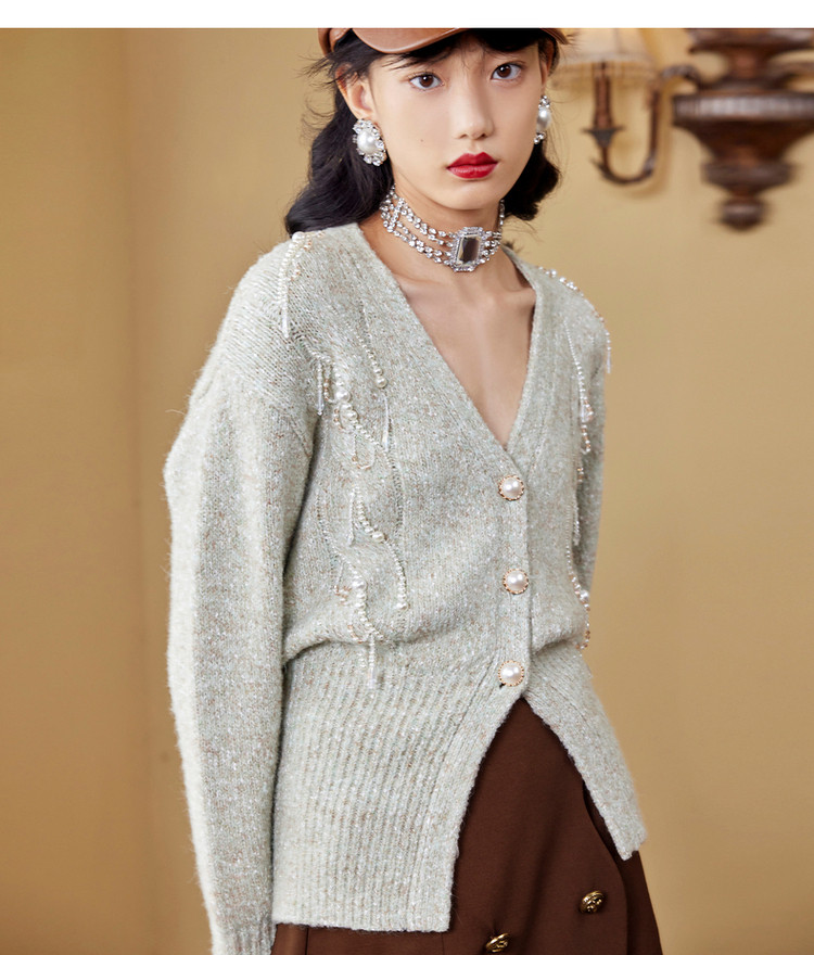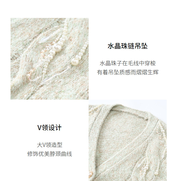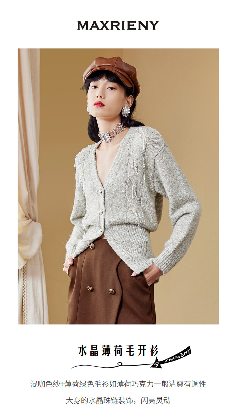 MAXRIENY水晶薄荷毛开衫秋季针织毛衫V领MC87JA534G00