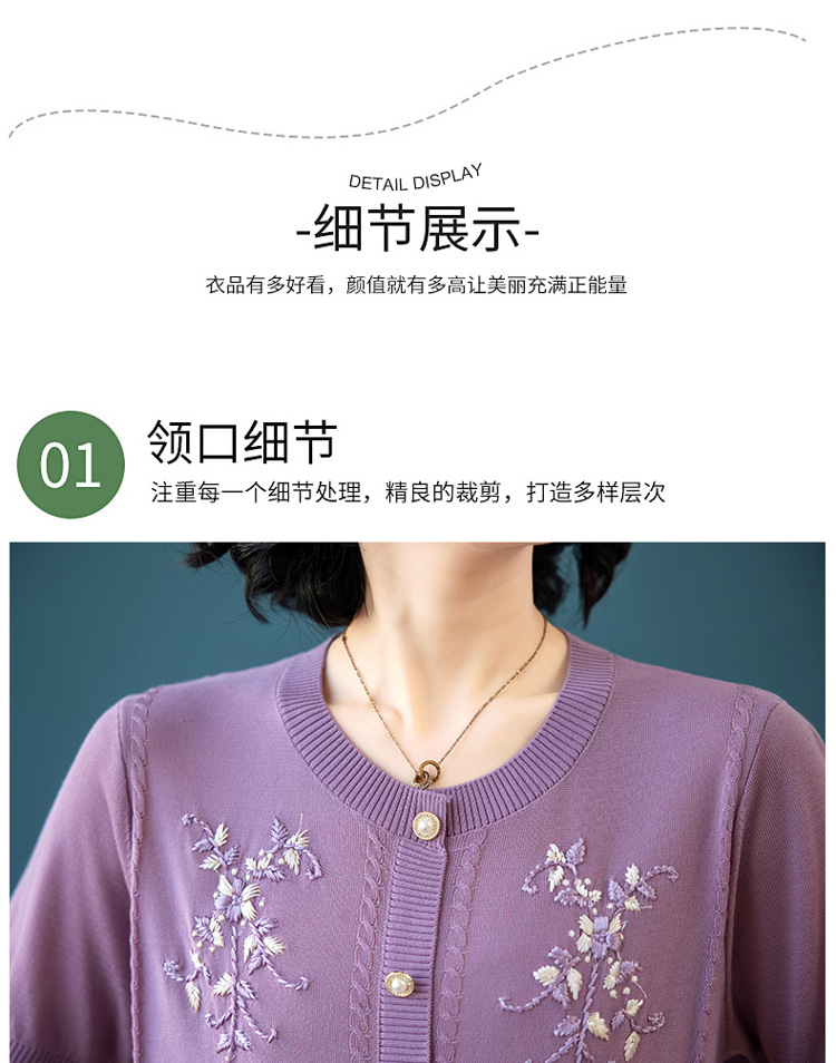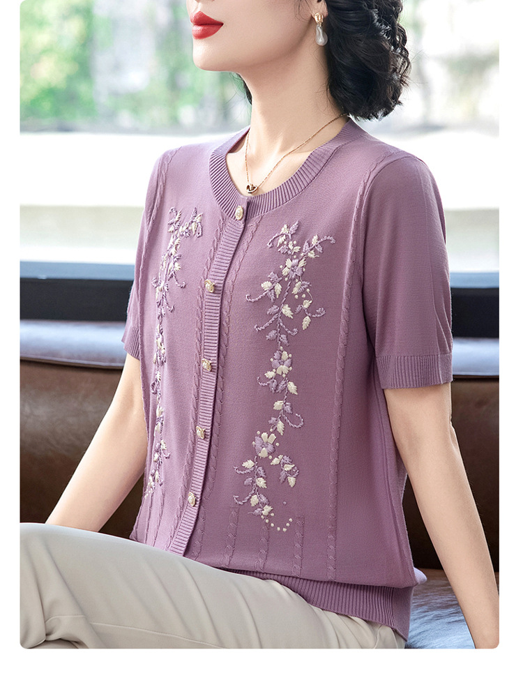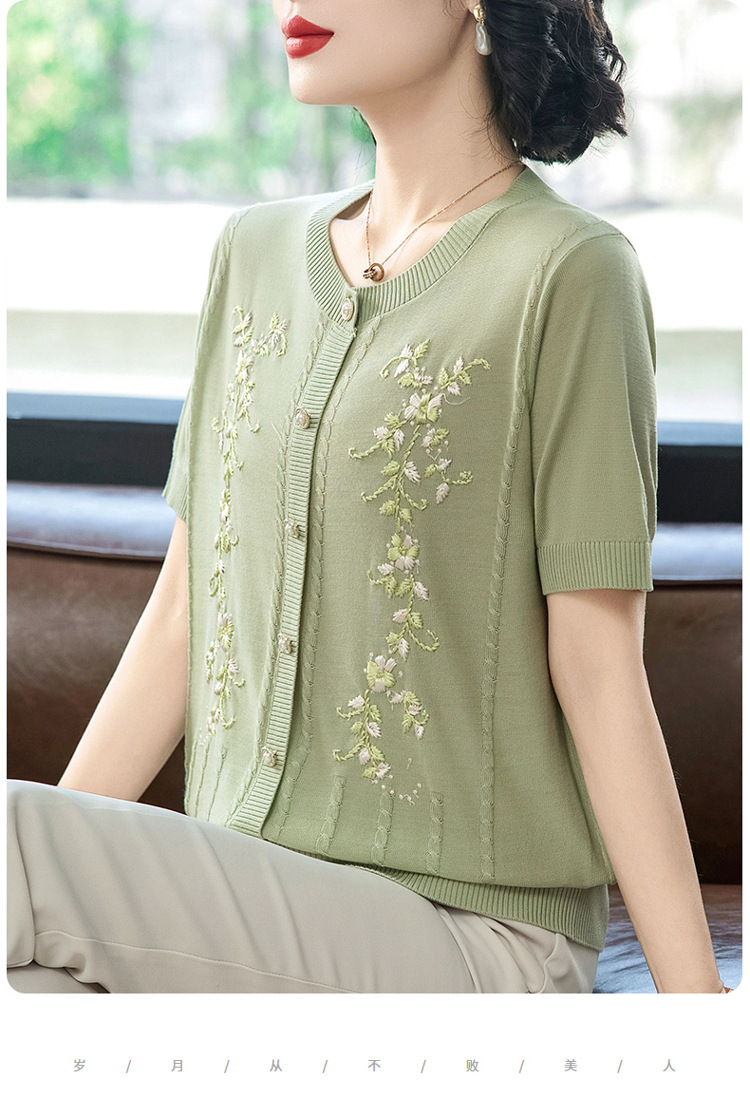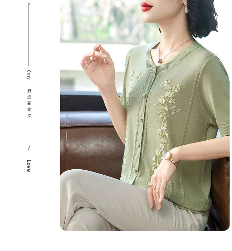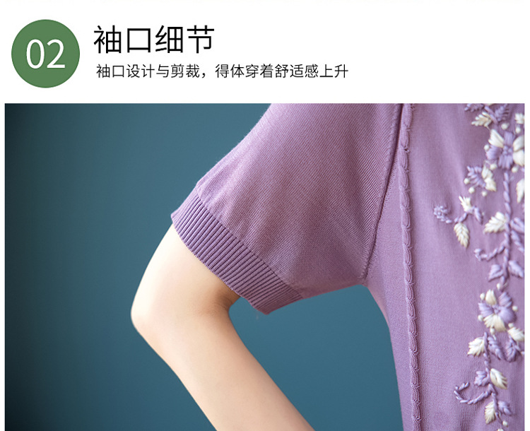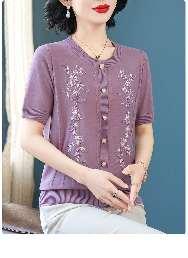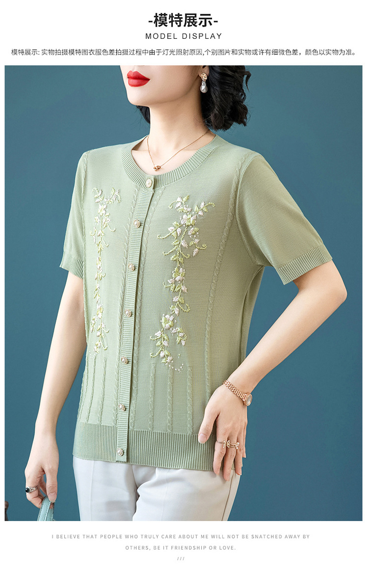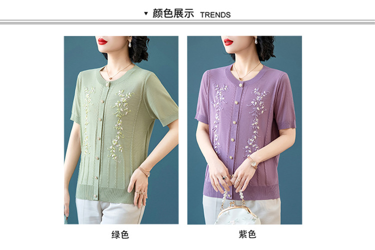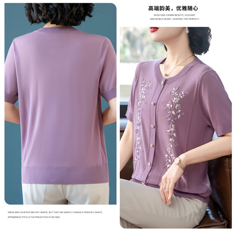 W007-2520-88-138新款2025妈妈夏装针织小衫中老年女装母亲节短袖上衣冰丝洋气t恤