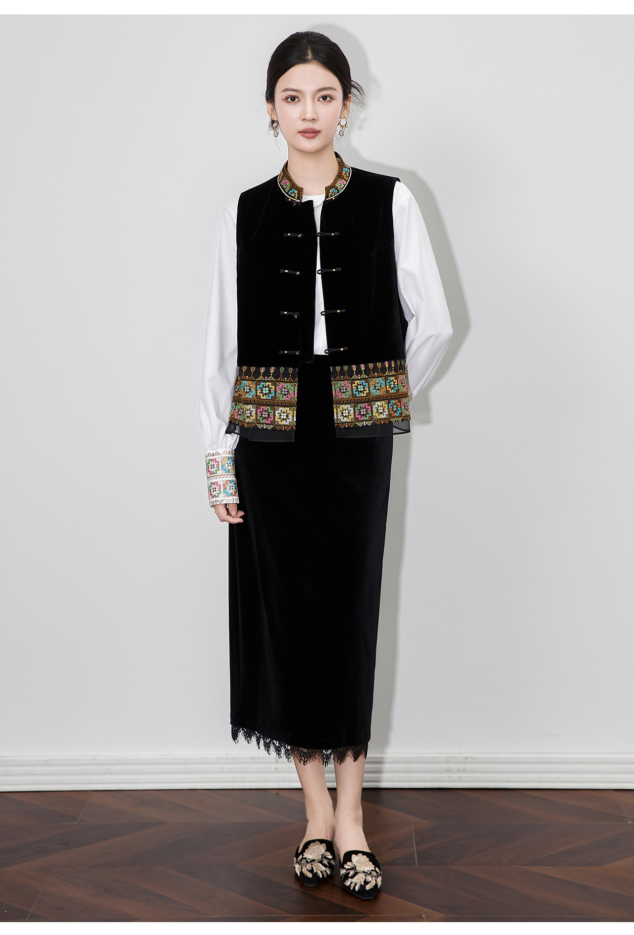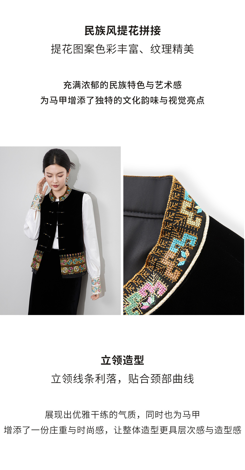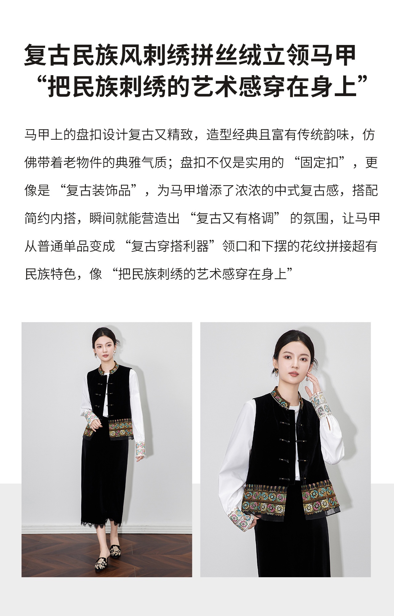 「高货wl」全新升级【铂金会员477/天猫639/差价162】(94027)洛诗琳新中式真丝丝绒马甲2025秋季重工刺绣国风立领外套