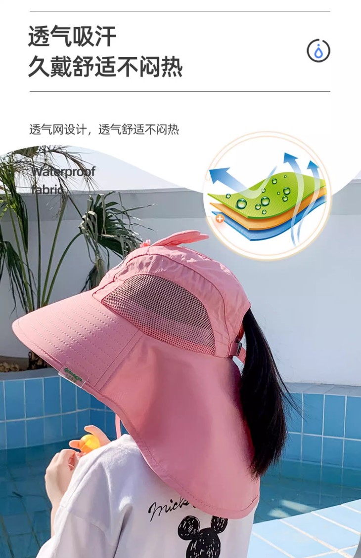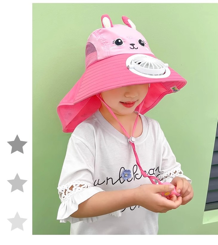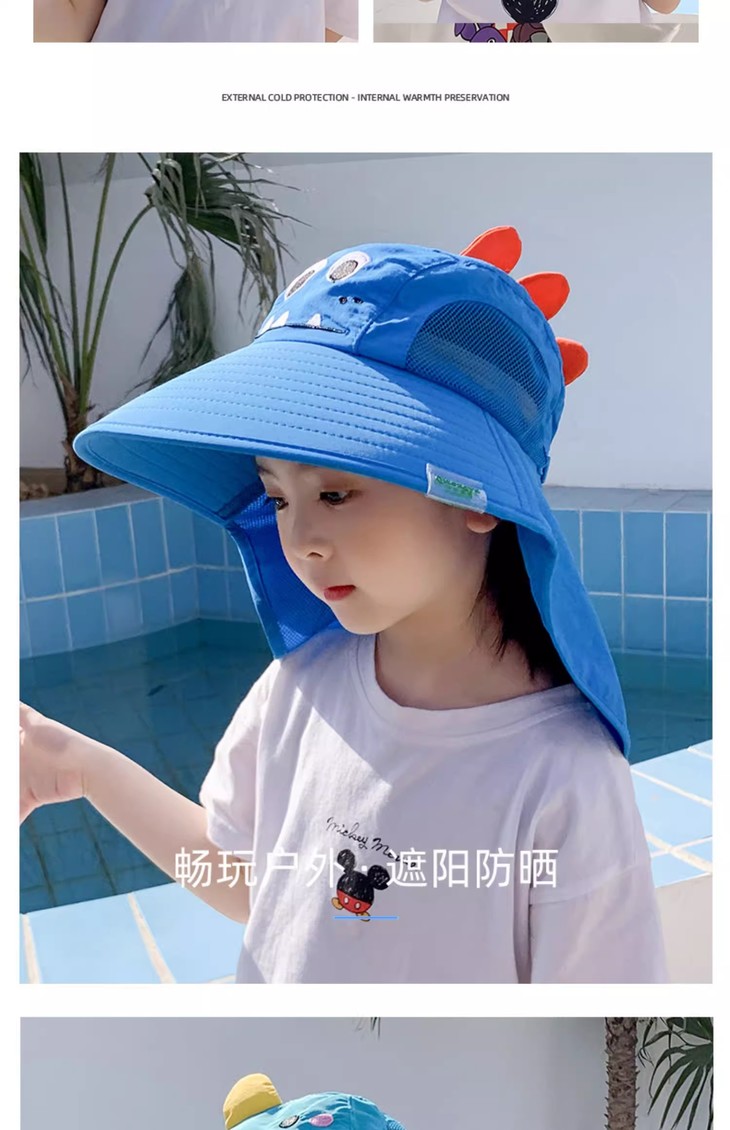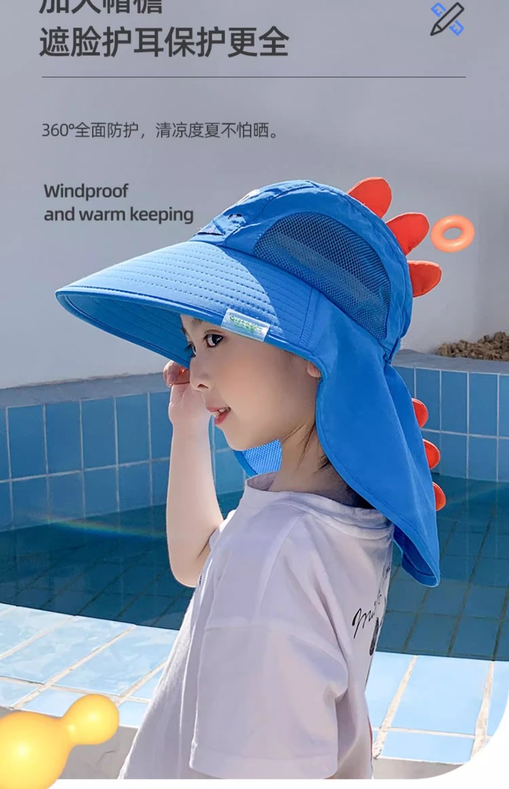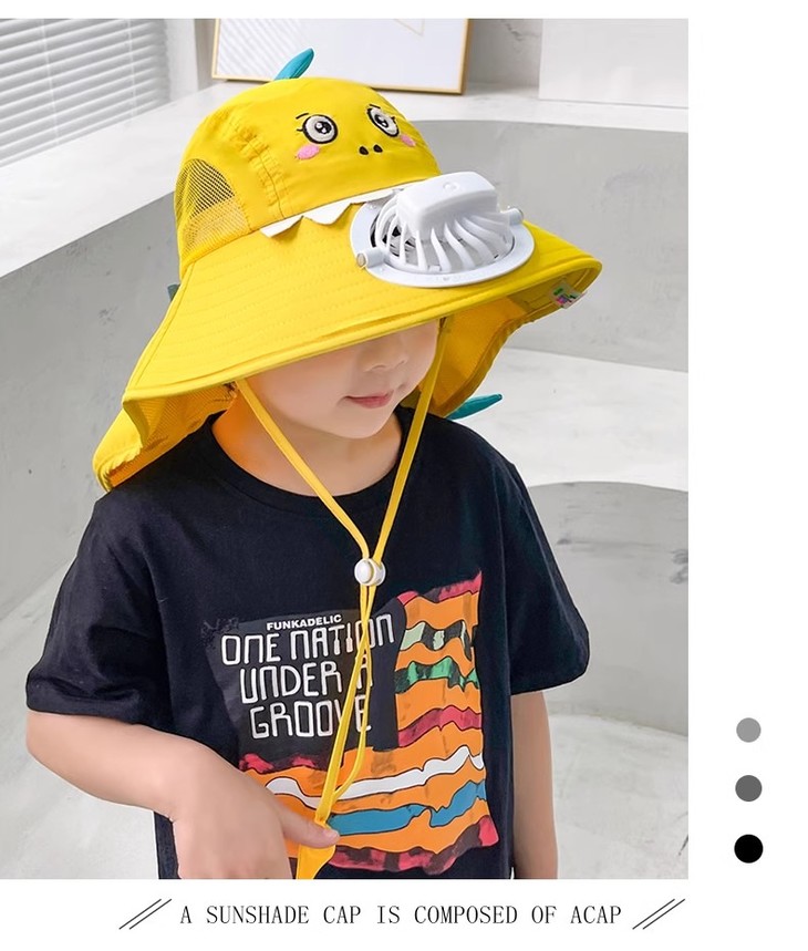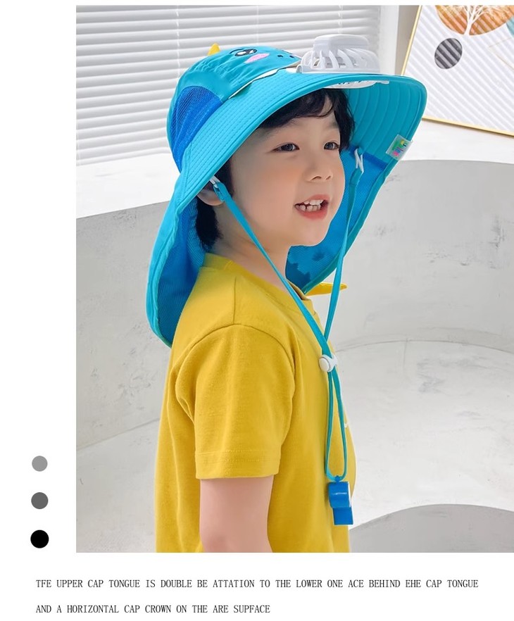 【360°全面防护帽,送小口哨!】宝宝防晒遮阳帽带风扇,夏防紫外线男女儿童渔夫帽,防风外出大帽檐-lm!