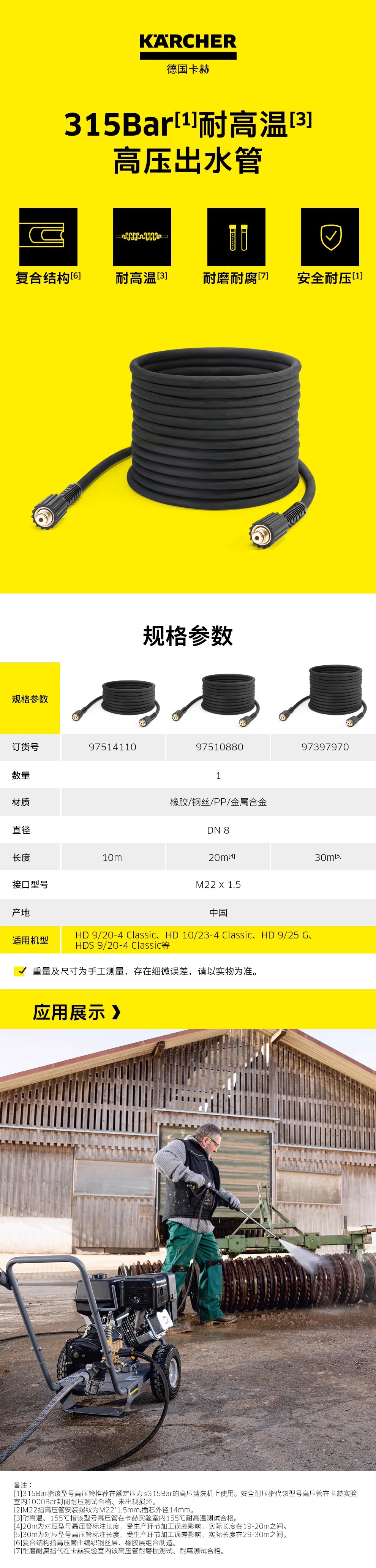卡赫原装配件 高压清洗机配件耗材高压管 适用HD9/20 HD10/23 97510880