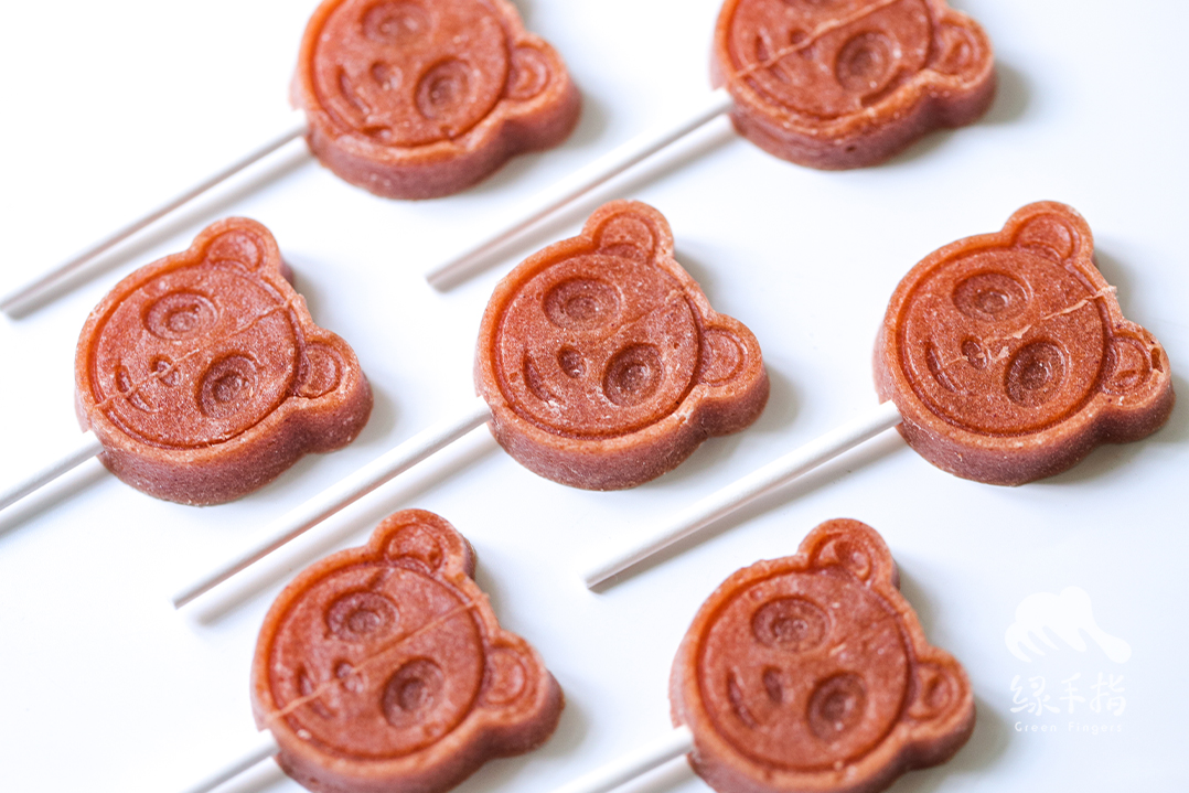 有机山楂棒和有机山楂条的原料一样,只含有有机山楂、有机砂糖和饮用水,加工环节也一致,在定型阶段采用了磨具压制,于是就有了可可爱爱的山楂棒棒糖。