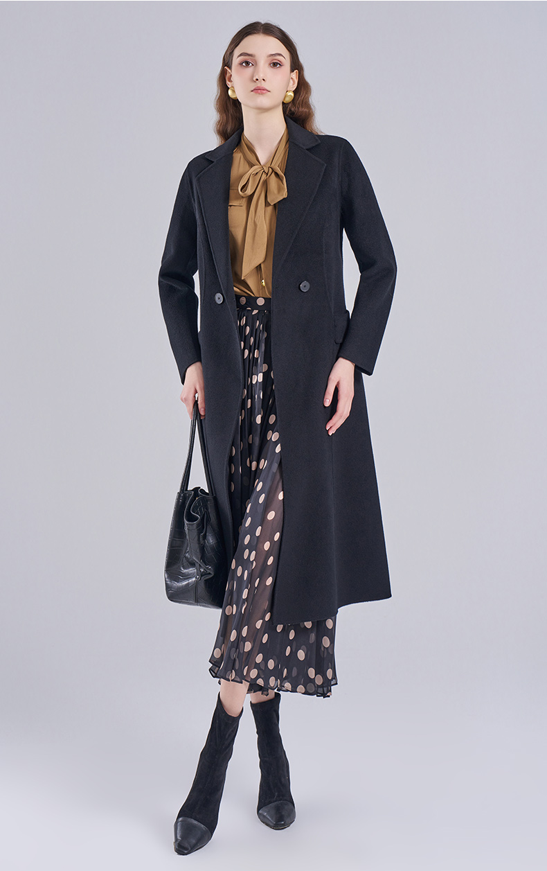 【羊绒】乔万尼精致职场简约收腰飒爽高级感保暖中长款羊毛呢大衣ES4A472