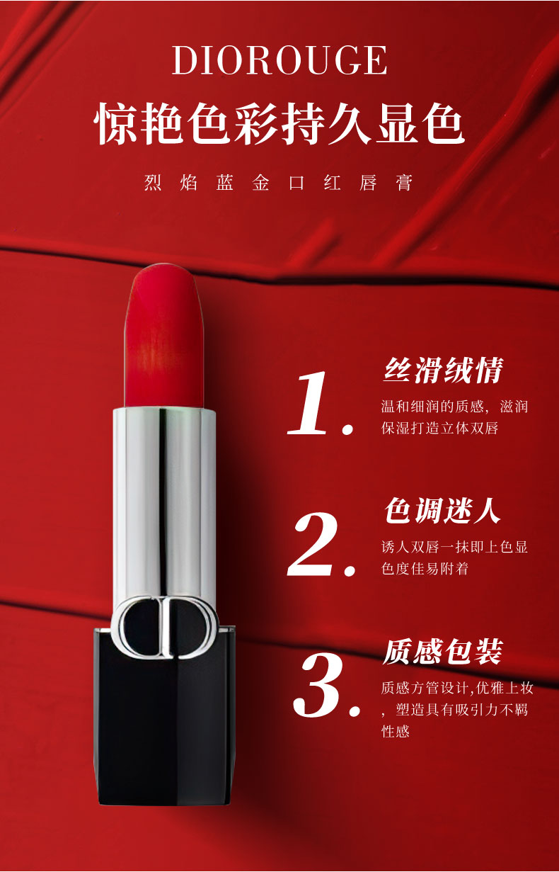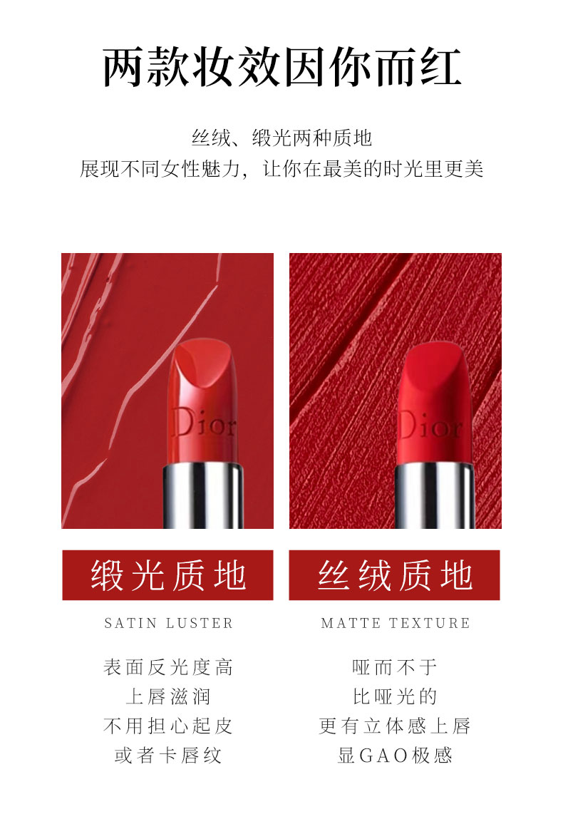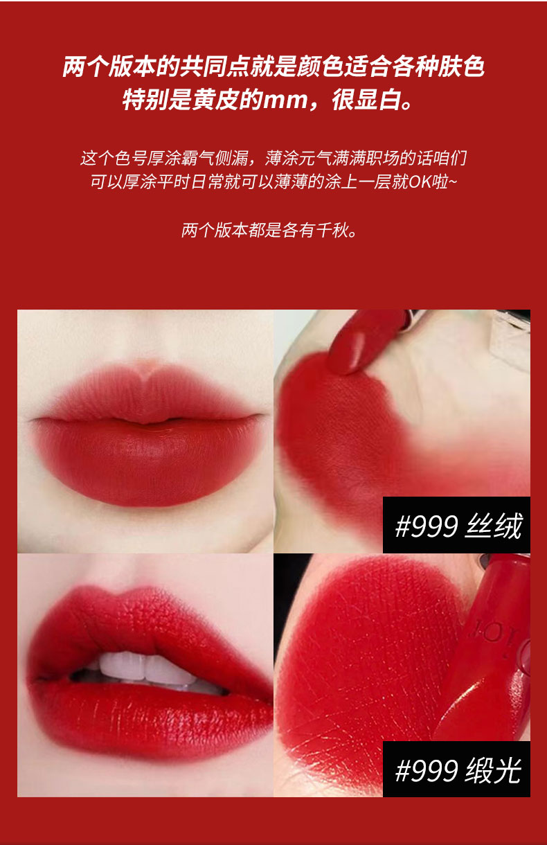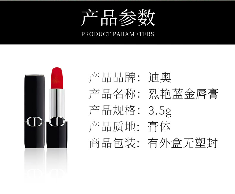 Dior迪奥999口红 滋润丝绒 经典正红色 显白提气质 3.5g/支