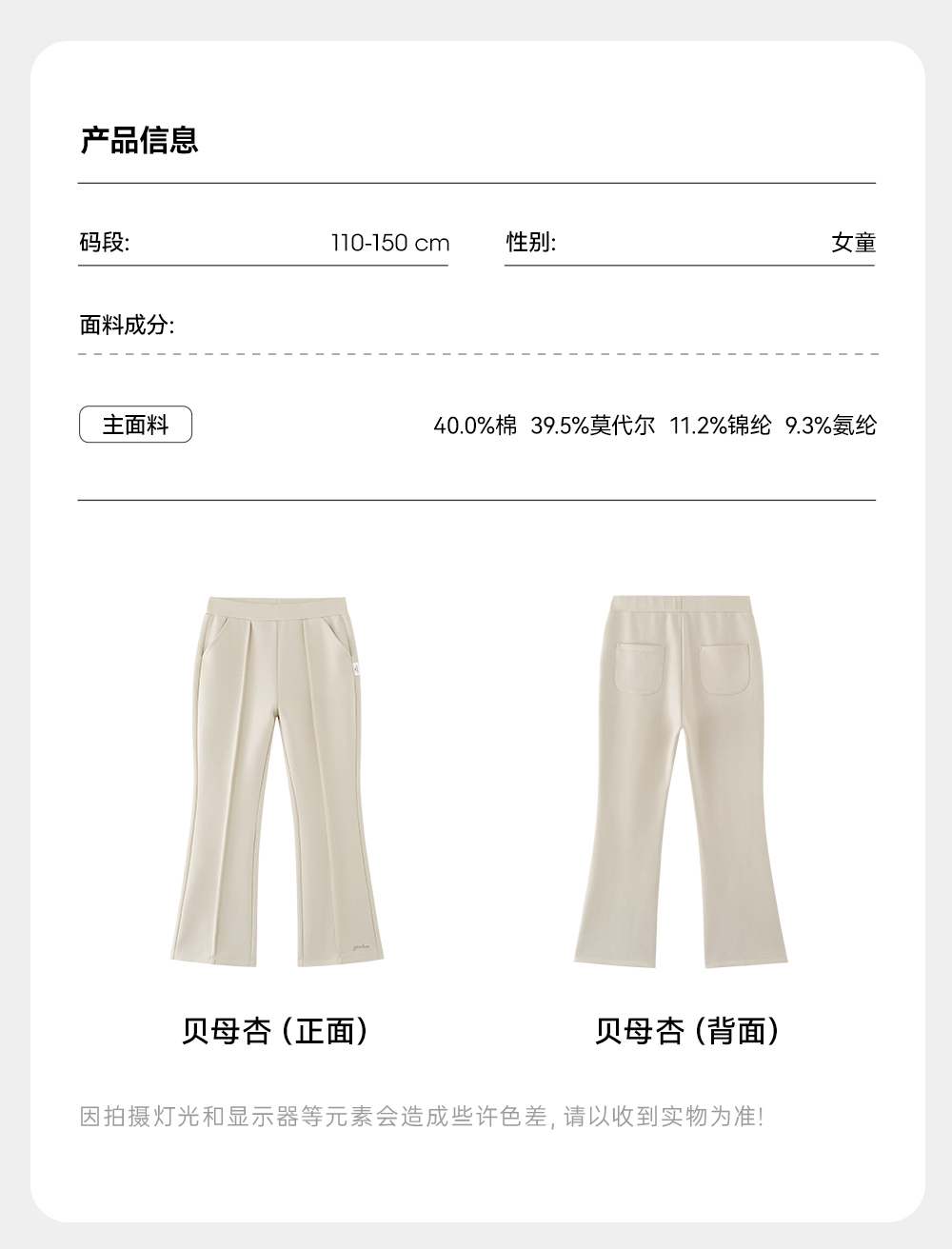 【商场同款】英氏女童裤子春夏百搭休闲长裤2025新款微喇叭长裤