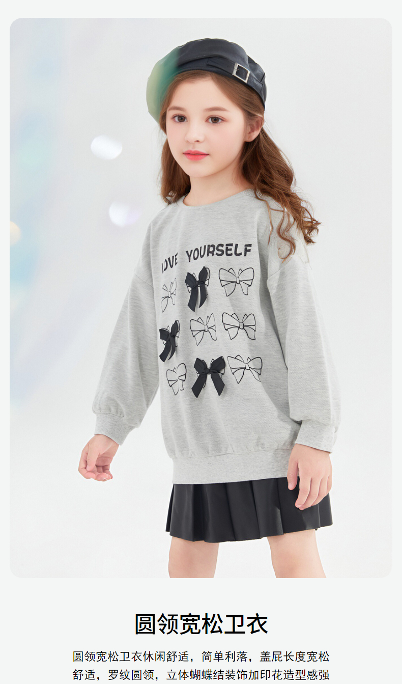 笛莎Deesha 女童卫衣2024秋季新款圆领宽松卫衣