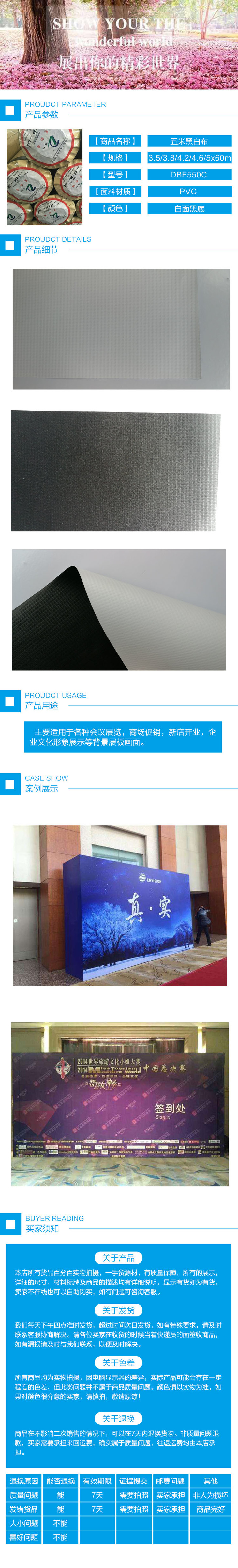 5米宽幅550黑白布