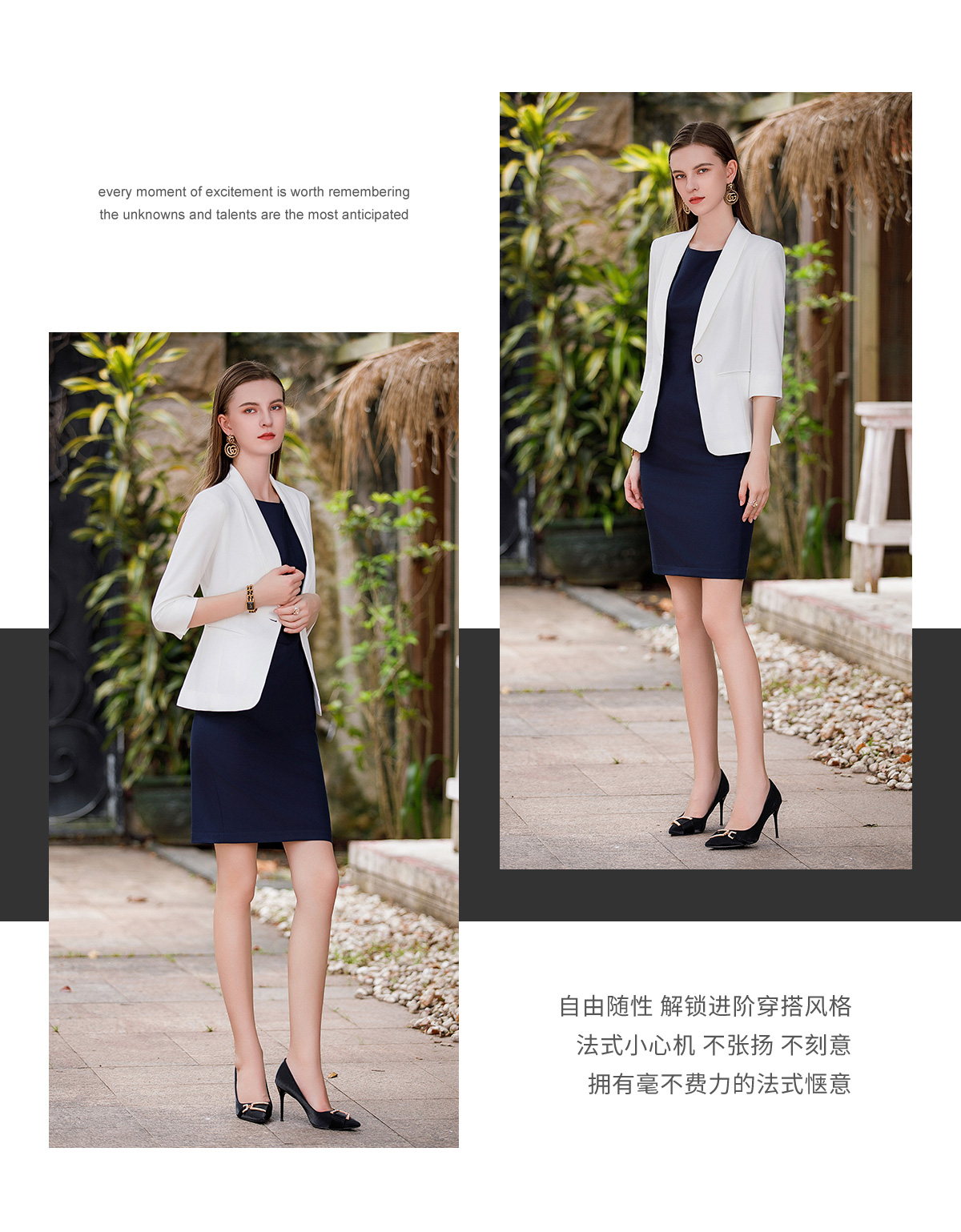 IWY/秋款正式场合接待工作服通勤干练七分袖西装女士连衣裙职业装C1837+Q736