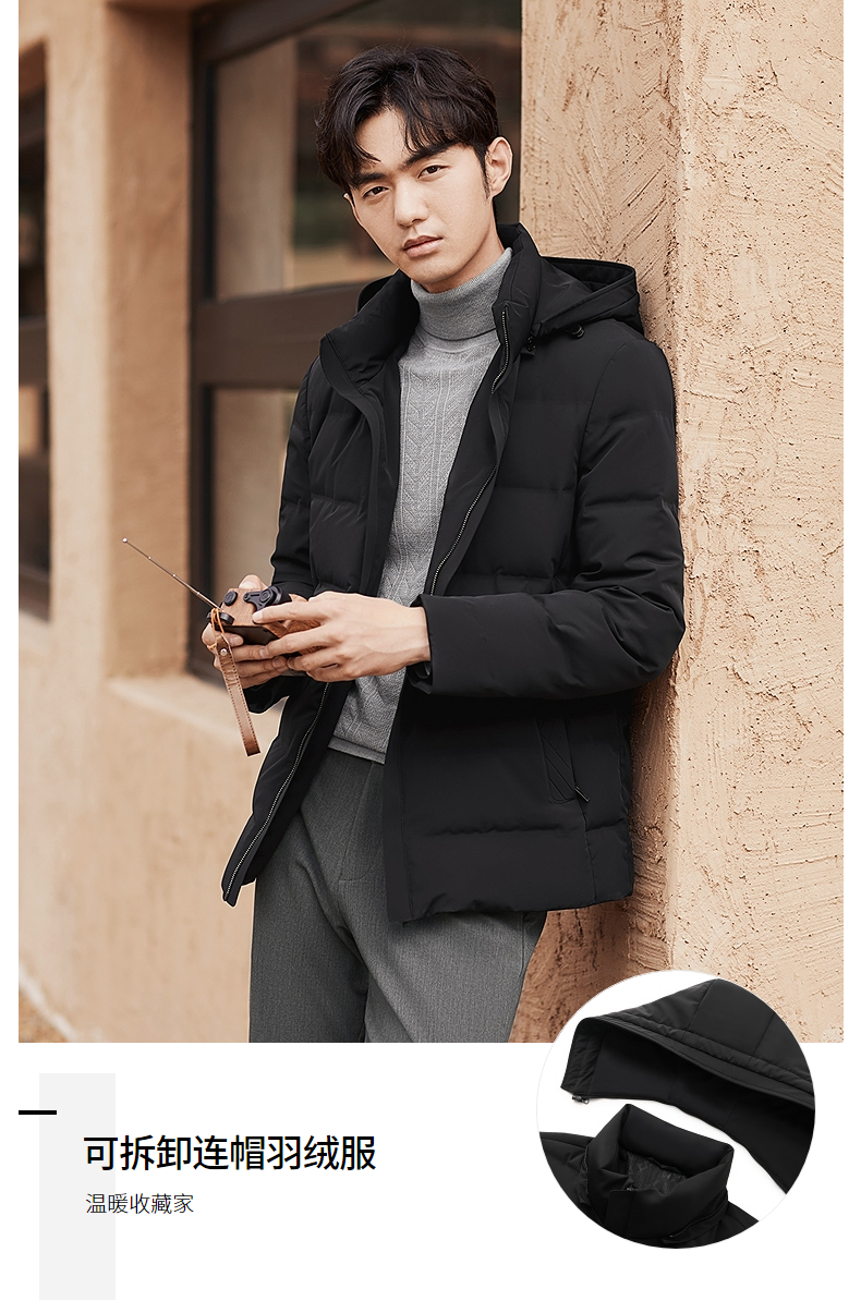 【白鸭绒】柒牌可卸连帽羽绒服男冬季新款休闲百搭保暖防寒厚外套 127E70620